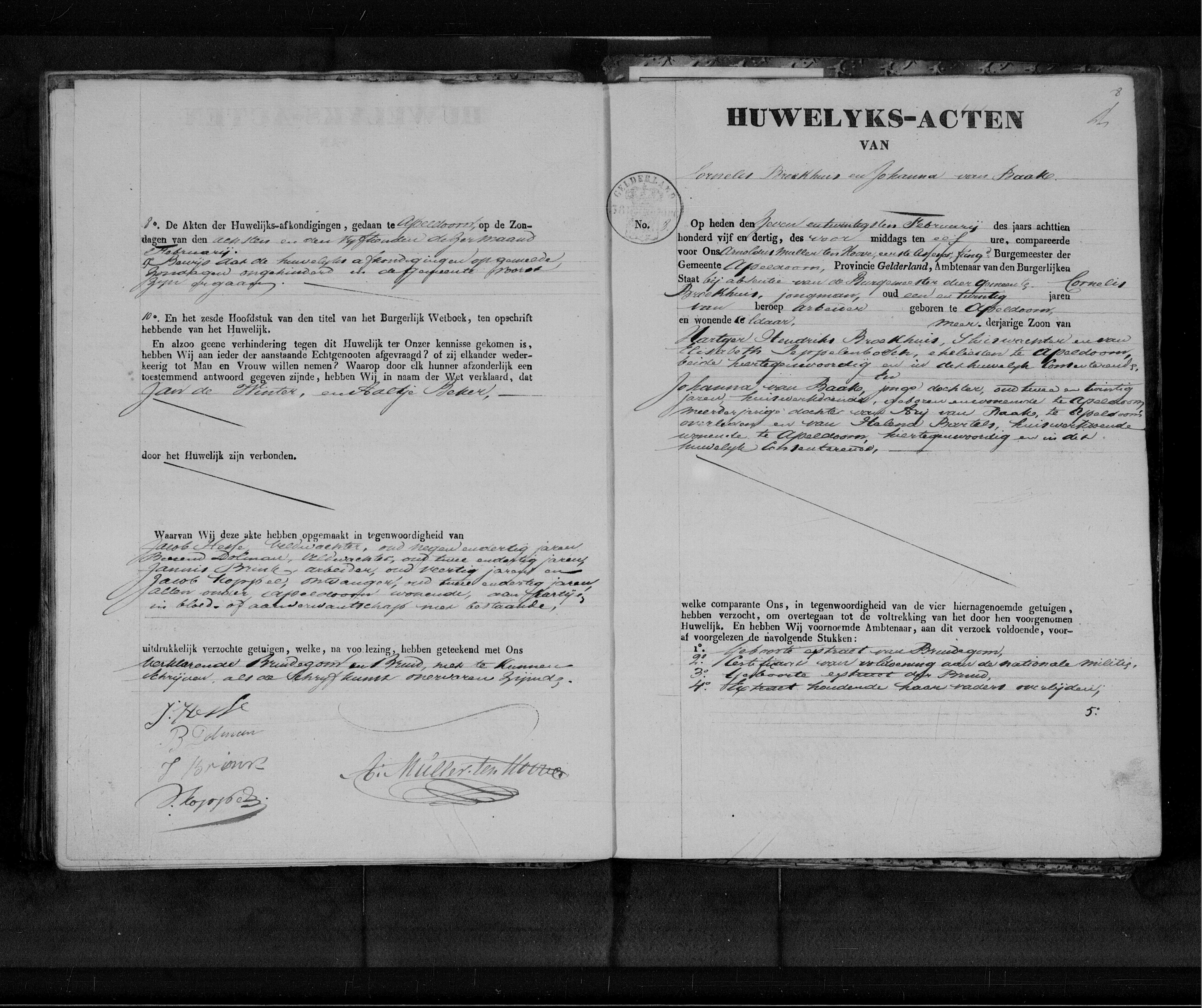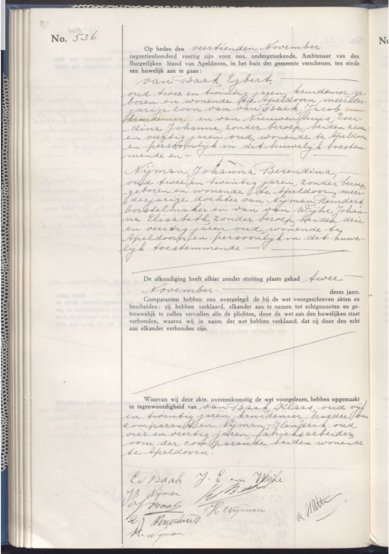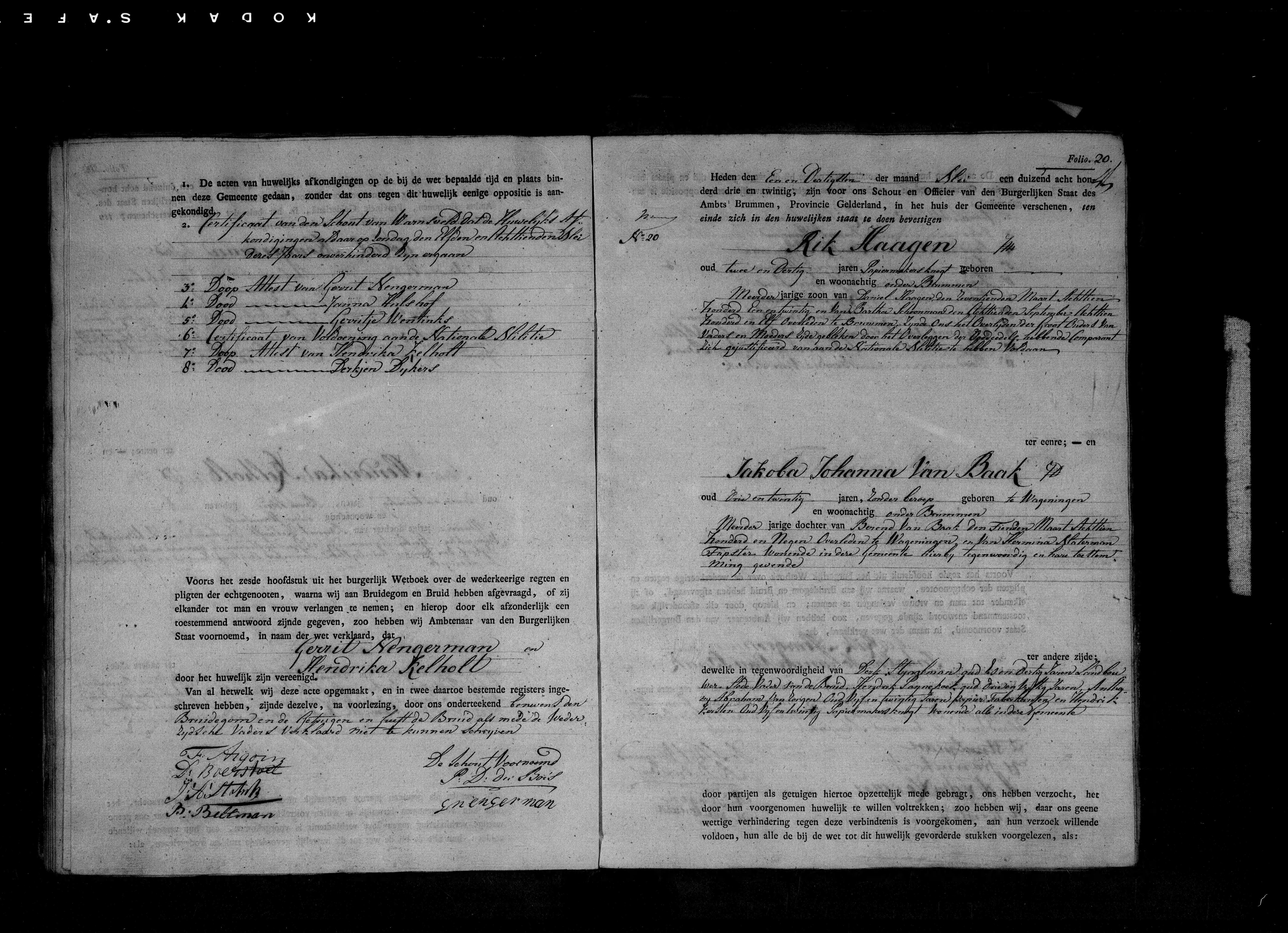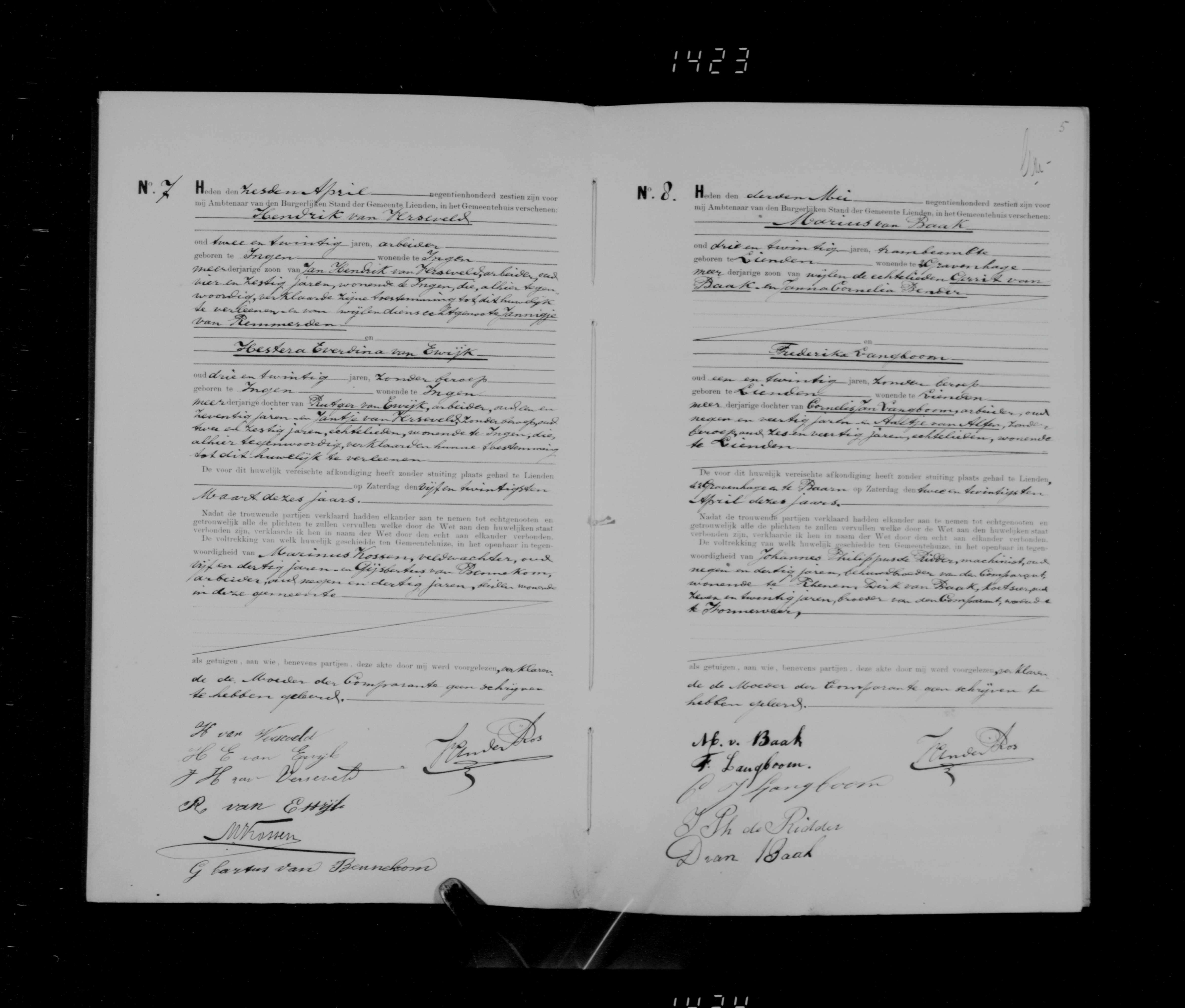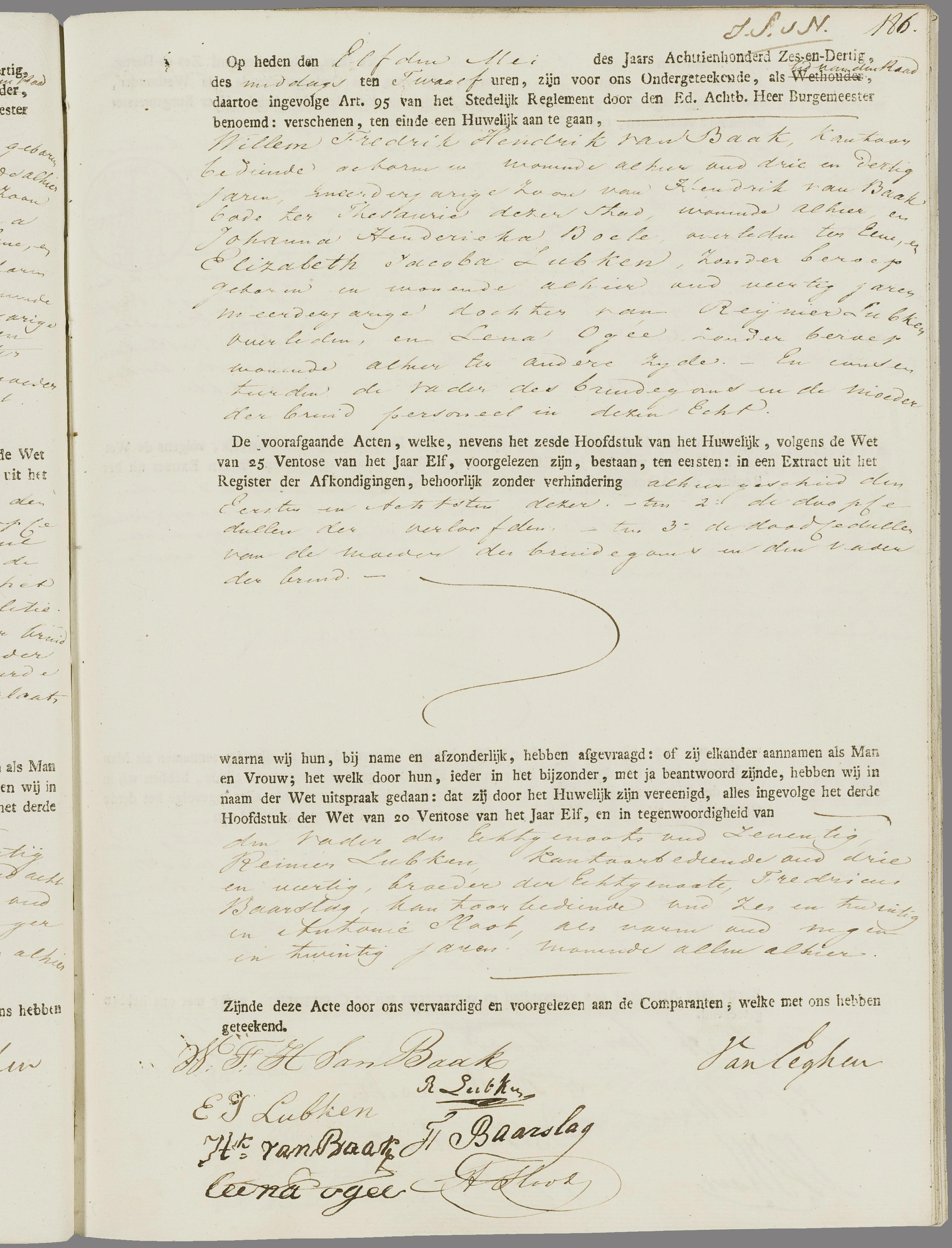 20. “uittreksel BS huwelijk van Baak-Langboom,” 3-5-1916, Lienden, 9096, 8, scan, Gelders Archief Arnhem.