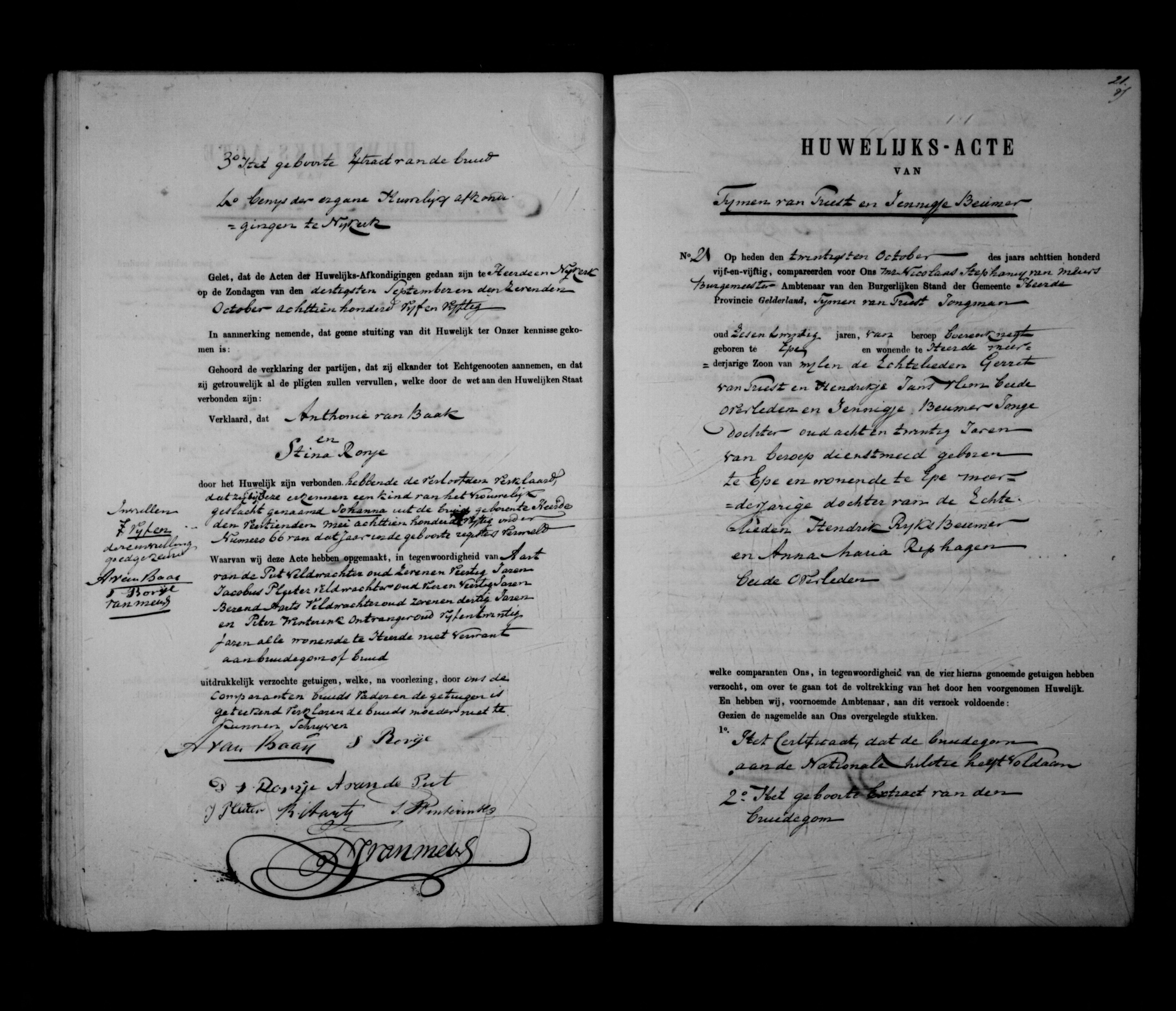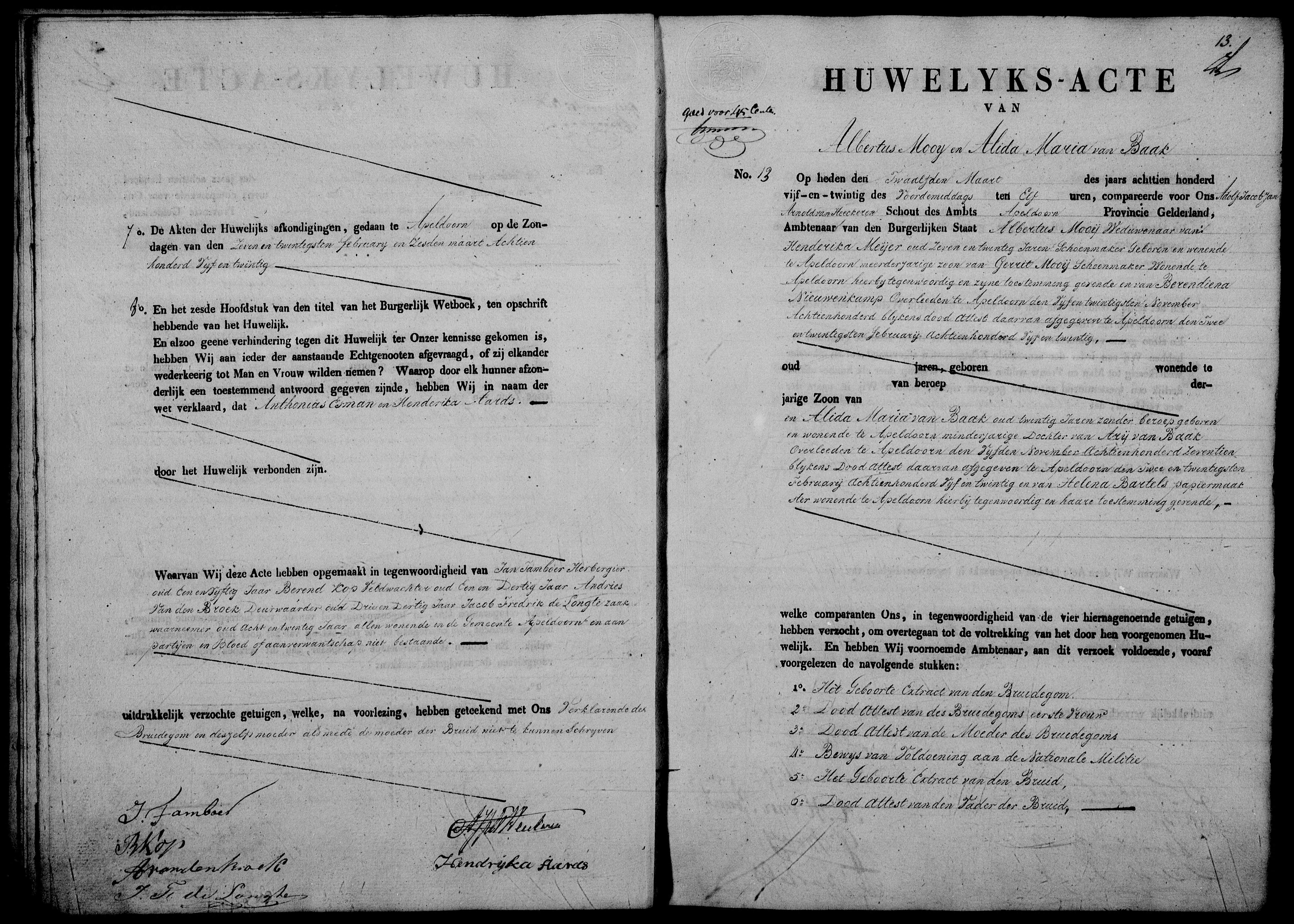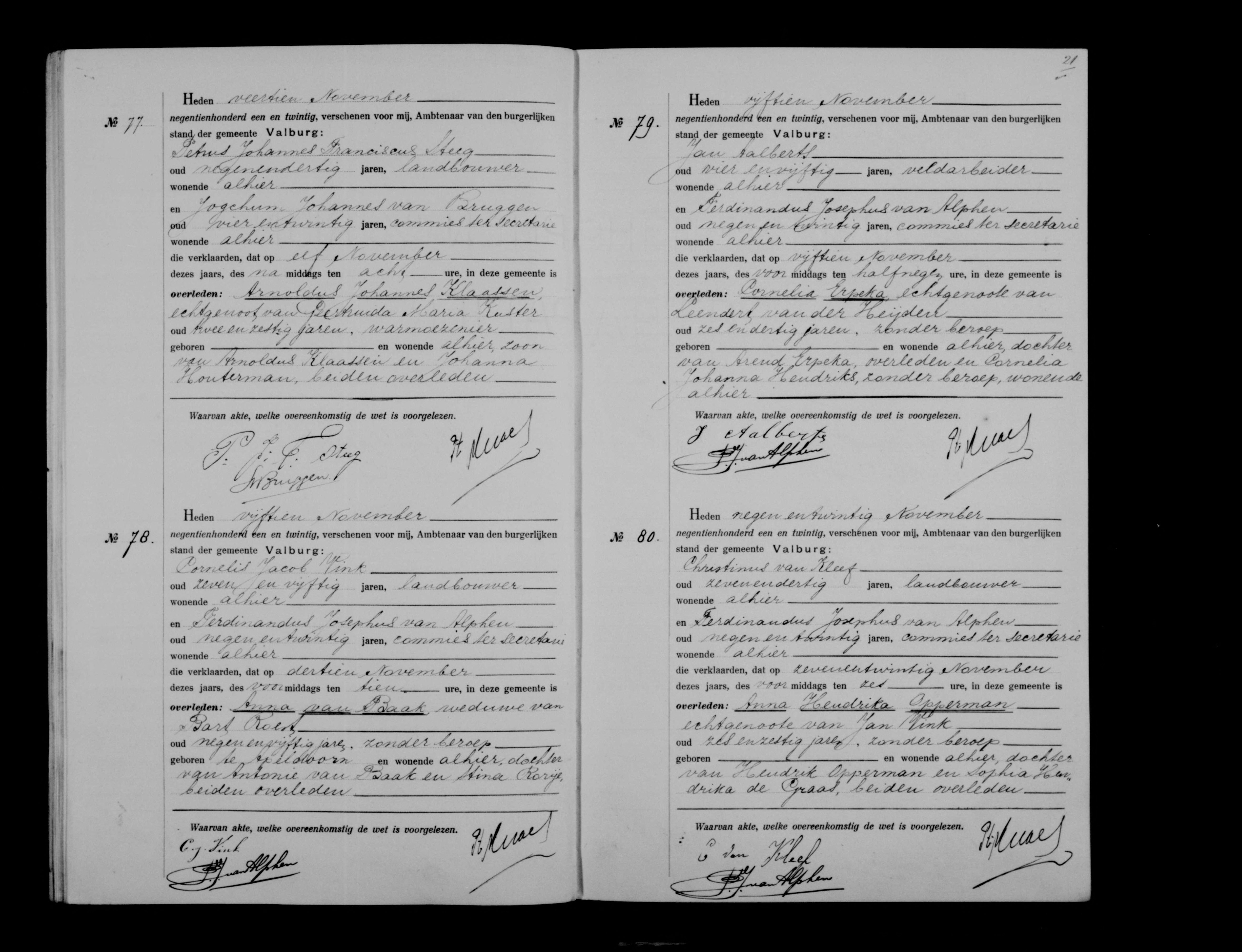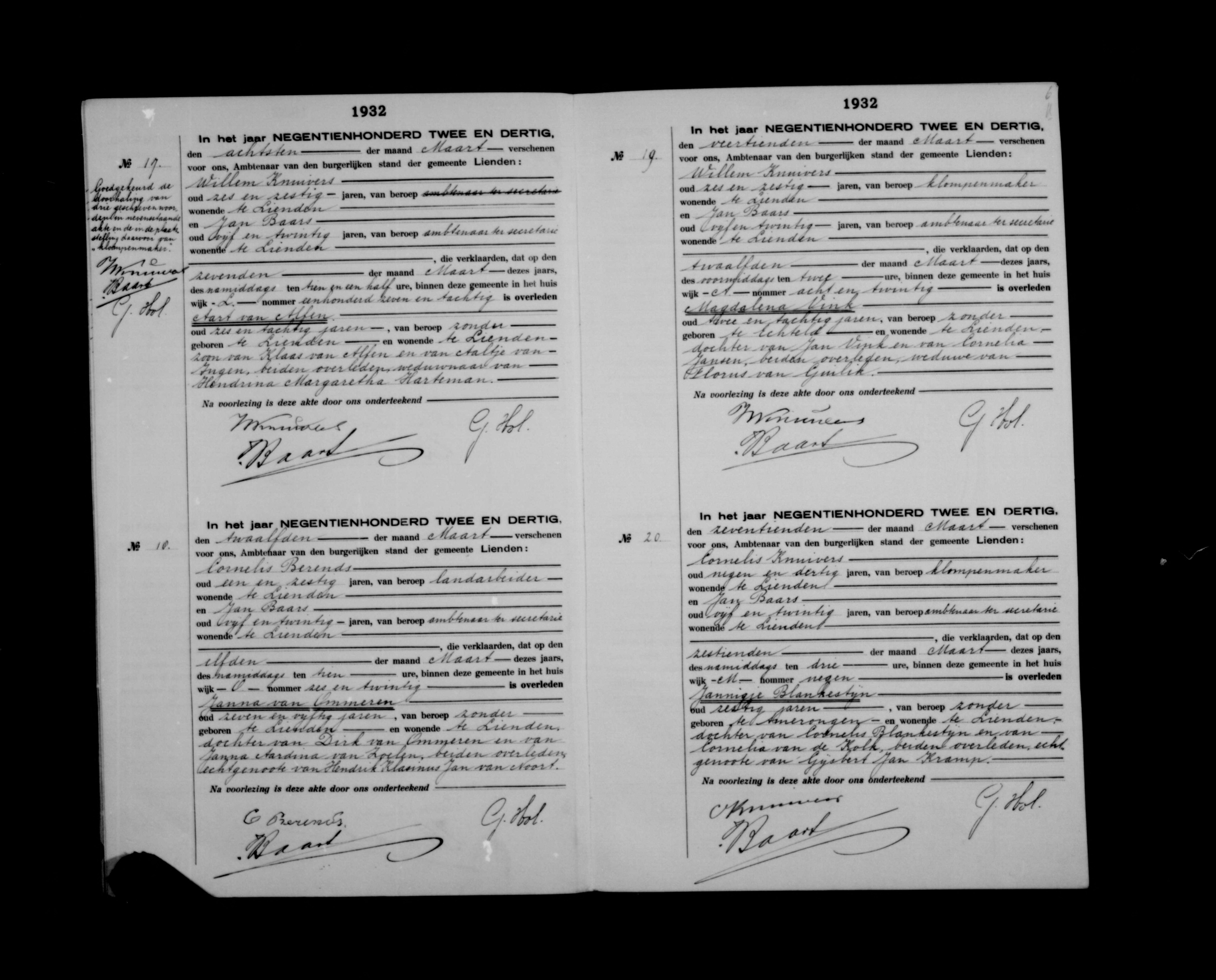 20. “uittreksel BS huwelijk van Baak-Langboom,” 3-5-1916, Lienden, 9096, 8, scan, Gelders Archief Arnhem.