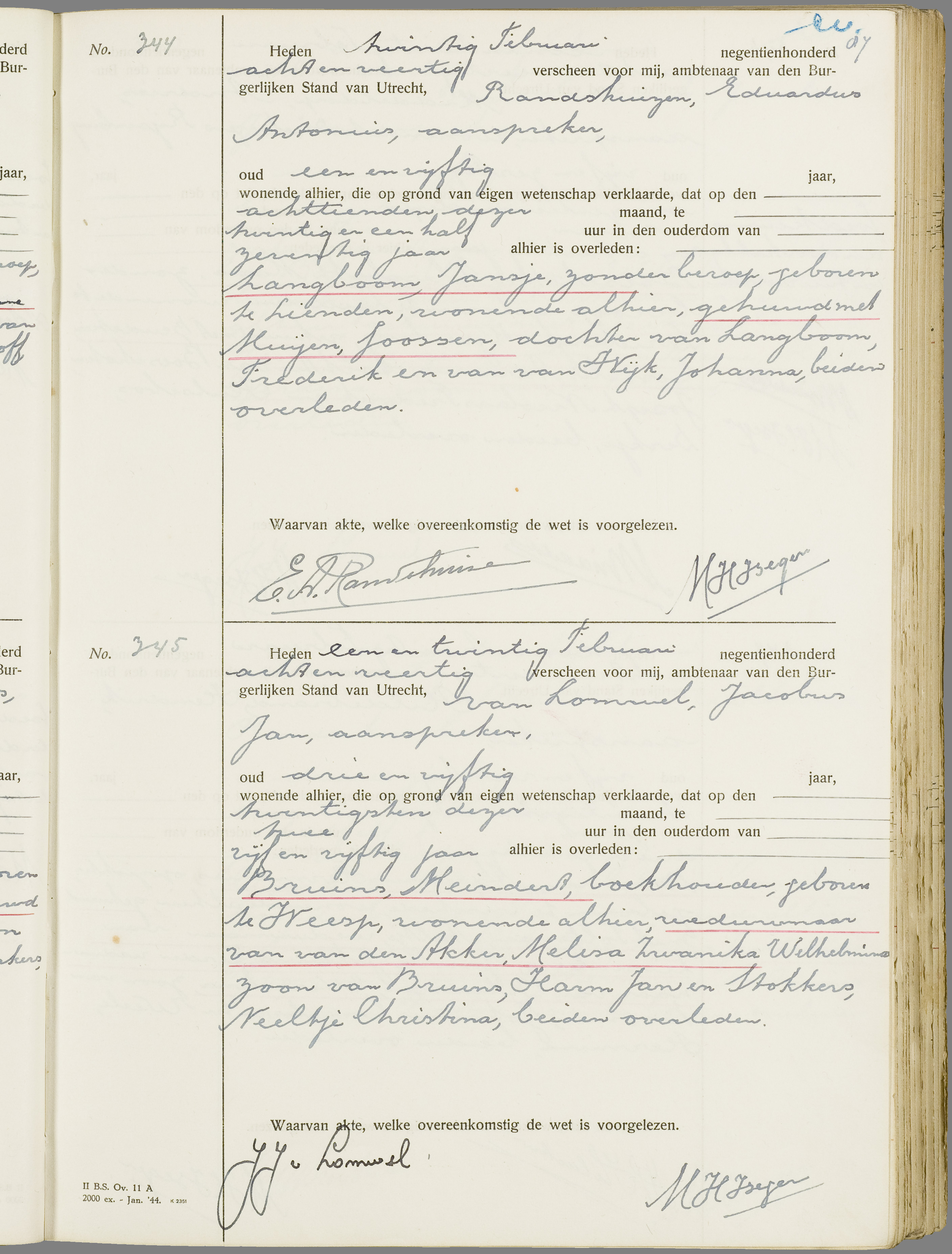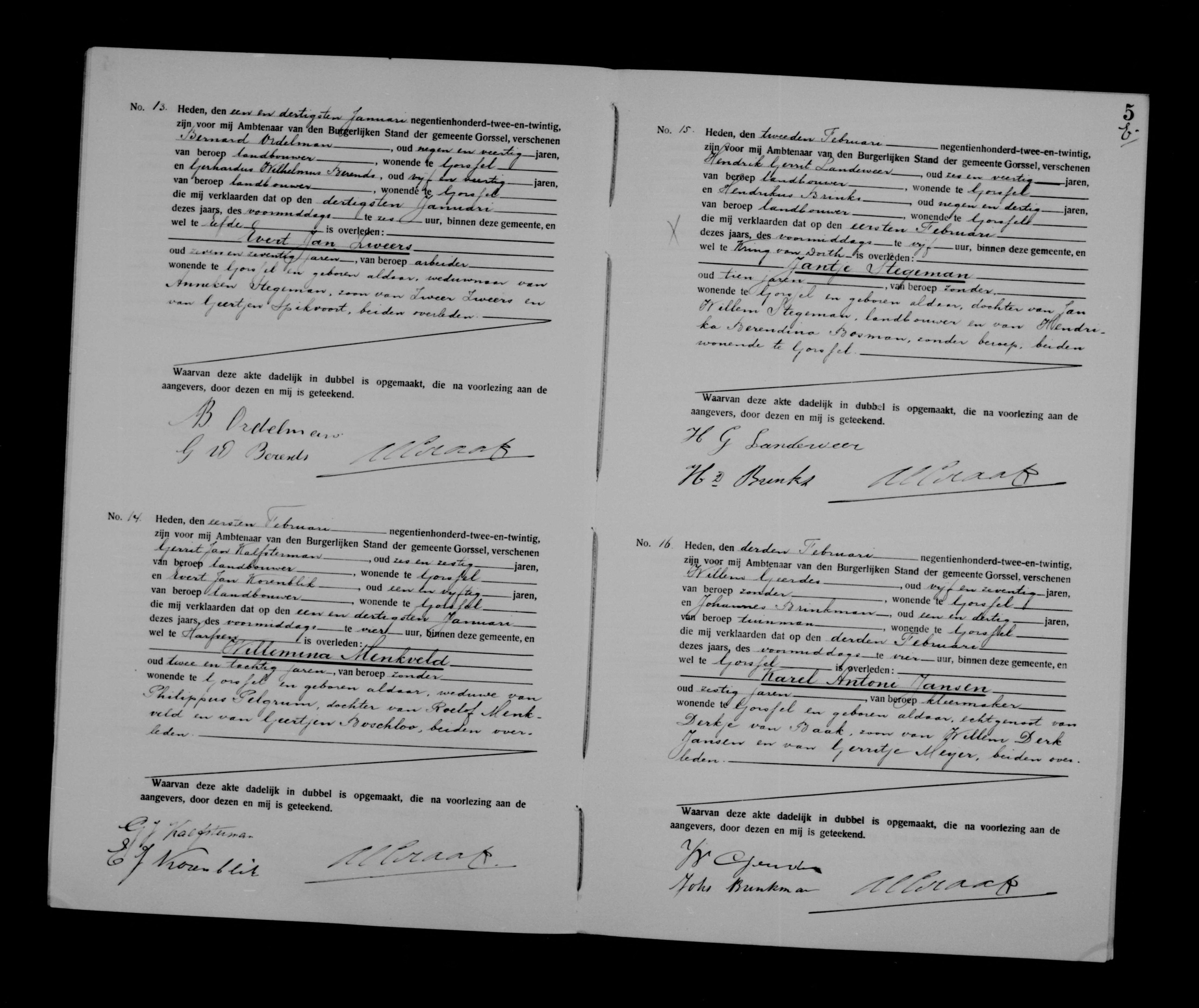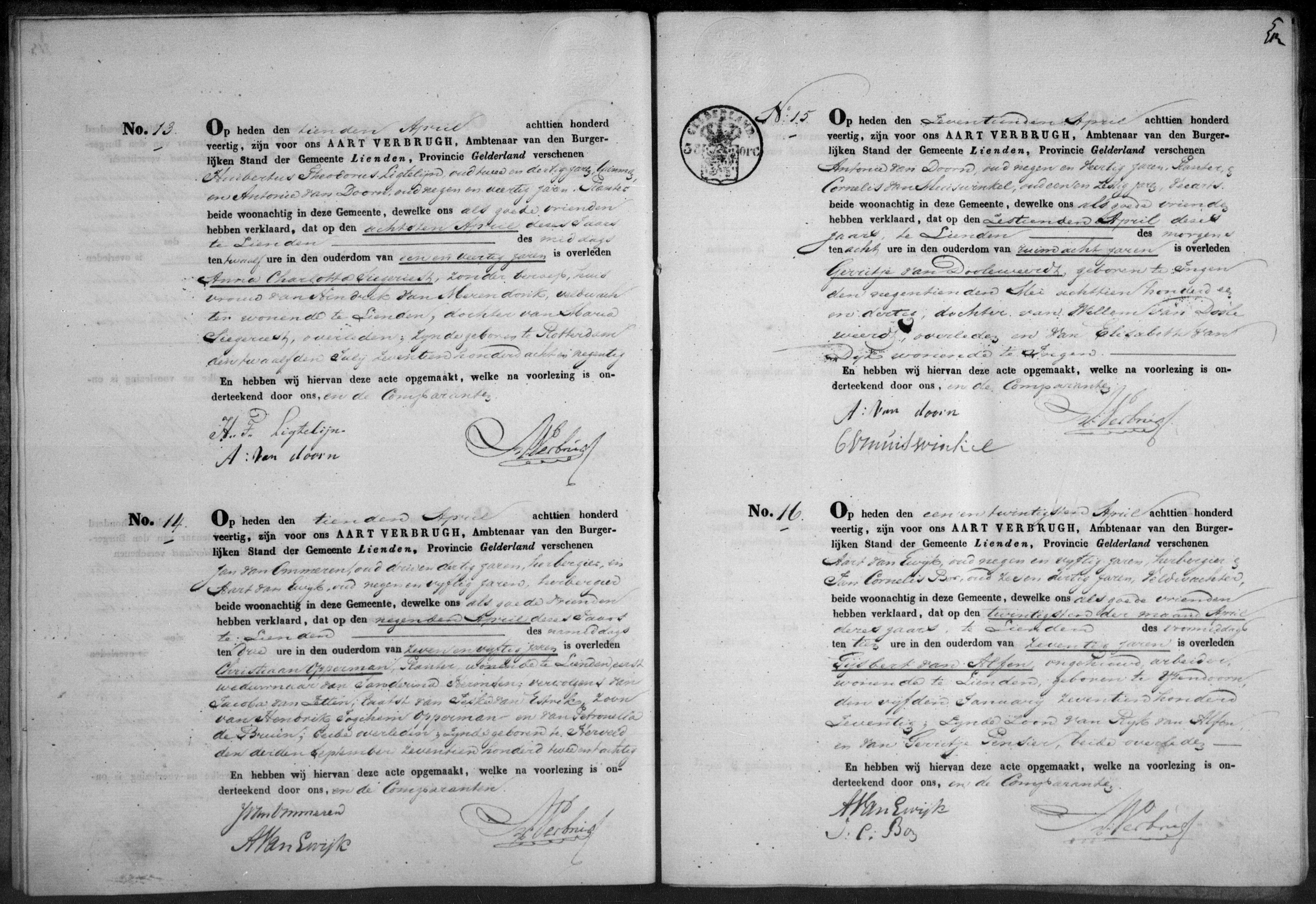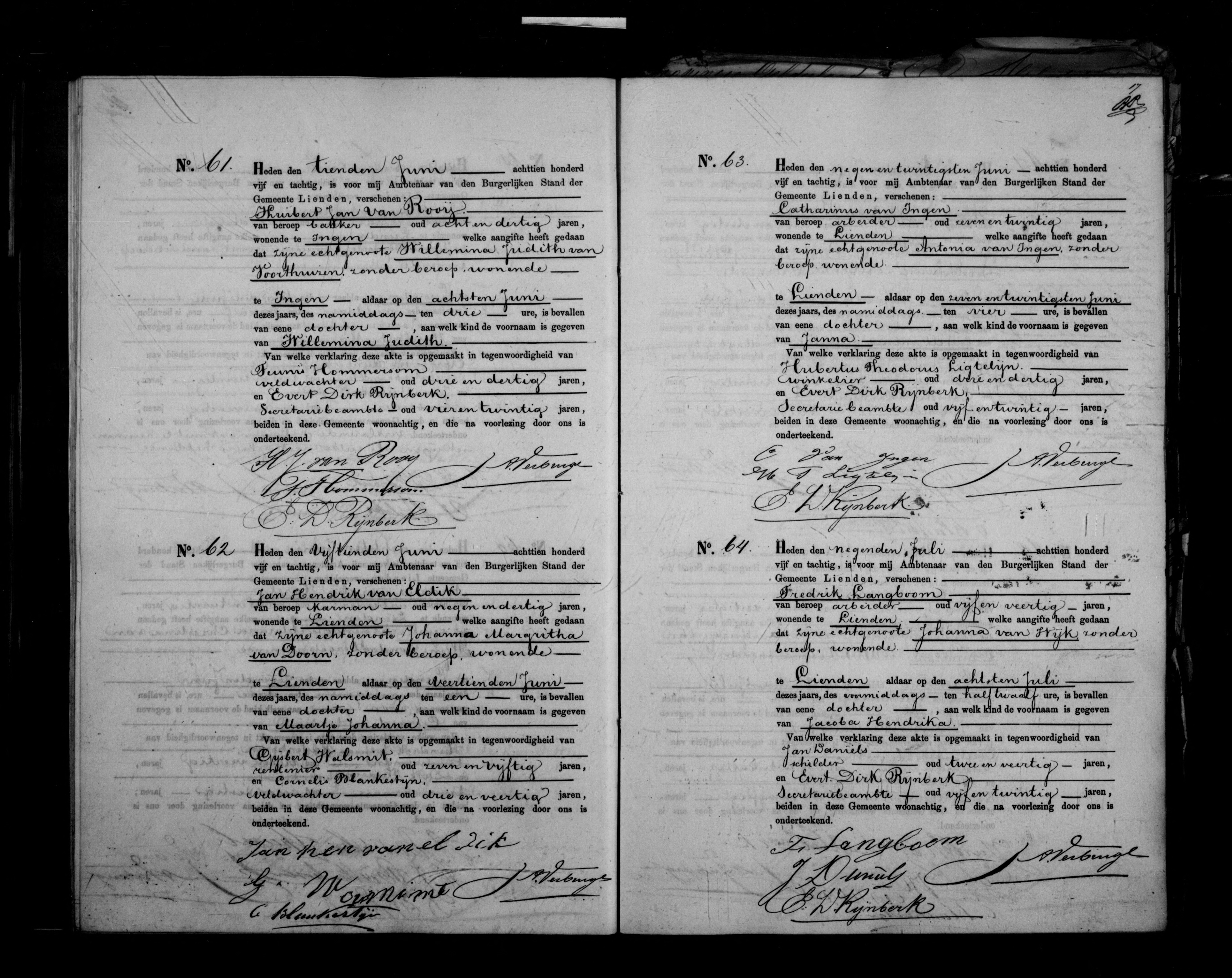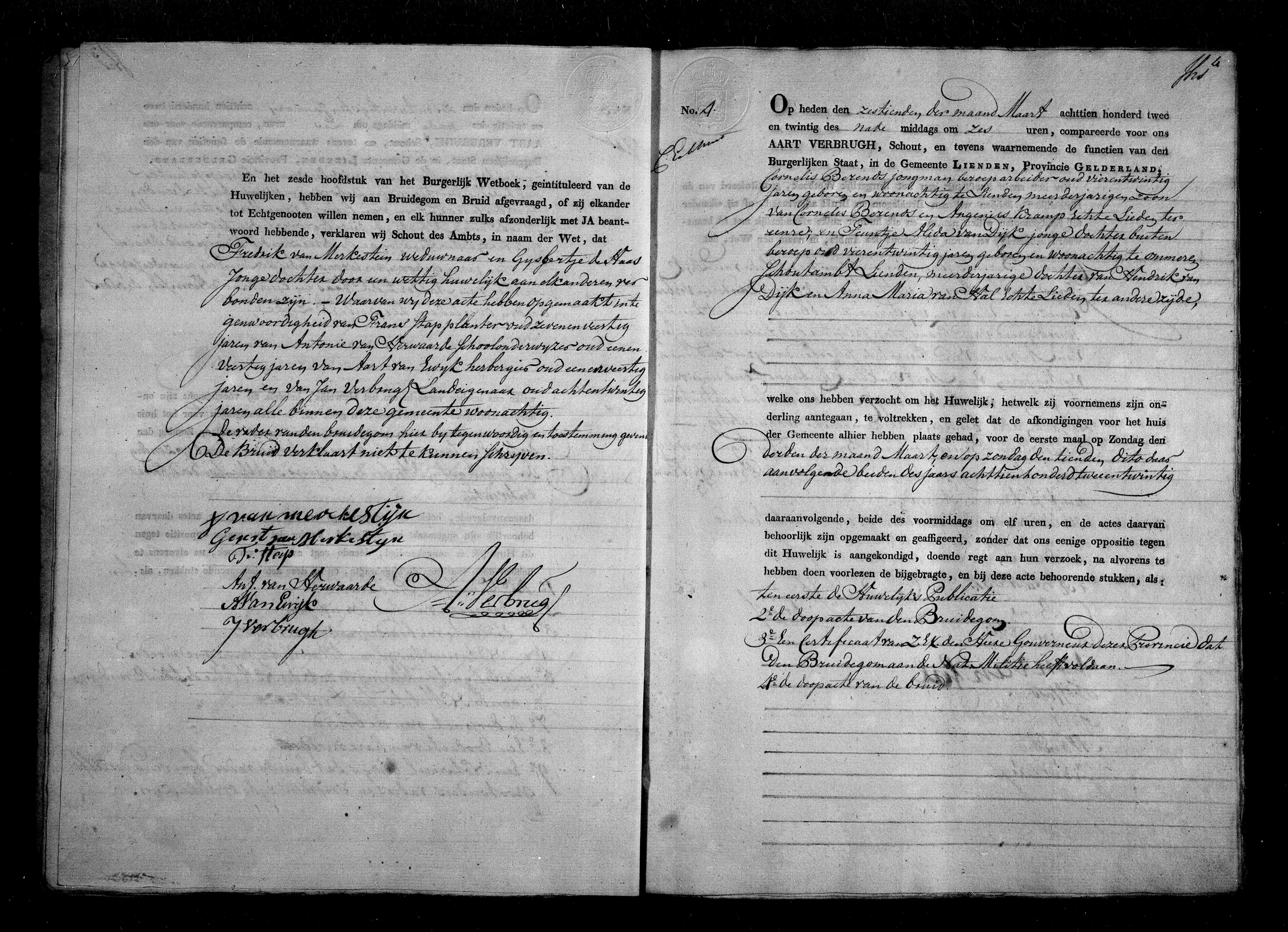 20. “uittreksel BS huwelijk van Baak-Langboom,” 3-5-1916, Lienden, 9096, 8, scan, Gelders Archief Arnhem.