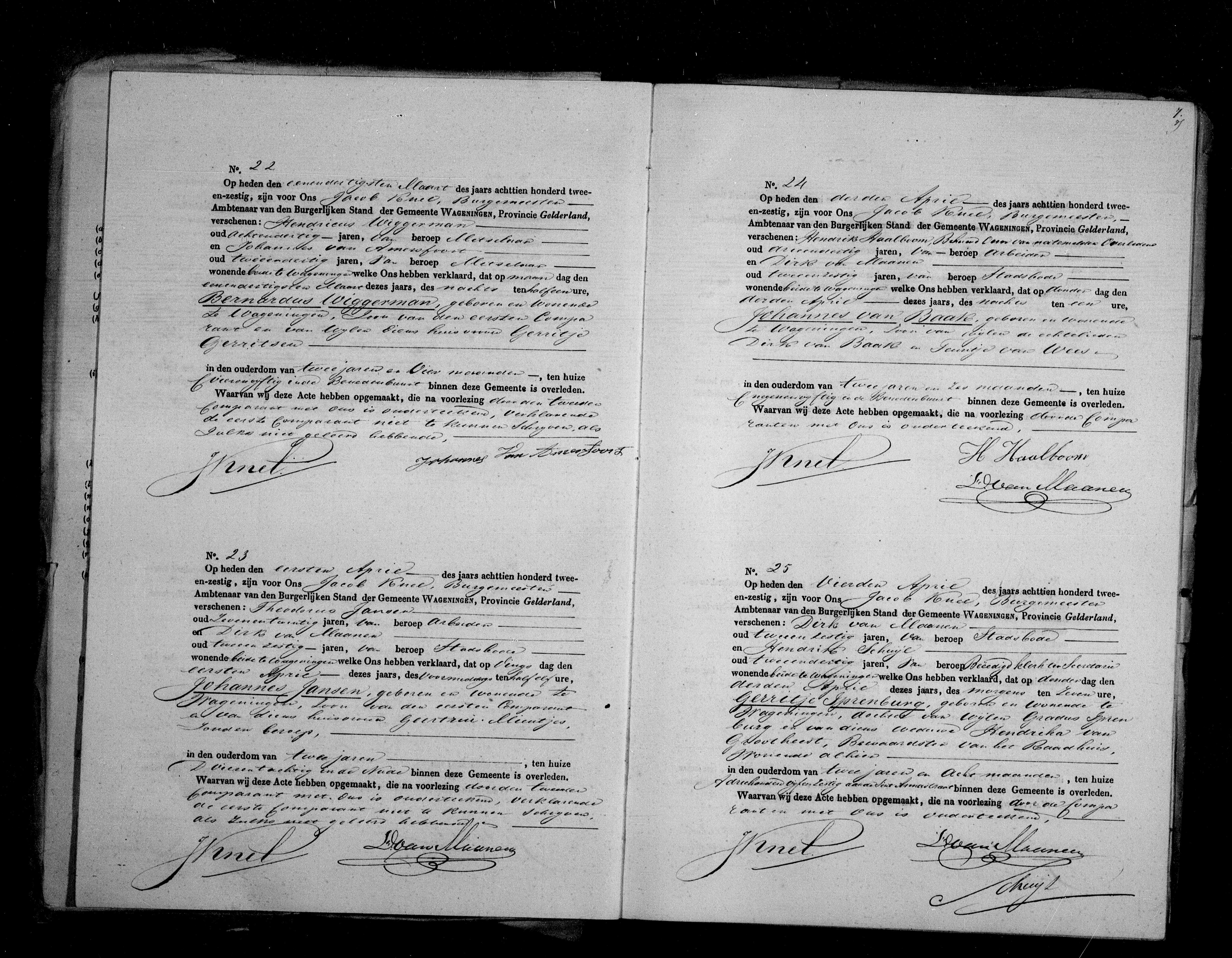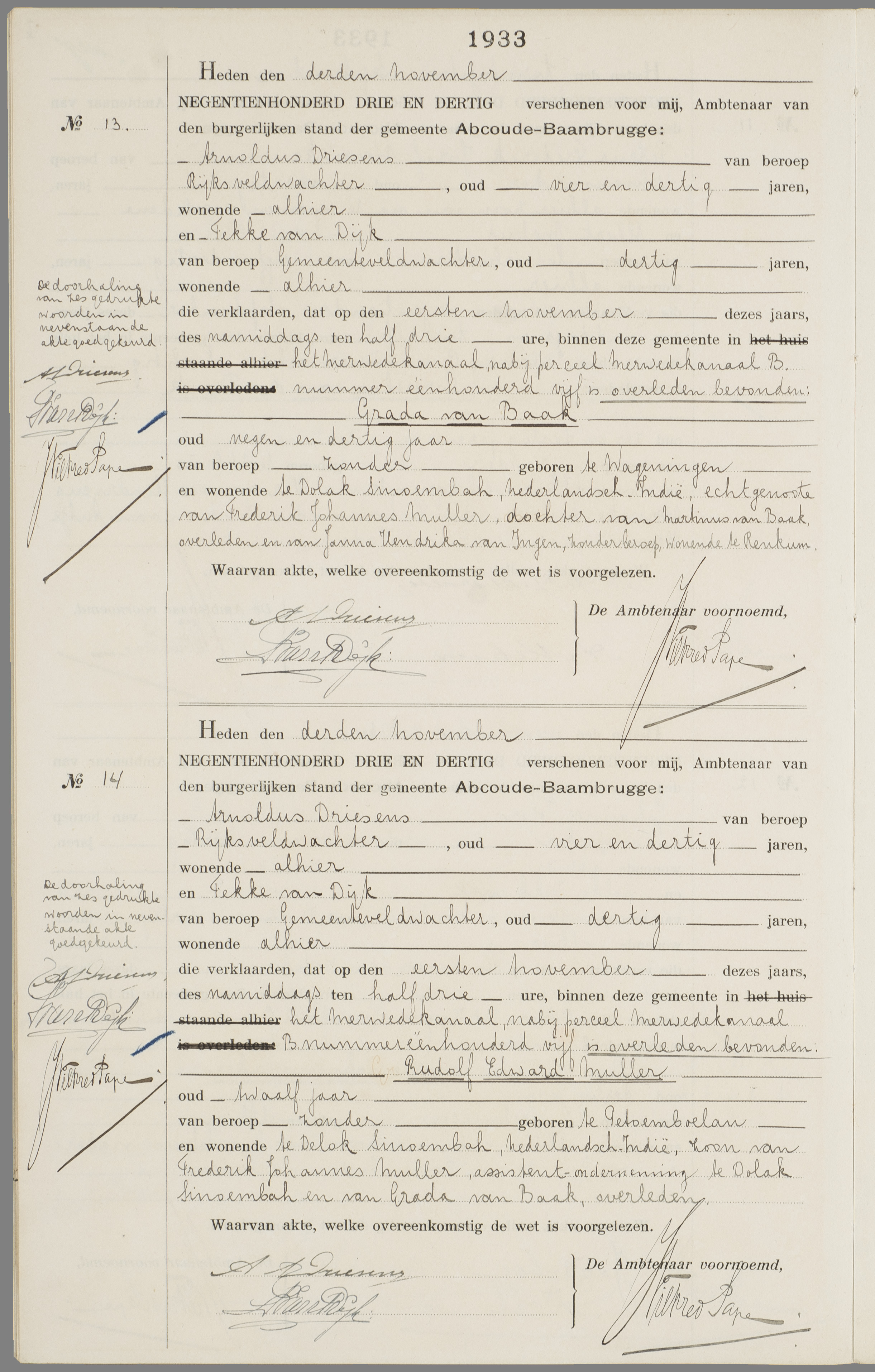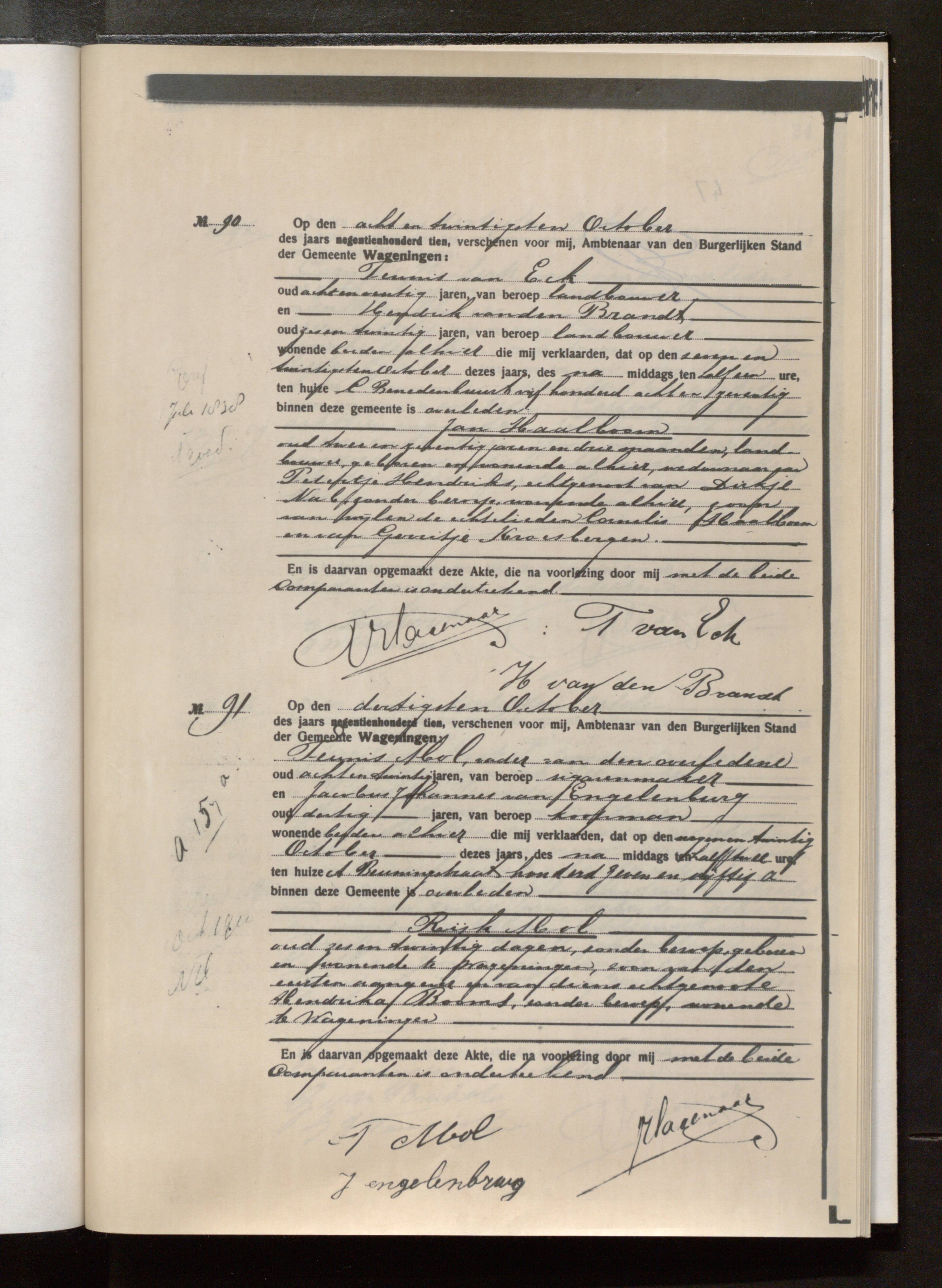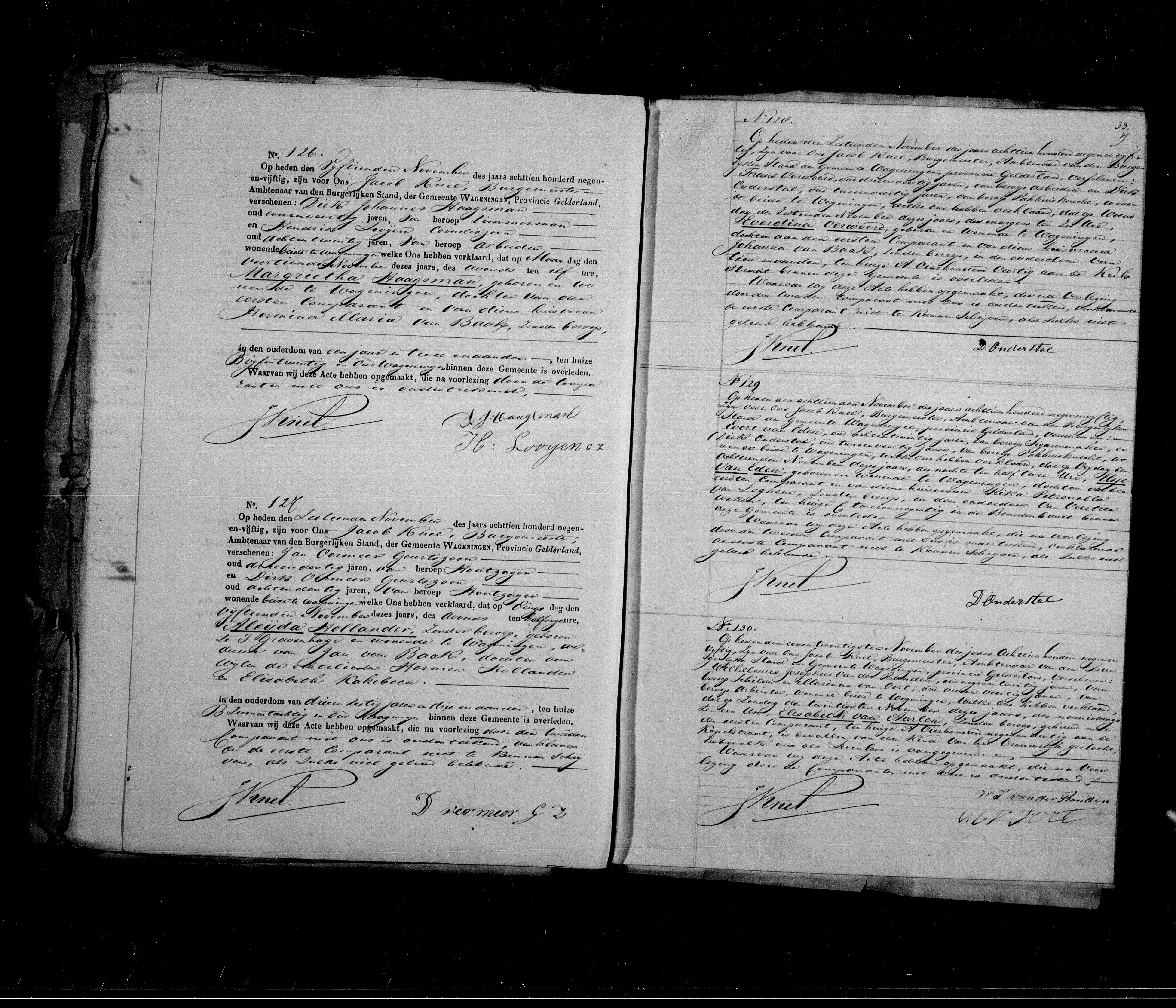 20. “uittreksel BS huwelijk van Baak-Langboom,” 3-5-1916, Lienden, 9096, 8, scan, Gelders Archief Arnhem.