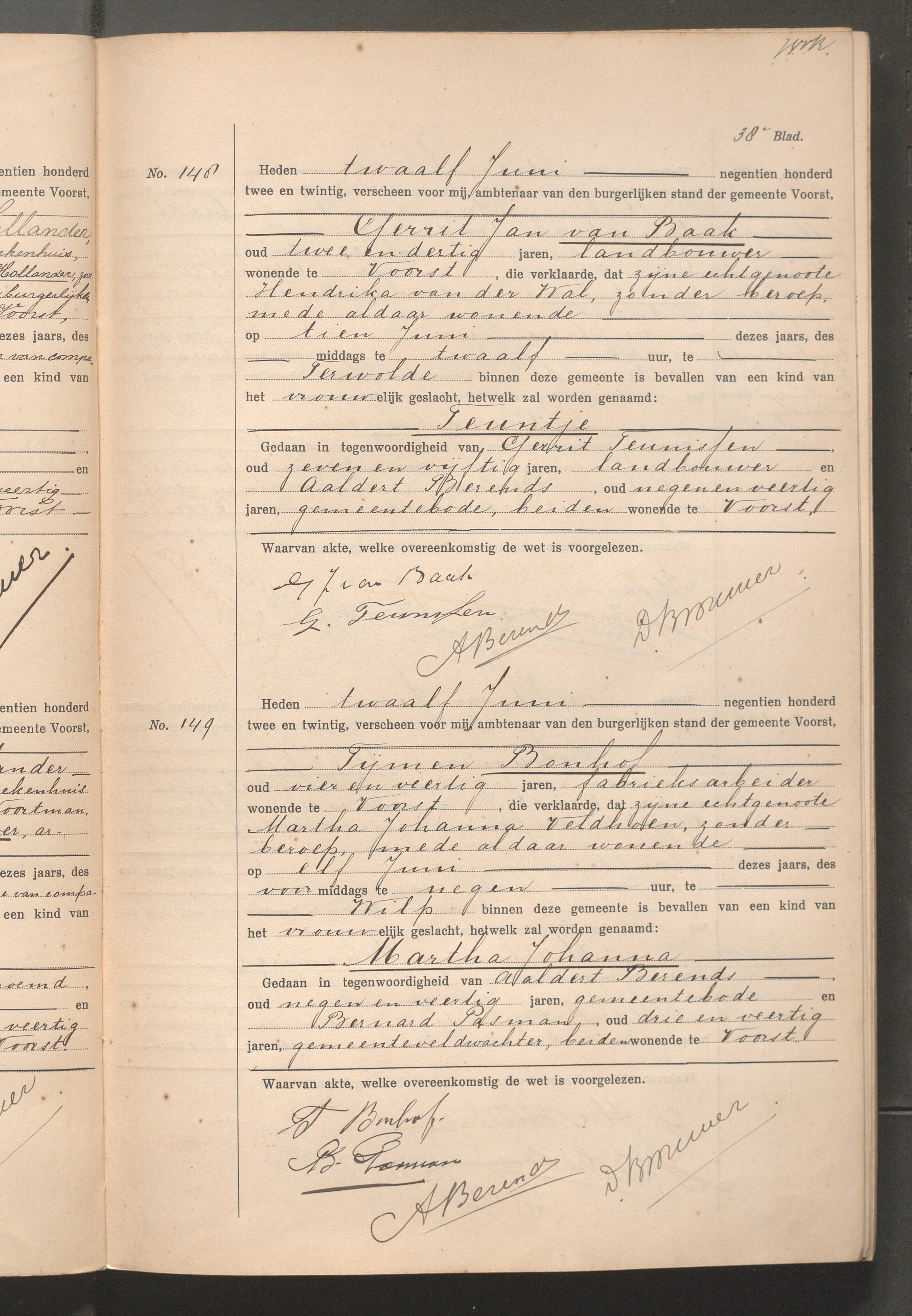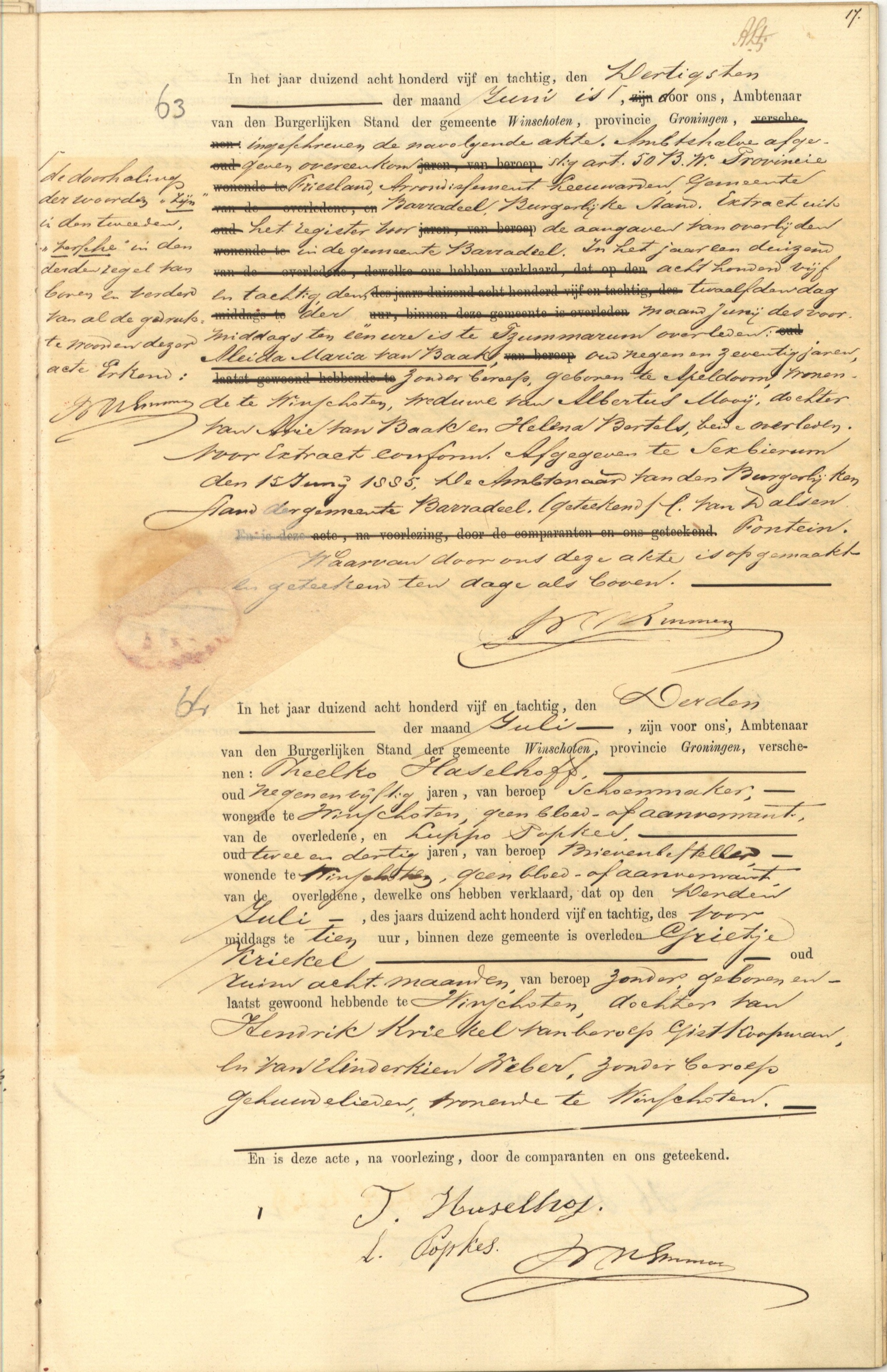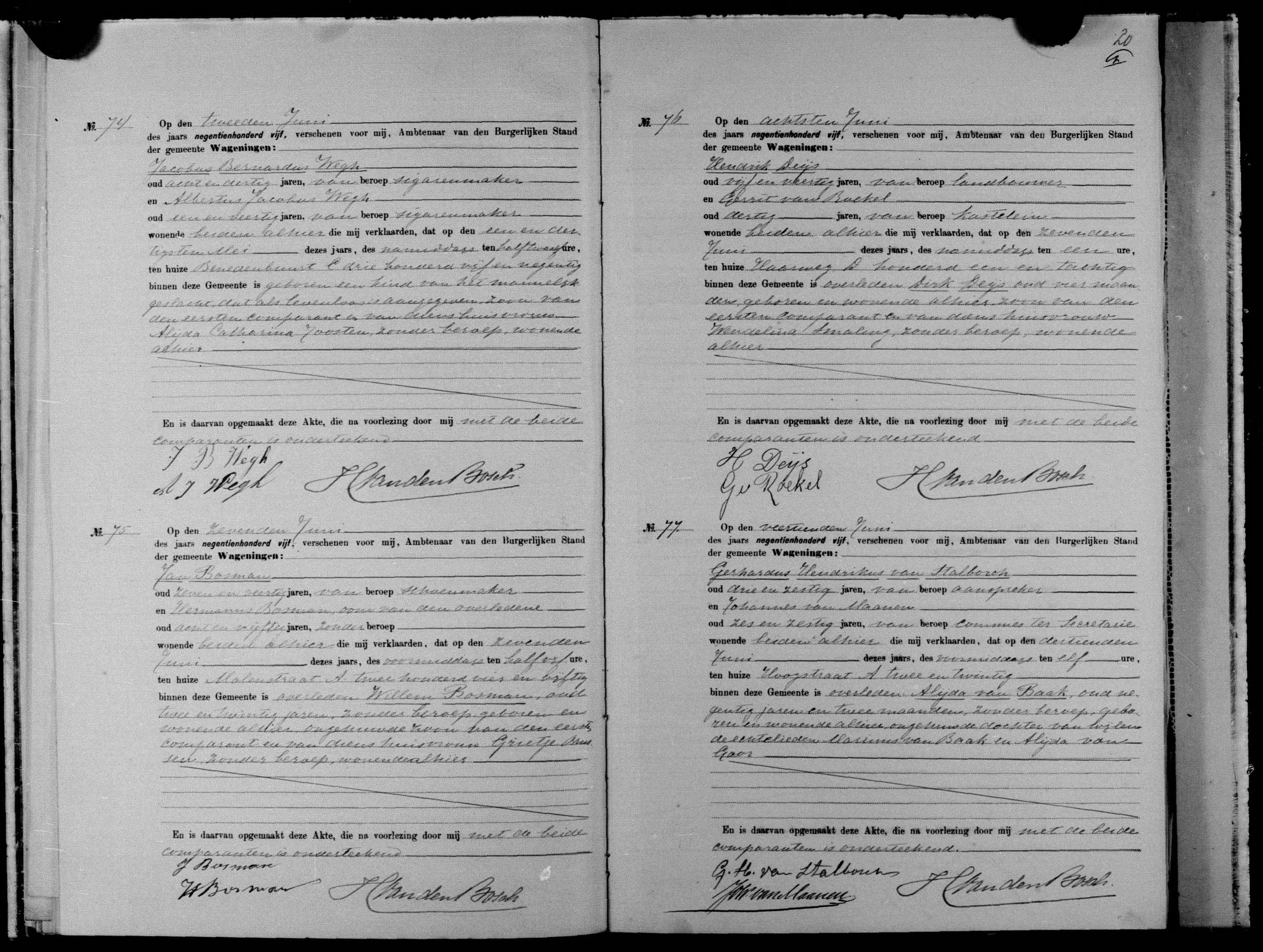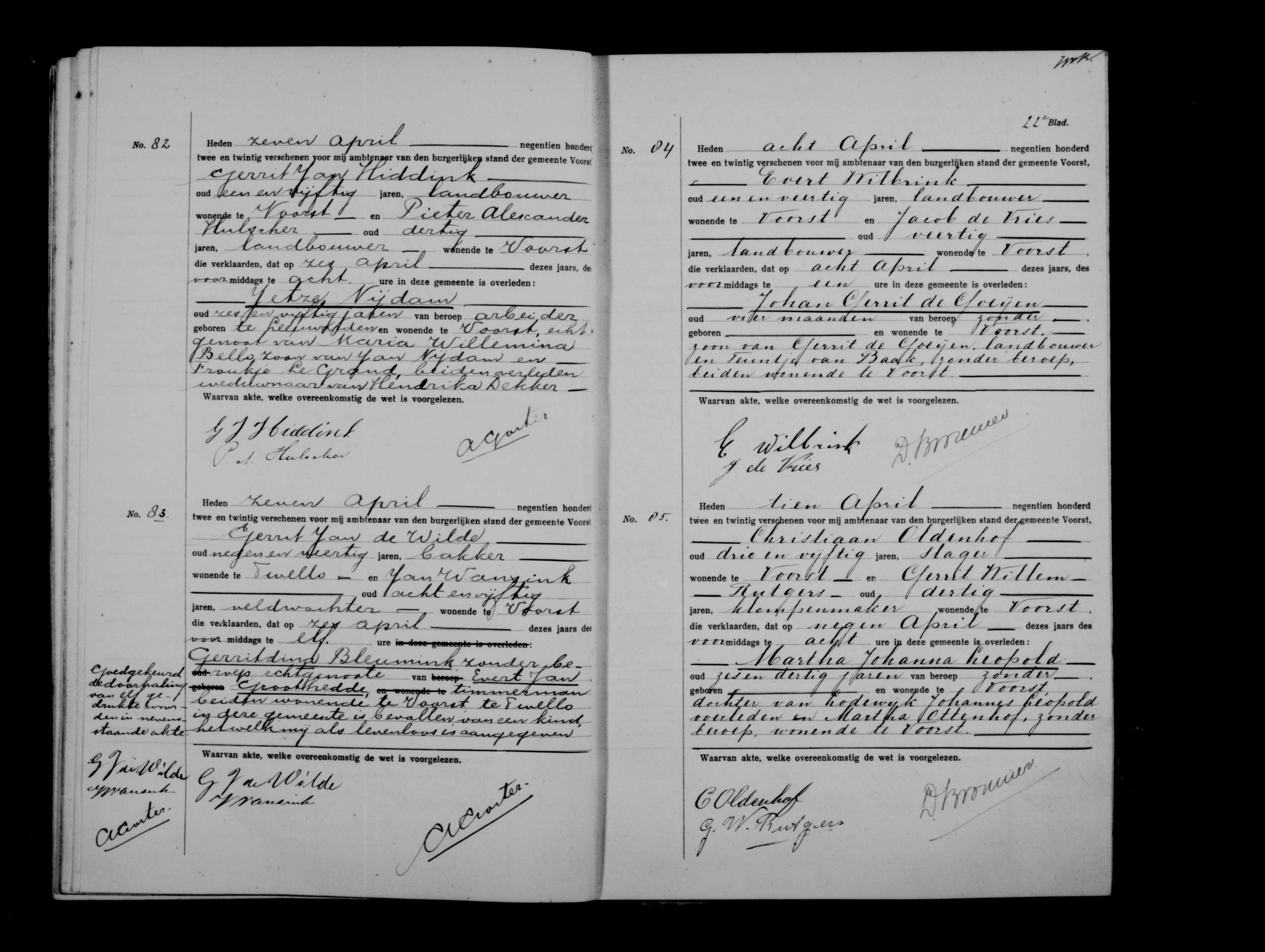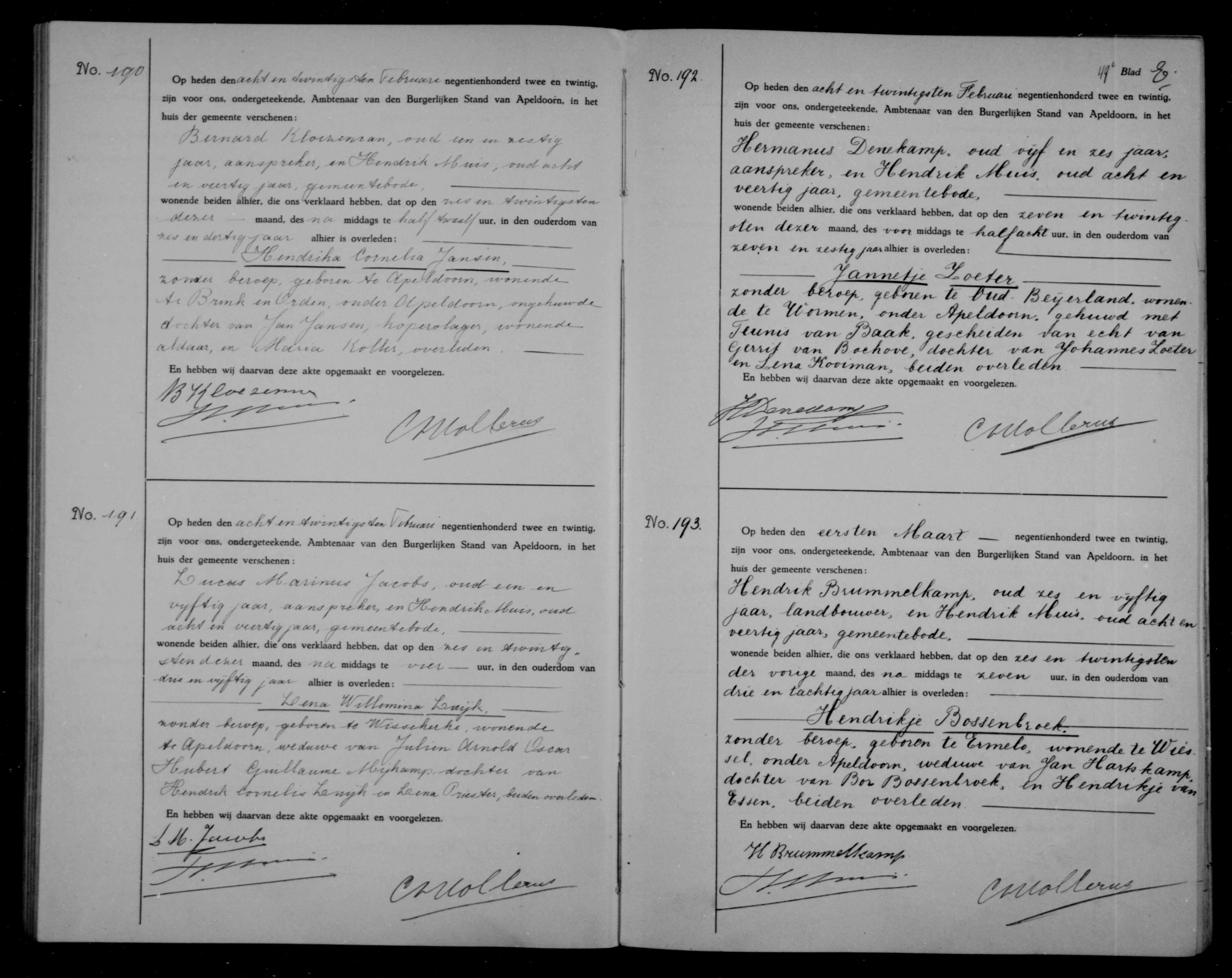 20. “uittreksel BS huwelijk van Baak-Langboom,” 3-5-1916, Lienden, 9096, 8, scan, Gelders Archief Arnhem.