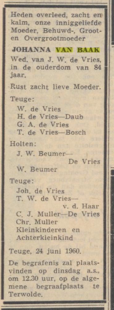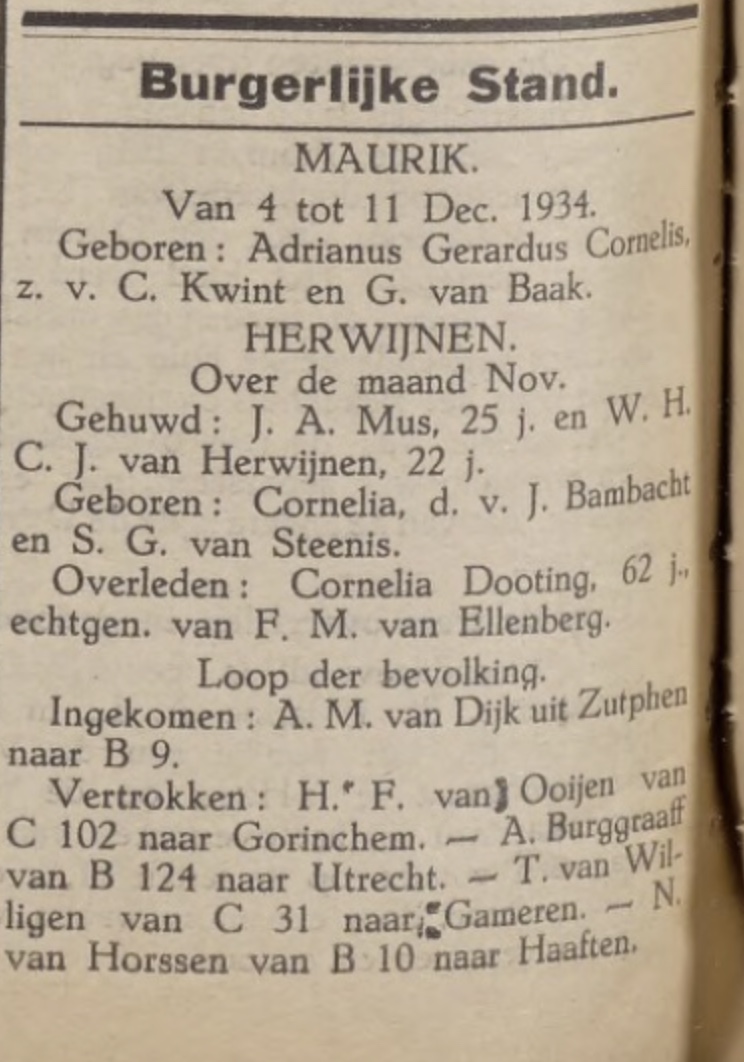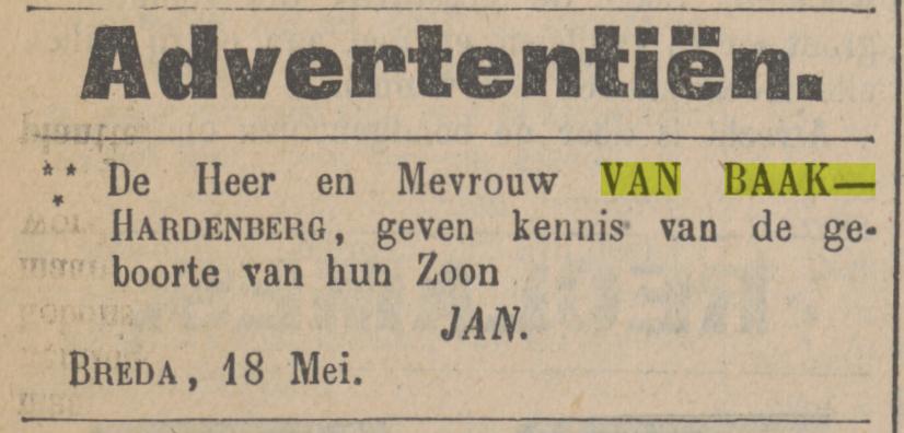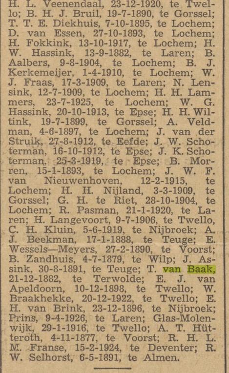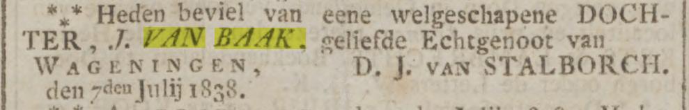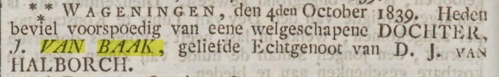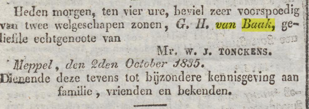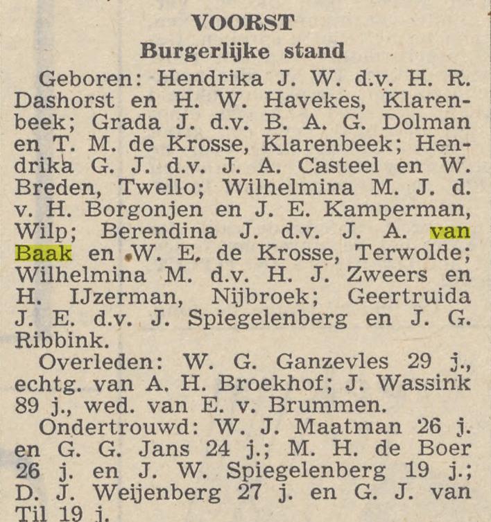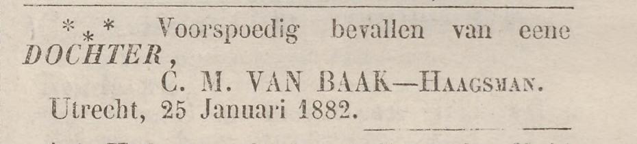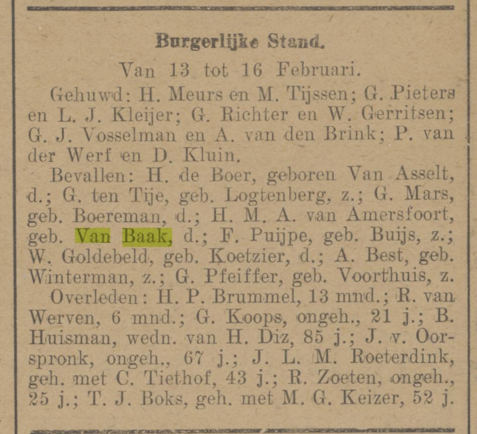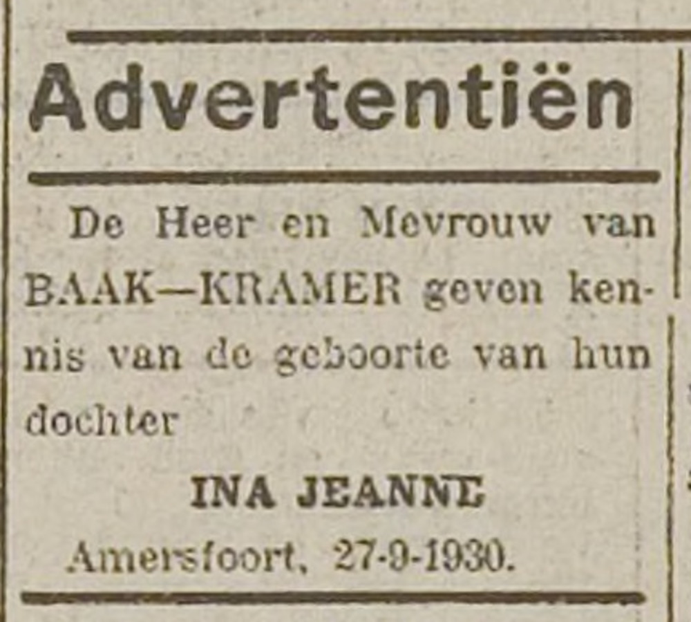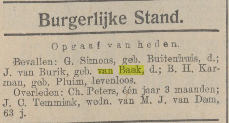 23. “geboorteberichten burgelijke stand Lienden - Janna Alida Frederika van Baak,” Nieuwe Tielsche Courant, 18-7-1917, 2, scan, Regionaal Archief Rivierenland.