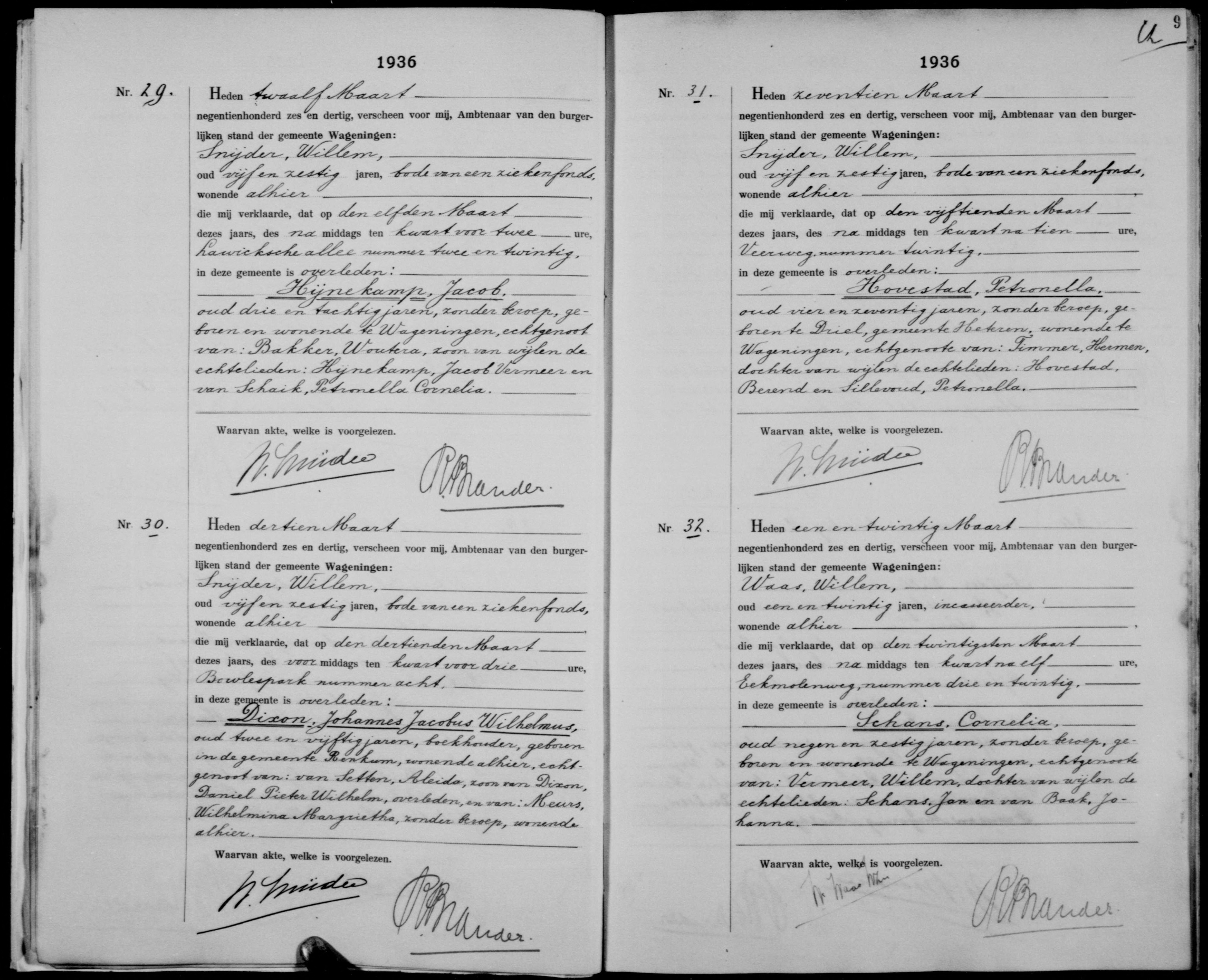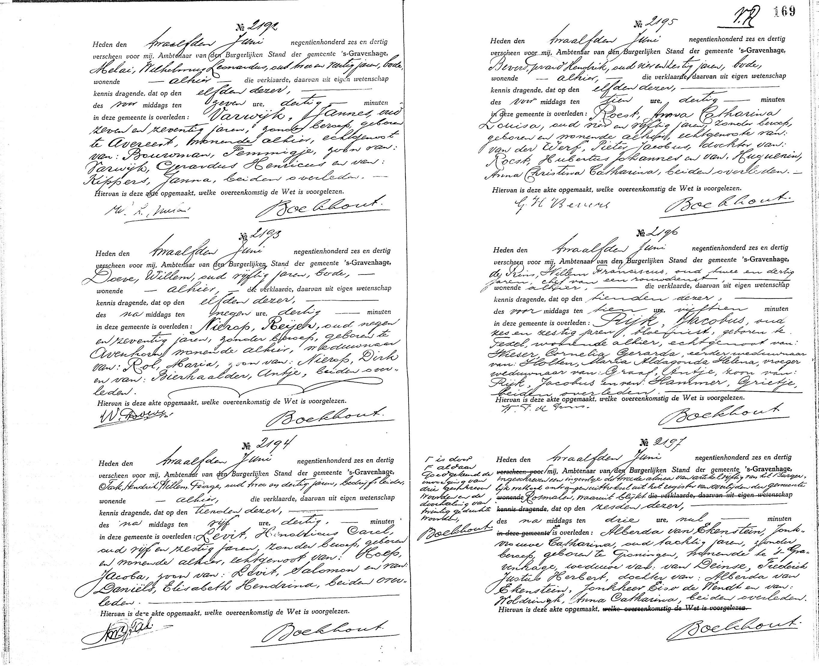 38. “uittreksel BS overlijden Reijer Nierop,” 12-6-1936, ’s-Gravenhage, 2193, scan, Haags Gemeentearchief.