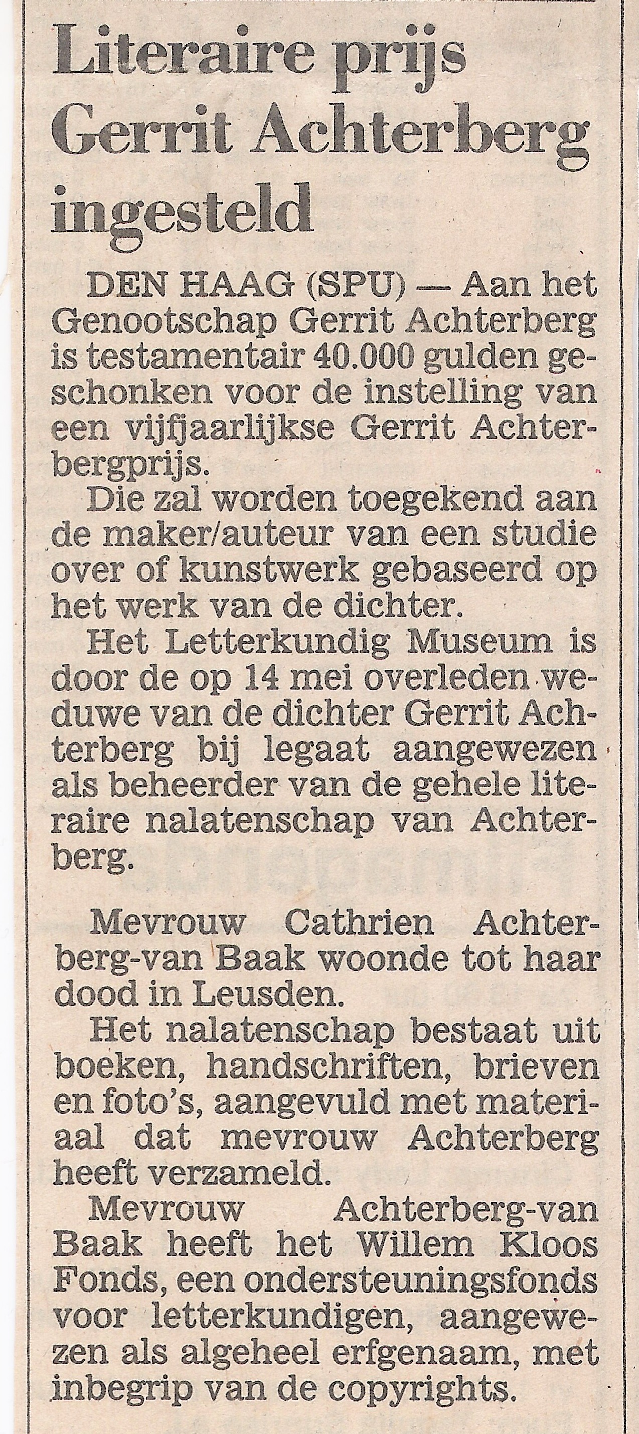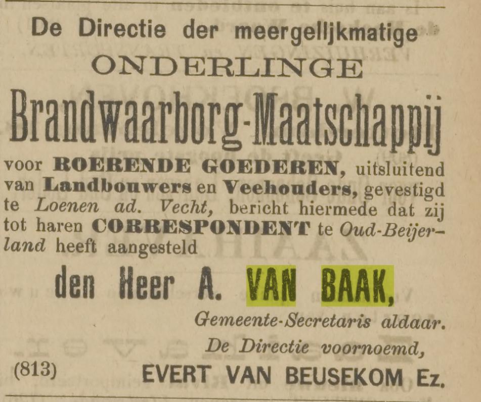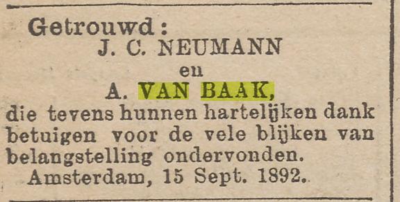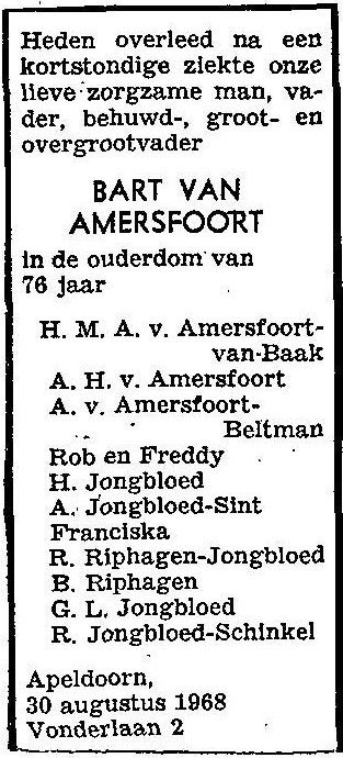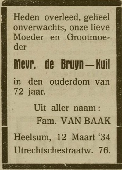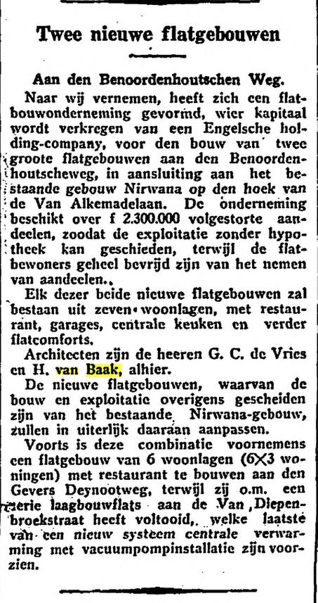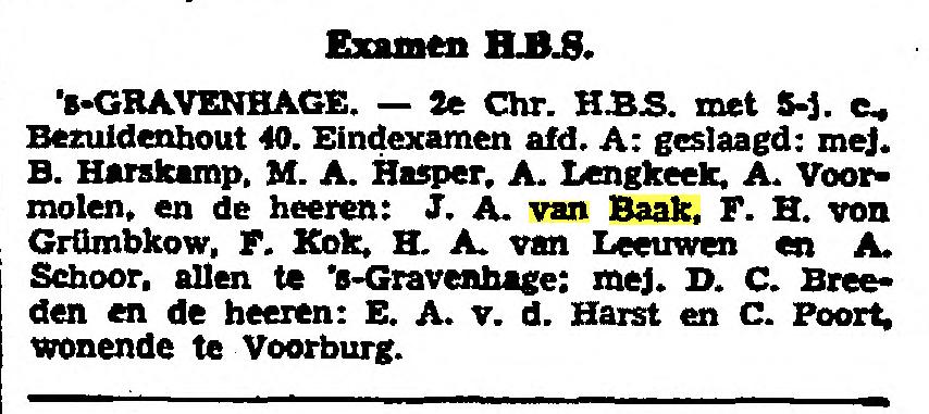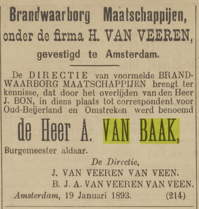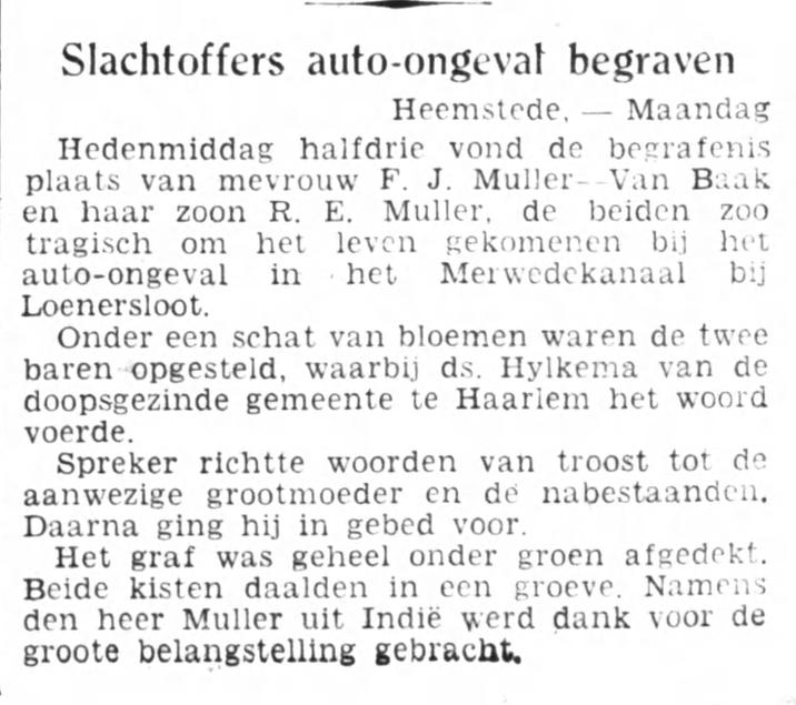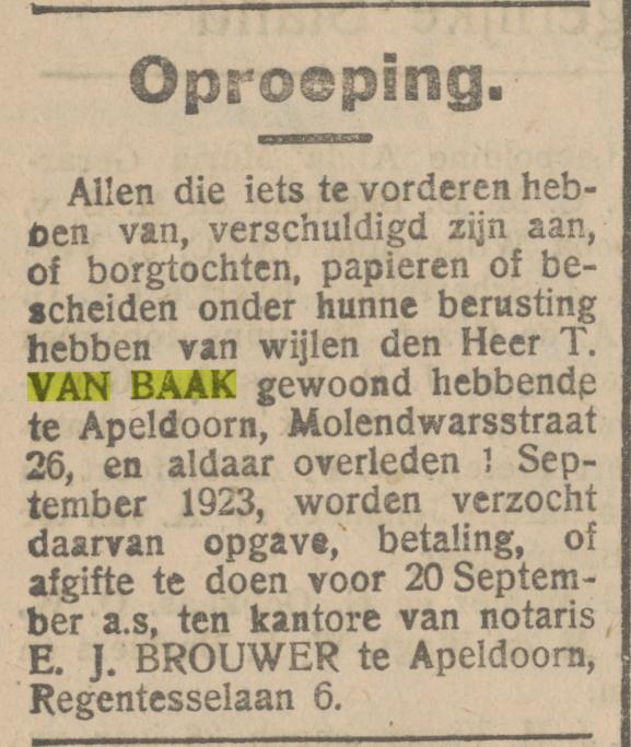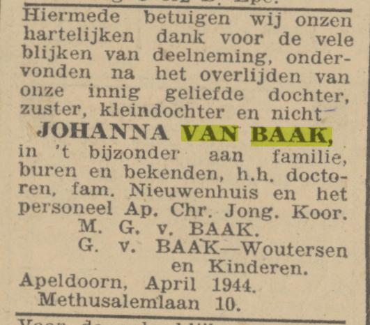 14. “dankbetuiging begrafenis Marius van Baak,” Haagsche Courant, ’s-Gravenhage, 29-09-1923, bad 5 pag 4, krant, familiearchief van Baak.