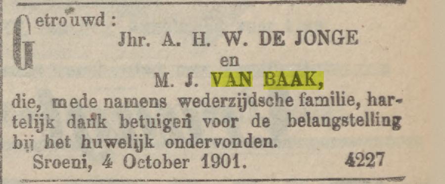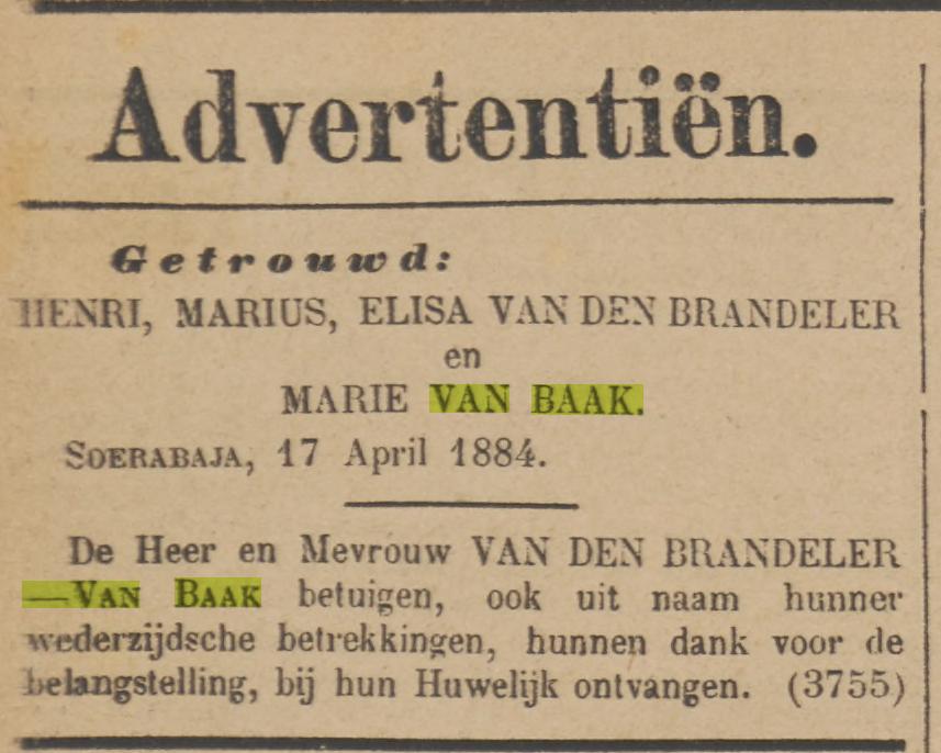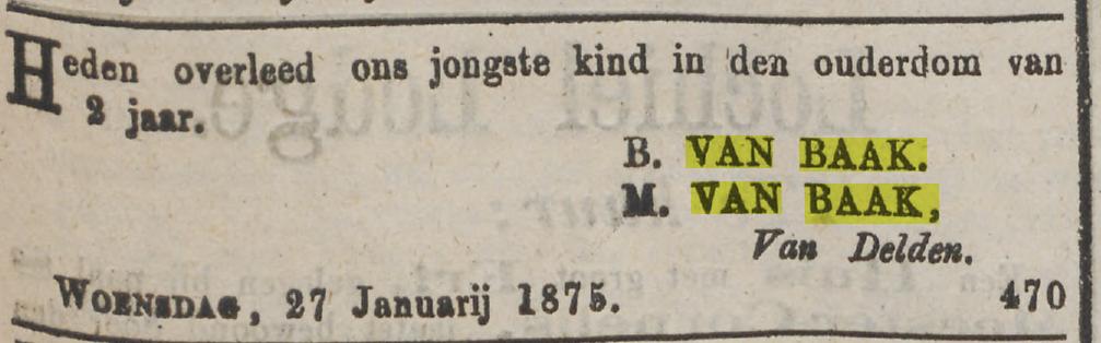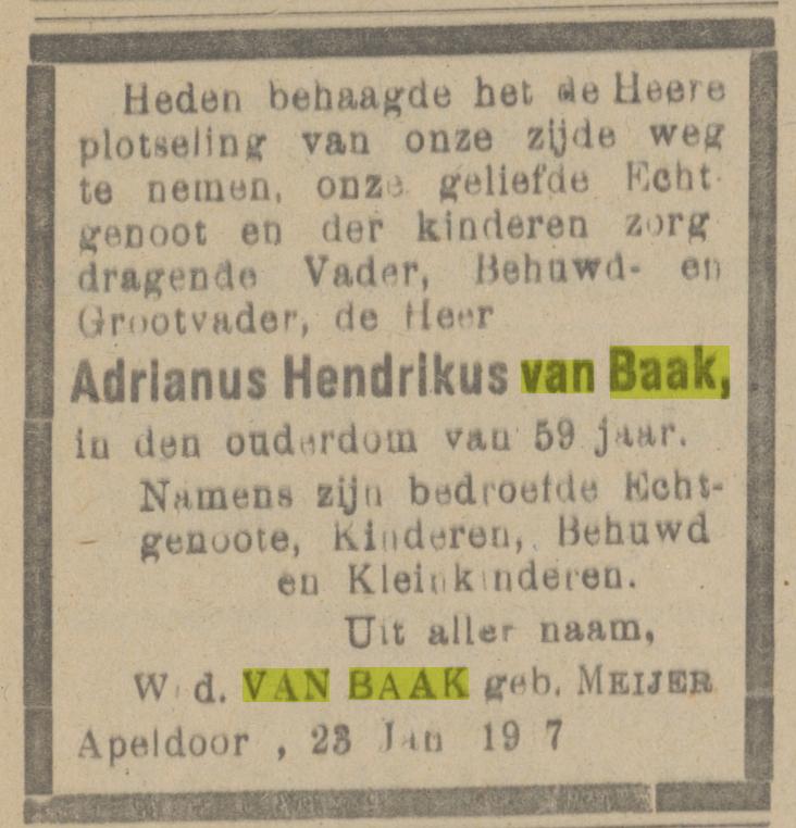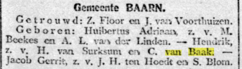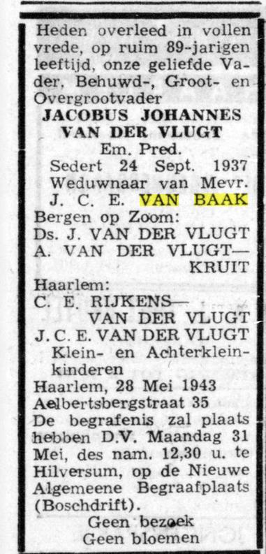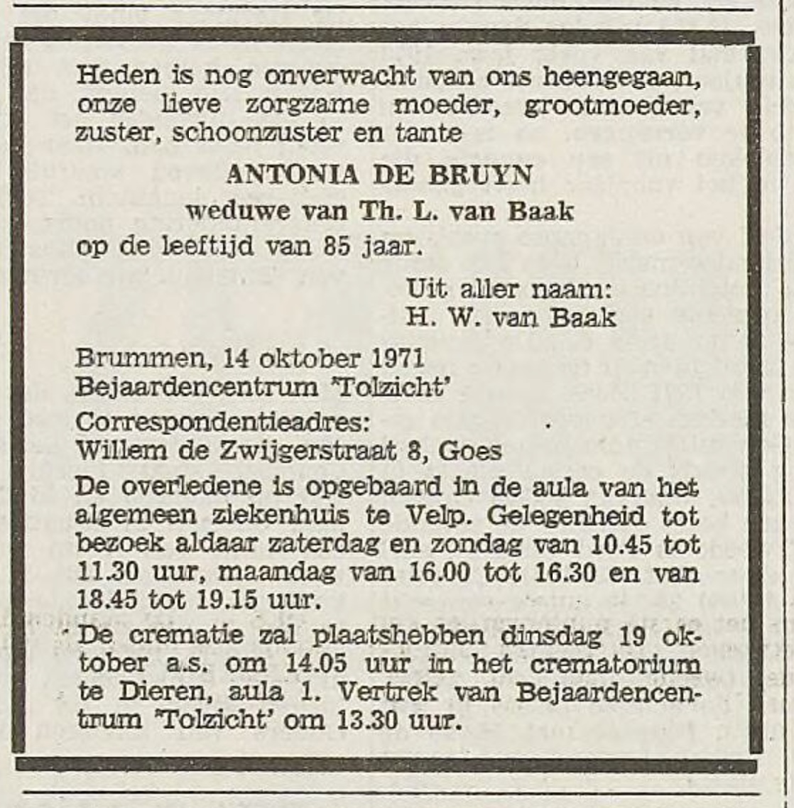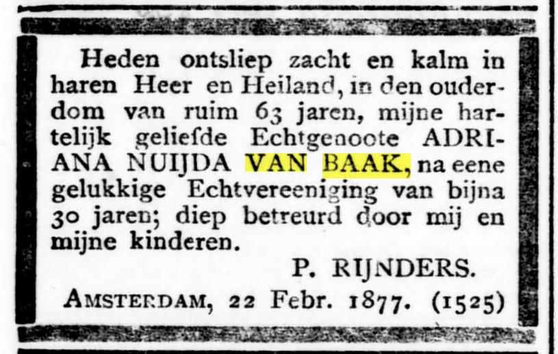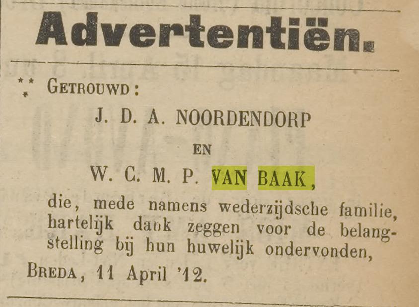 13. “overlijdensadvertentie Marius van Baak,” Haagsche Courant, ’s-Gravenhage, 17-9-1923, blad 3 pag 4, krant, familiearchief van Baak.