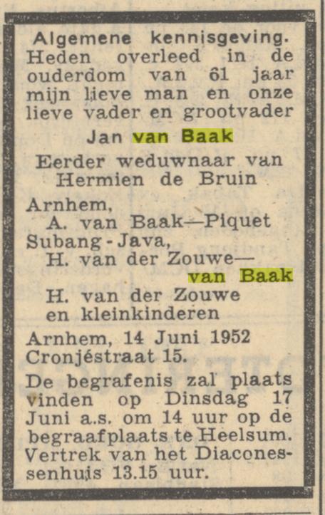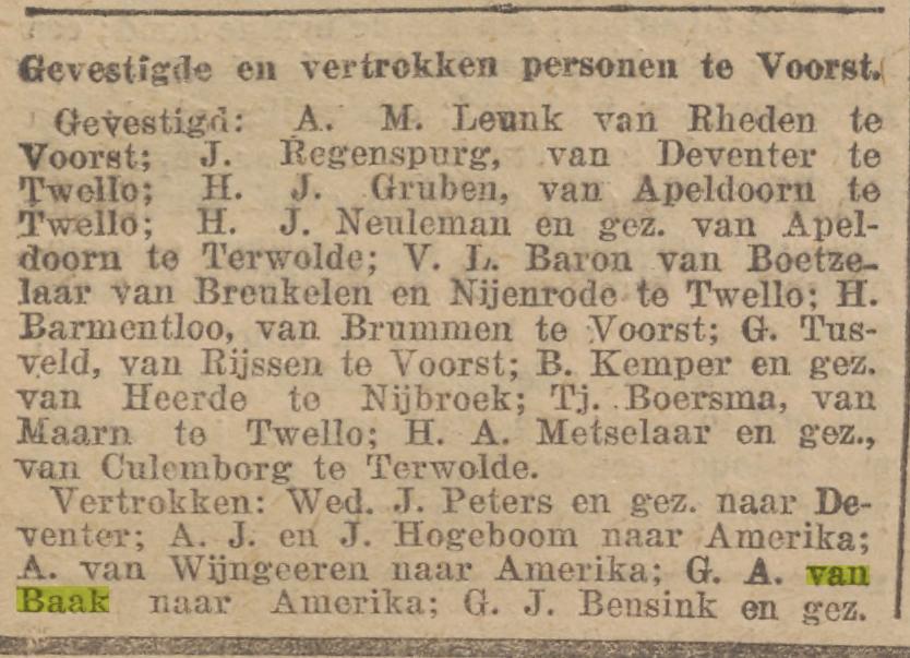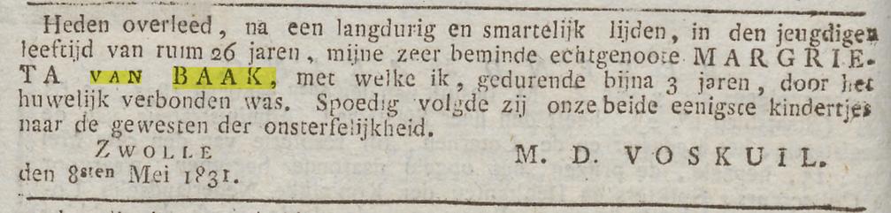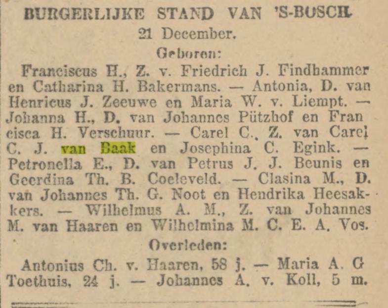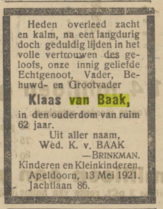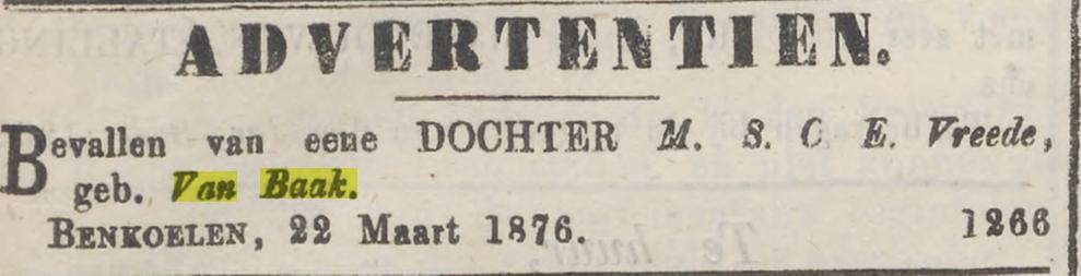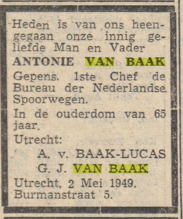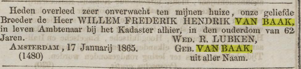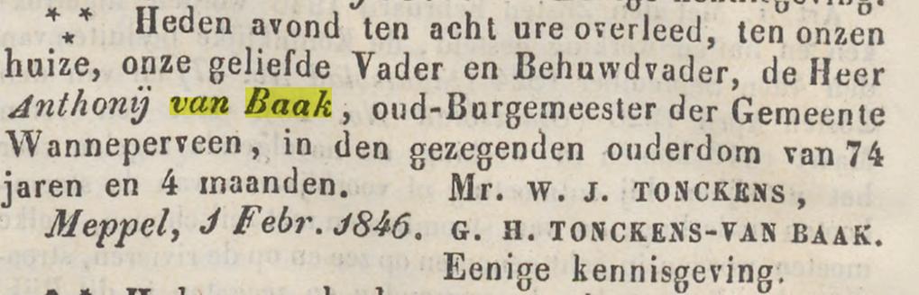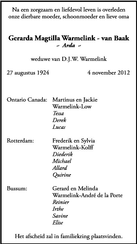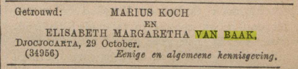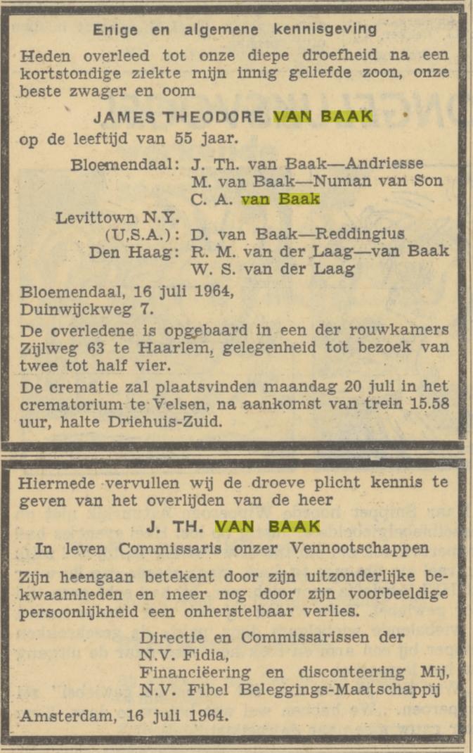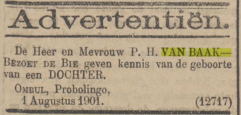 13. “overlijdensadvertentie Marius van Baak,” Haagsche Courant, ’s-Gravenhage, 17-9-1923, blad 3 pag 4, krant, familiearchief van Baak.