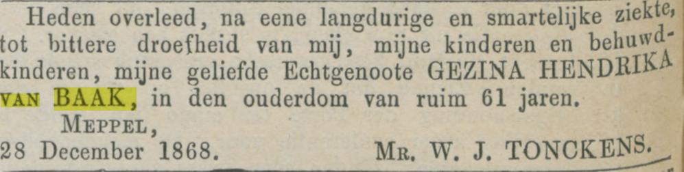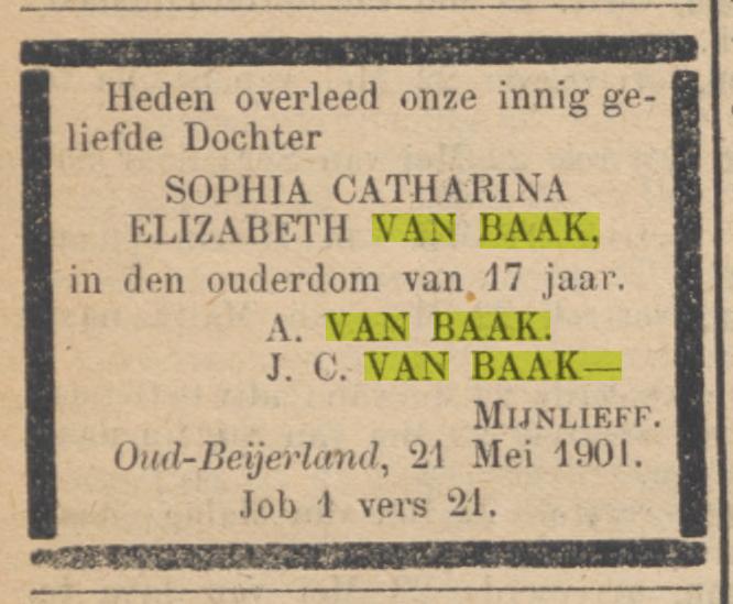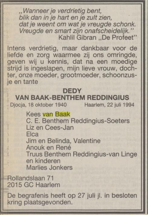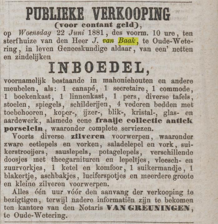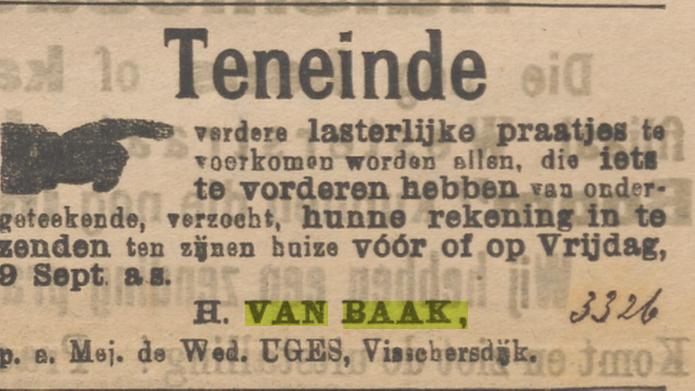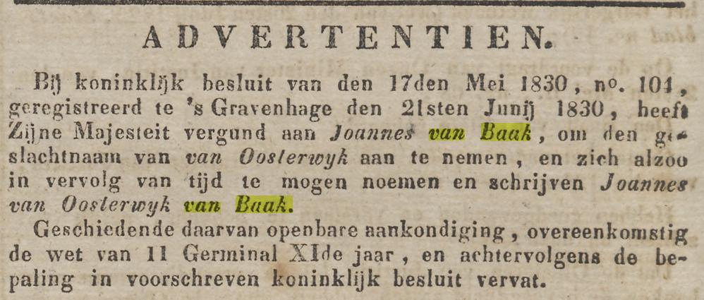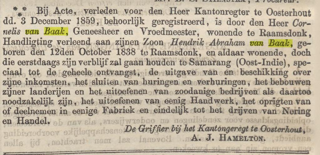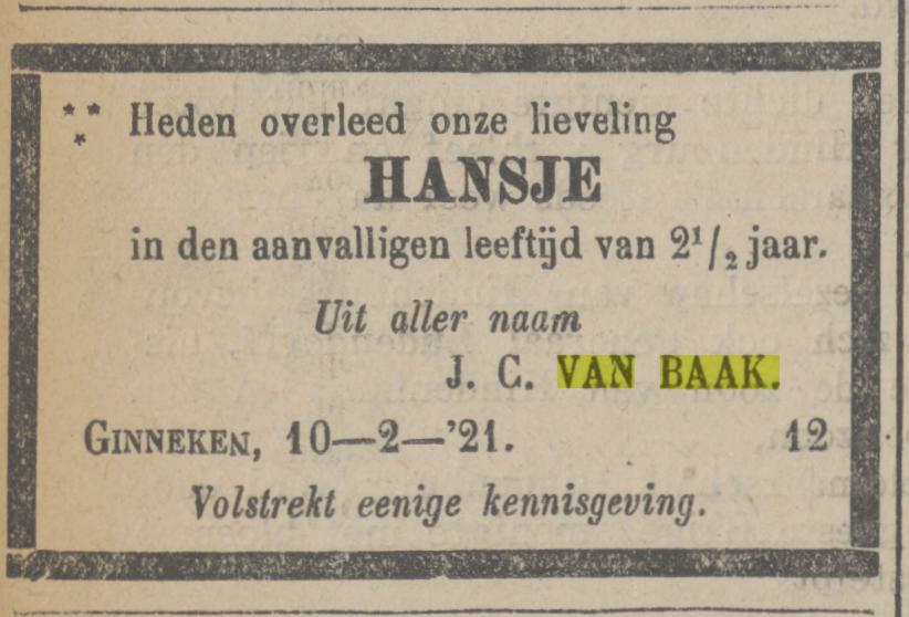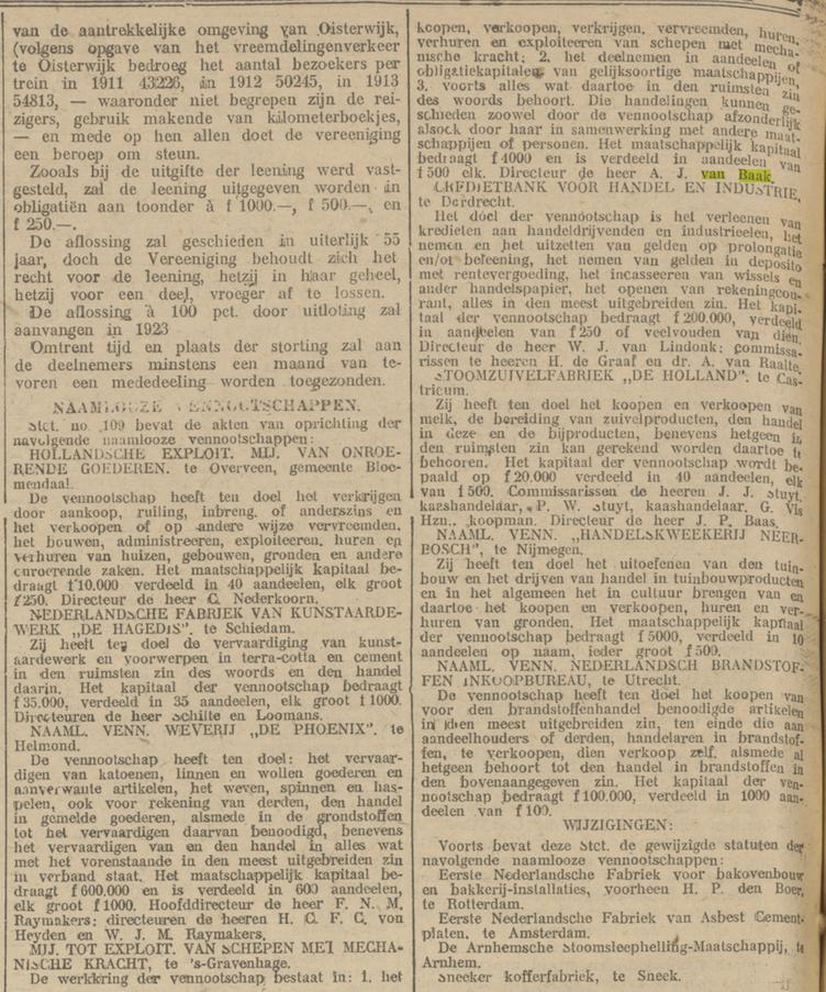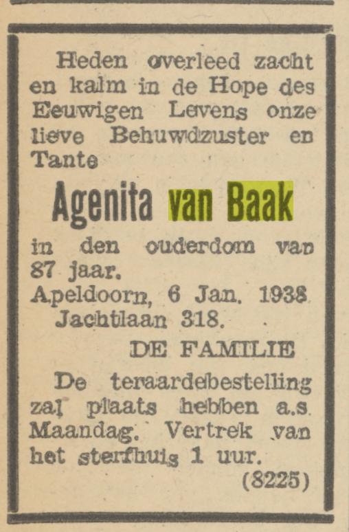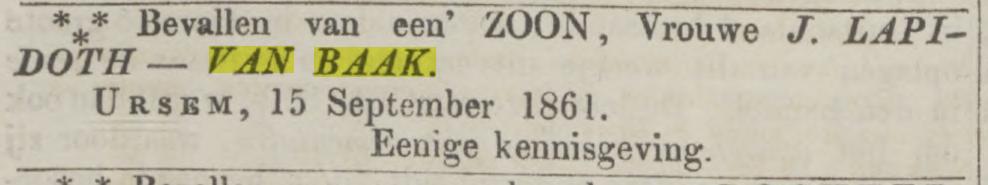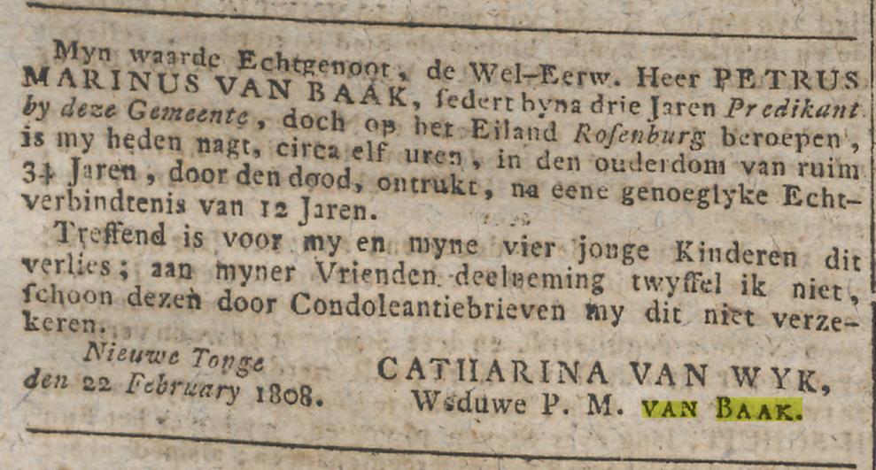 13. “overlijdensadvertentie Marius van Baak,” Haagsche Courant, ’s-Gravenhage, 17-9-1923, blad 3 pag 4, krant, familiearchief van Baak.