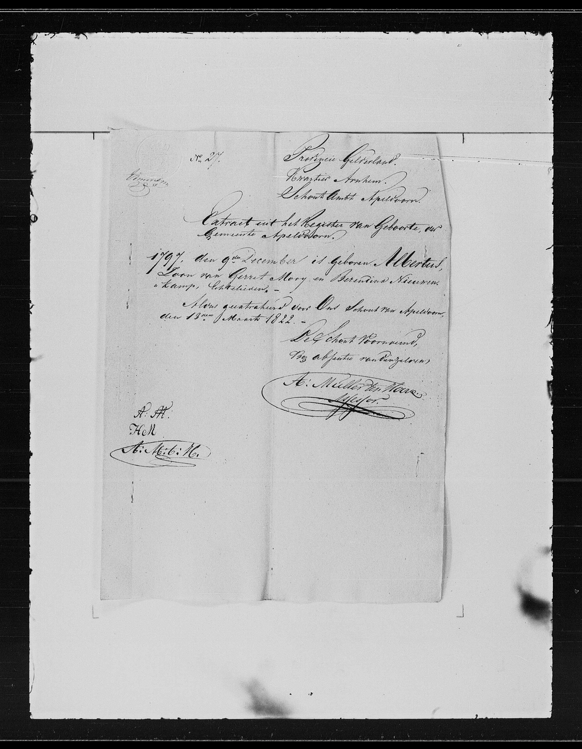 8153. “uittreksel BS geboorte Gradus Johannes Lamboo,” 23-7-1836, Deil, 5829.05, 32, scan, Gelders Archief.