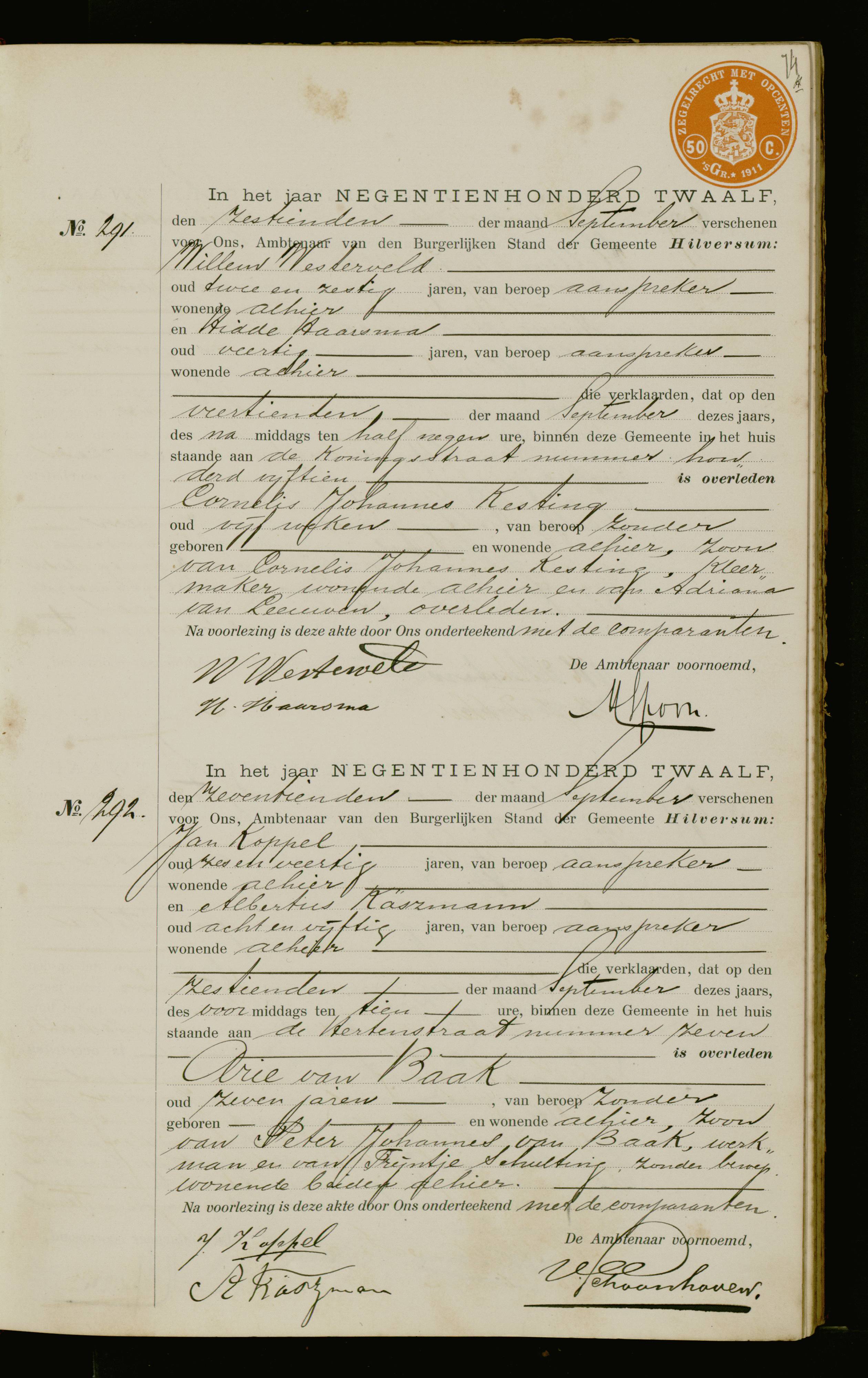 8150. “uittreksel BS overlijden Gerardus Lamboo,” 4-3-1922, Barwoutswaarder, 696-10, 7, scan, Utrechts Archief.