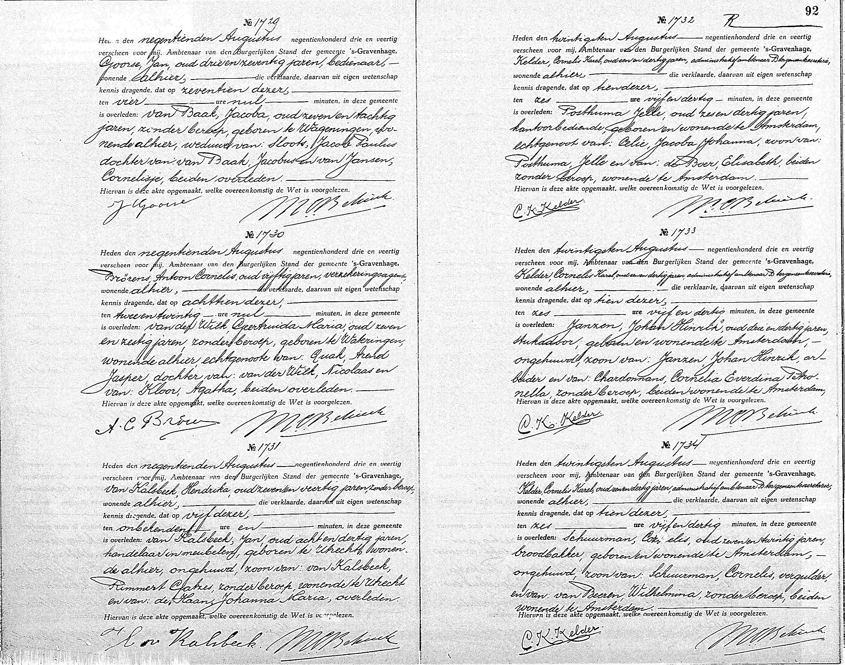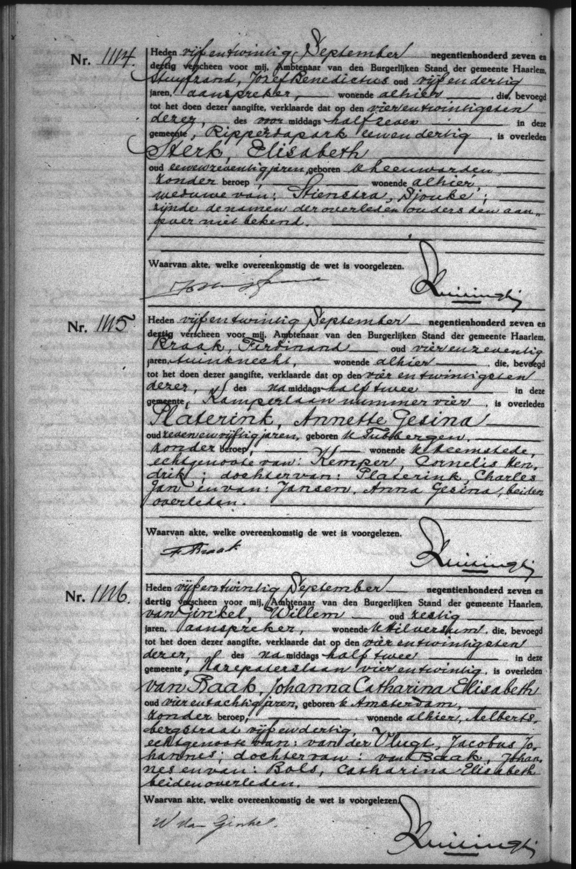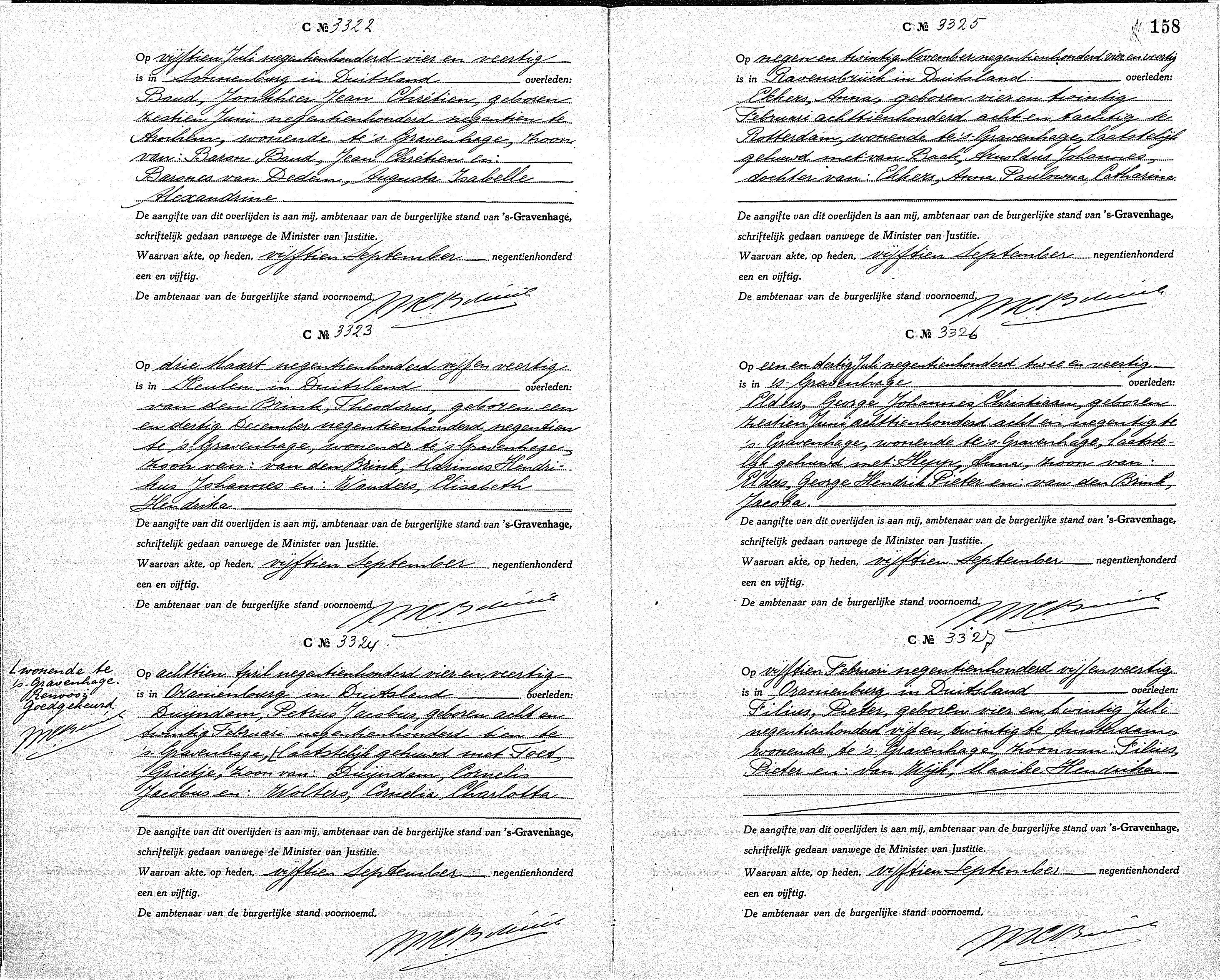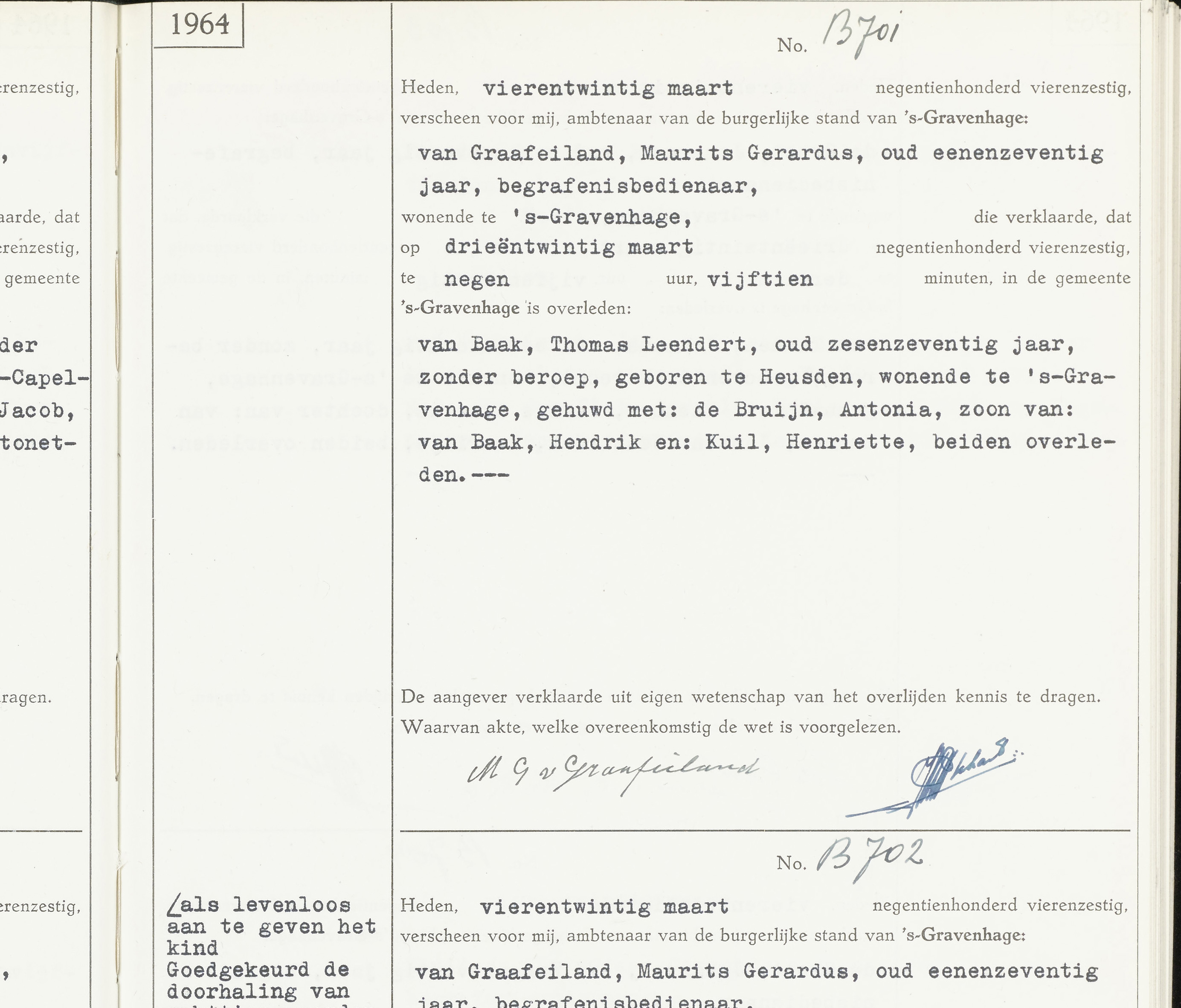 11. “uittreksel BS overlijden Marius van Baak,” 19-9-1923, ’s-Gravenhage, 1527, 2717, scan, Haags Gemeentearchief.