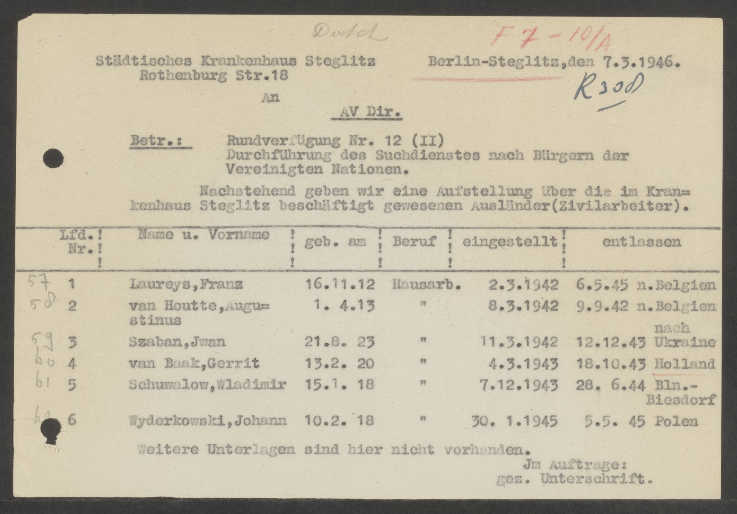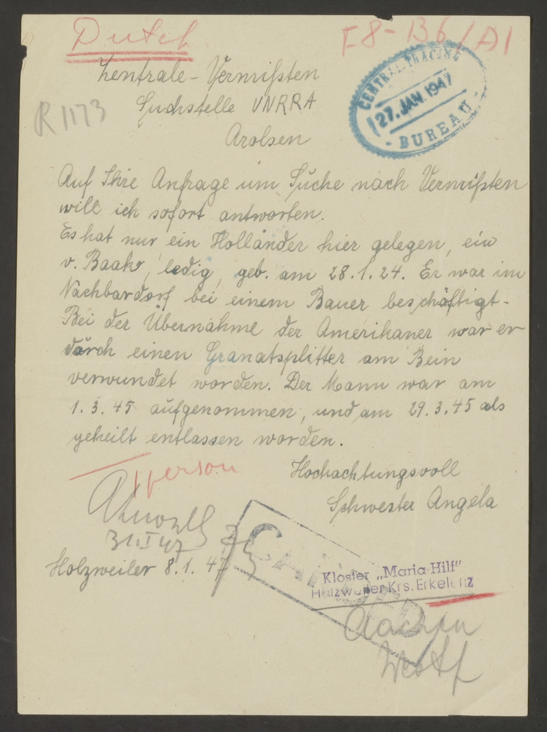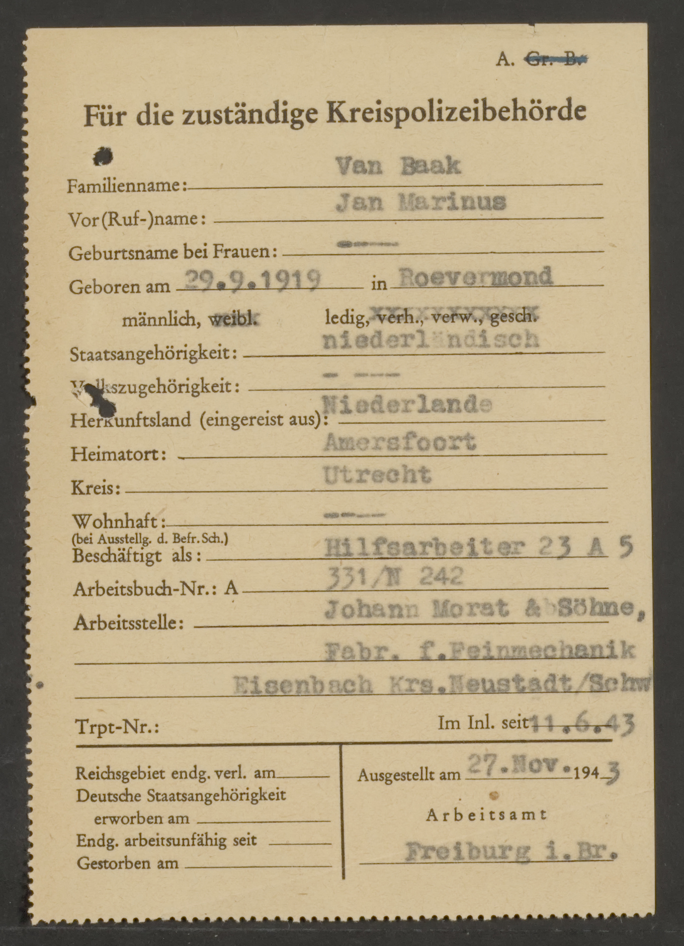 26. “uittreksel register Rode Kruis Arbeitseinsatz - Cornelius van Veenendaal,” 1945, 2.19.323, 439, scan, Nationaal Archief.