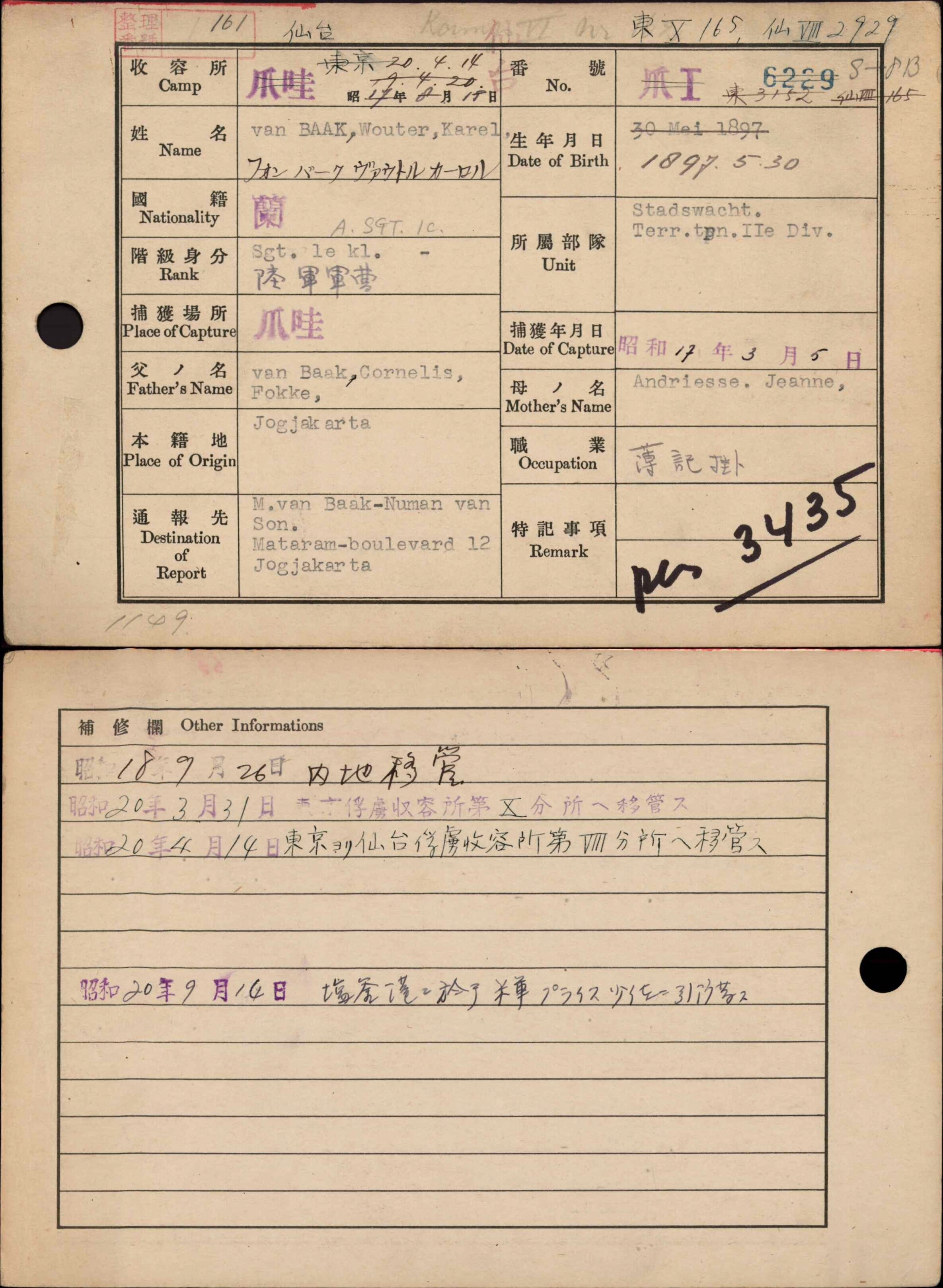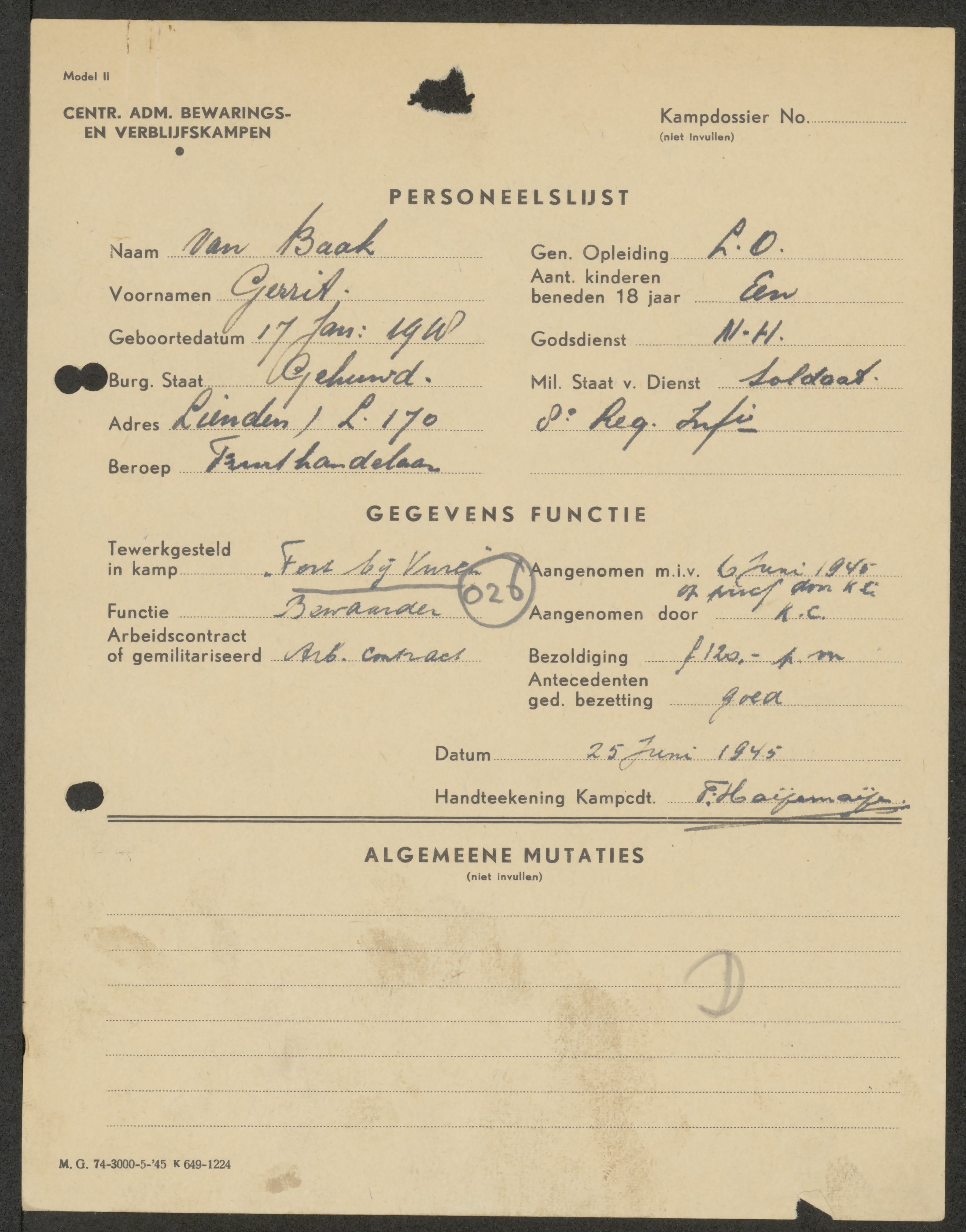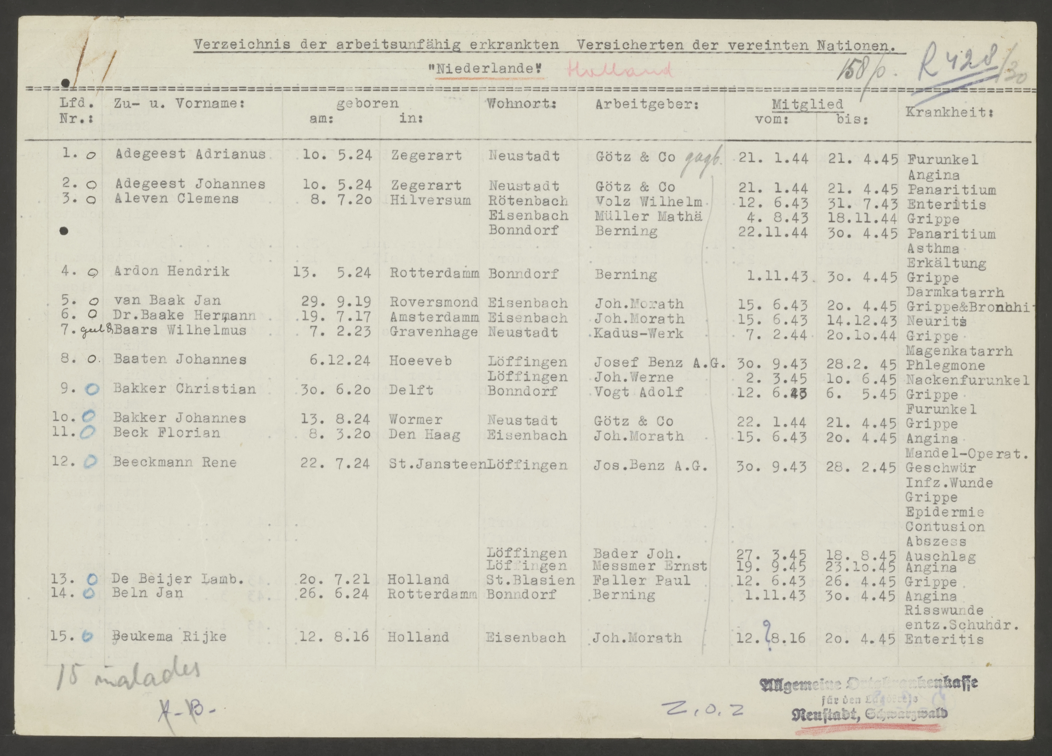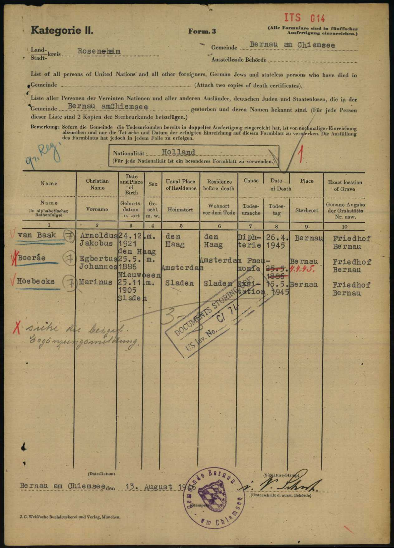 26. “uittreksel register Rode Kruis Arbeitseinsatz - Cornelius van Veenendaal,” 1945, 2.19.323, 439, scan, Nationaal Archief.