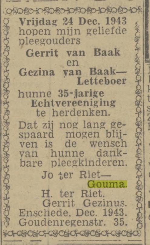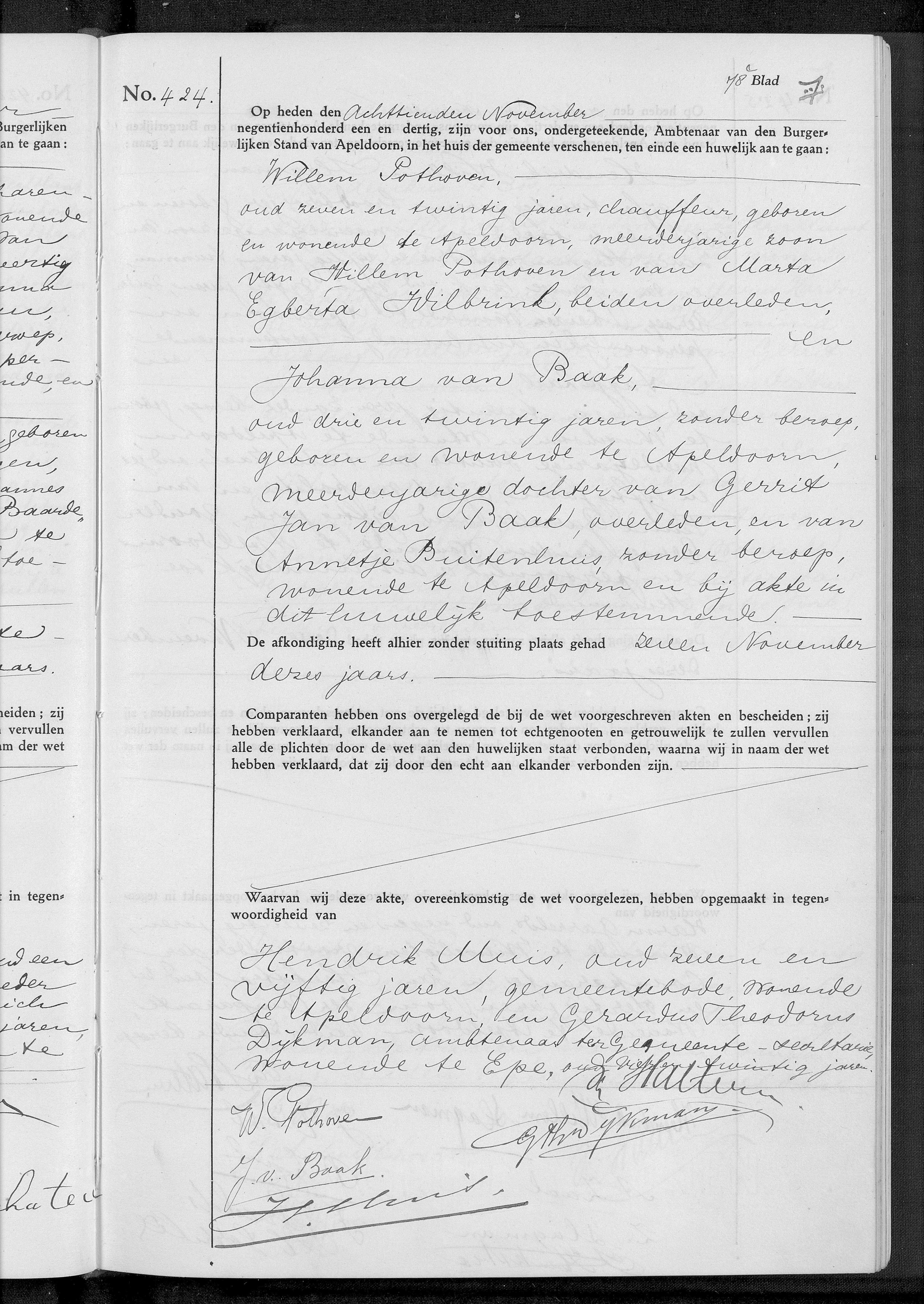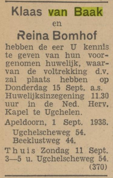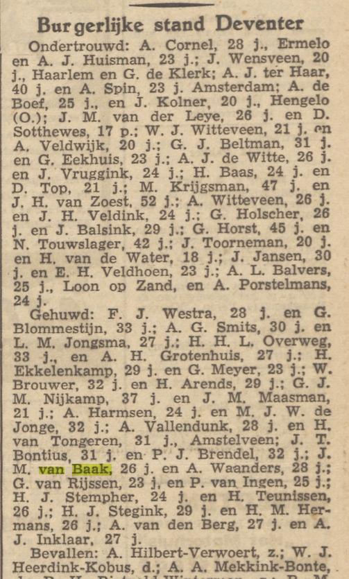 21. “ondertrouwkaart van Baak - Langboom,” 19-4-1916, familiearchief van Baak.