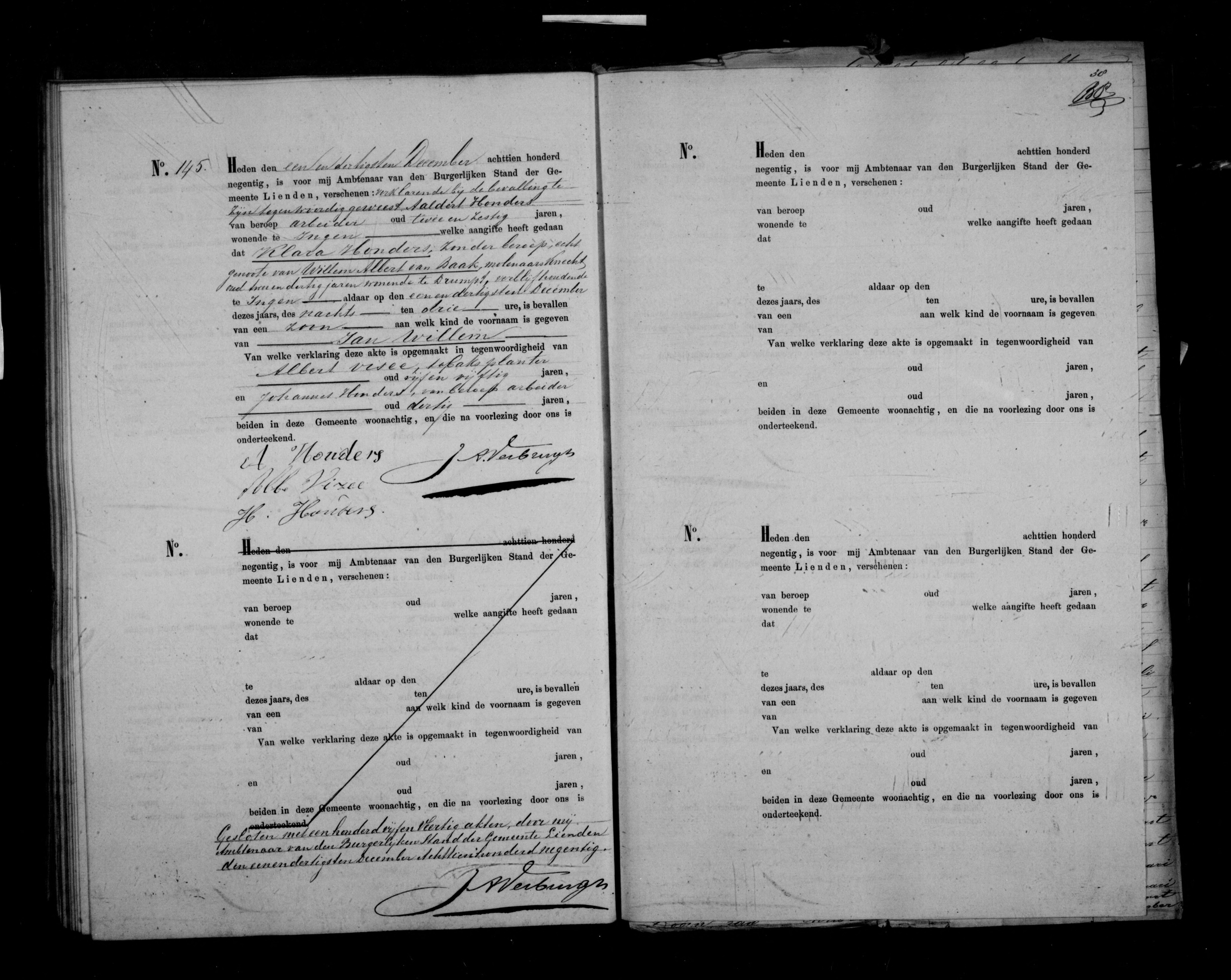 8149. “uittreskel BS geboorte Gerardus Lamboo,” 14-1-1845, Vleuten, 739-17, 1, scan, Utrechts Archief.