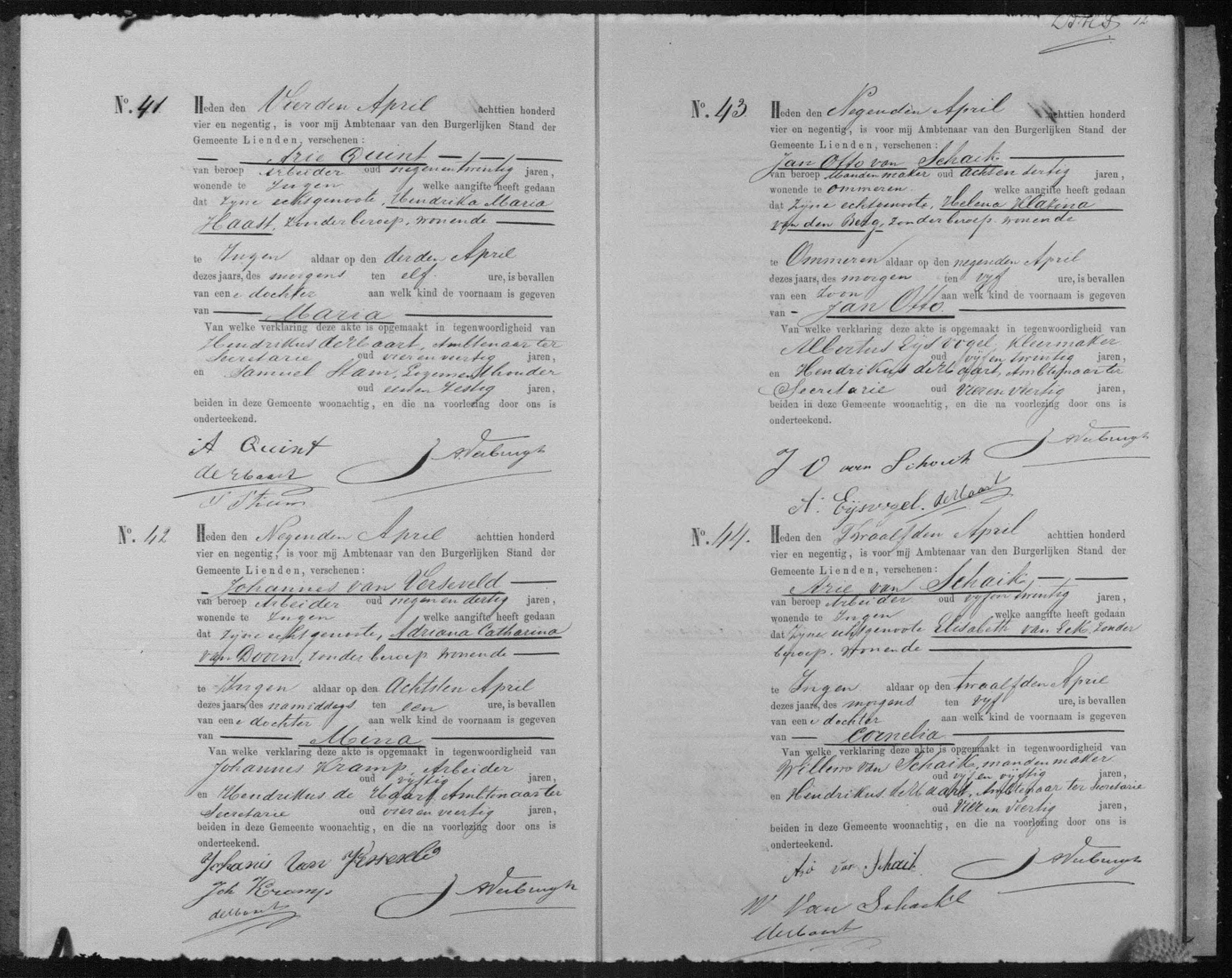 15. “uittreksel BS geboorte Frederika Langboom,” 4-4-1895, Lienden, 3789, 42, scan, Gelders Archief Arnhem.