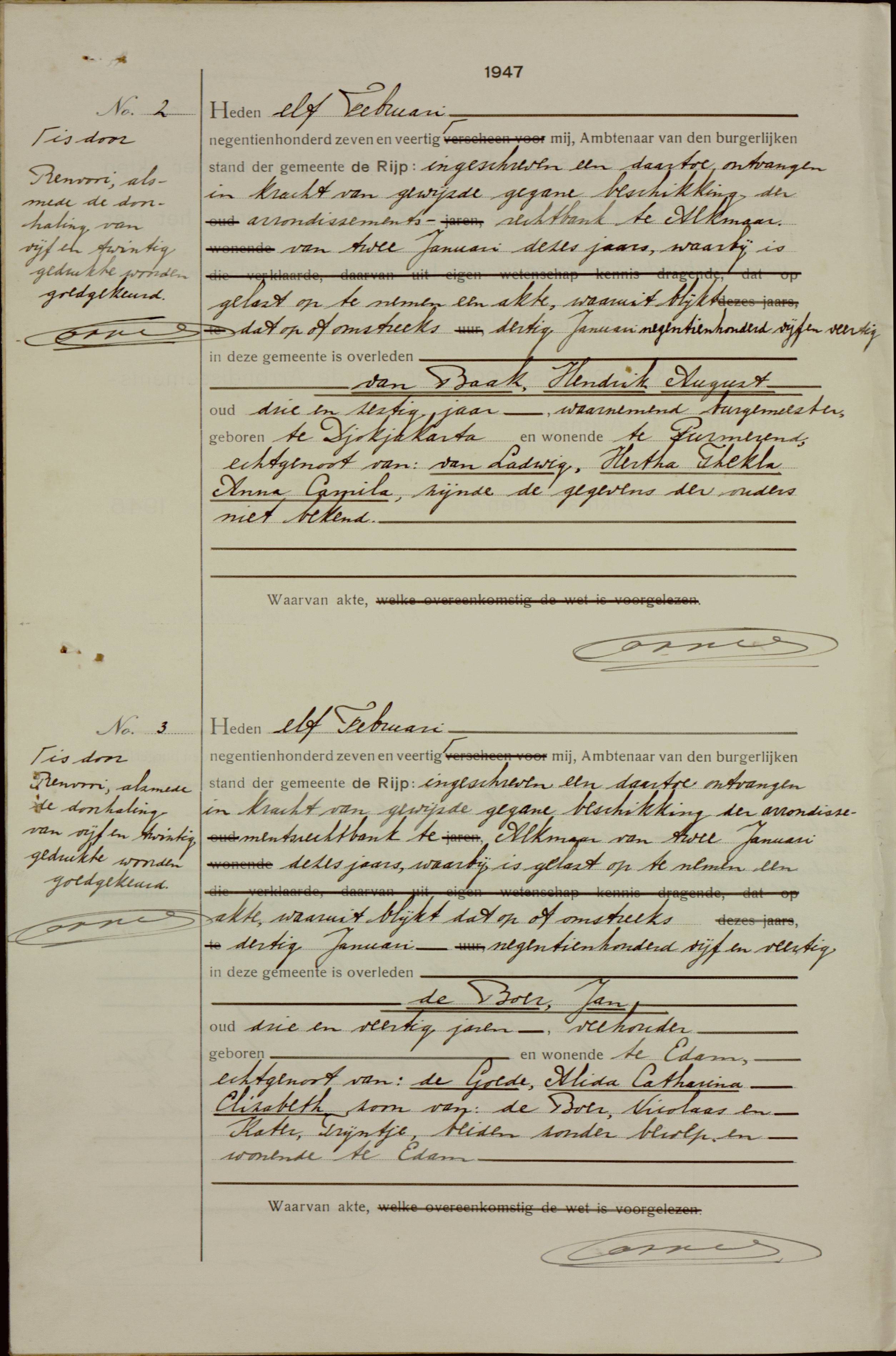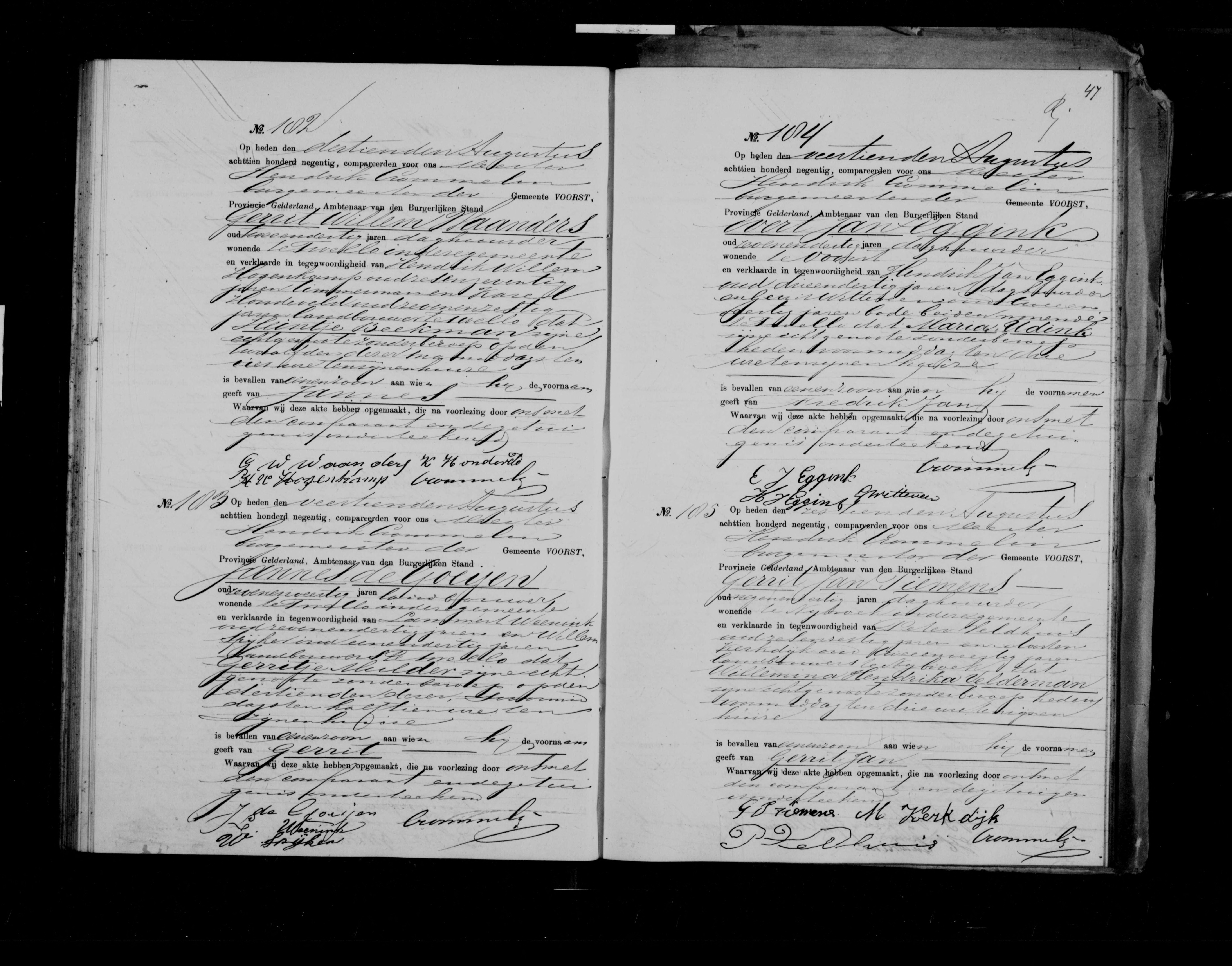 47. “uitreksel BS Cor en Johanna,” 23-10-1887, huwelijksregister, Mijdrecht.