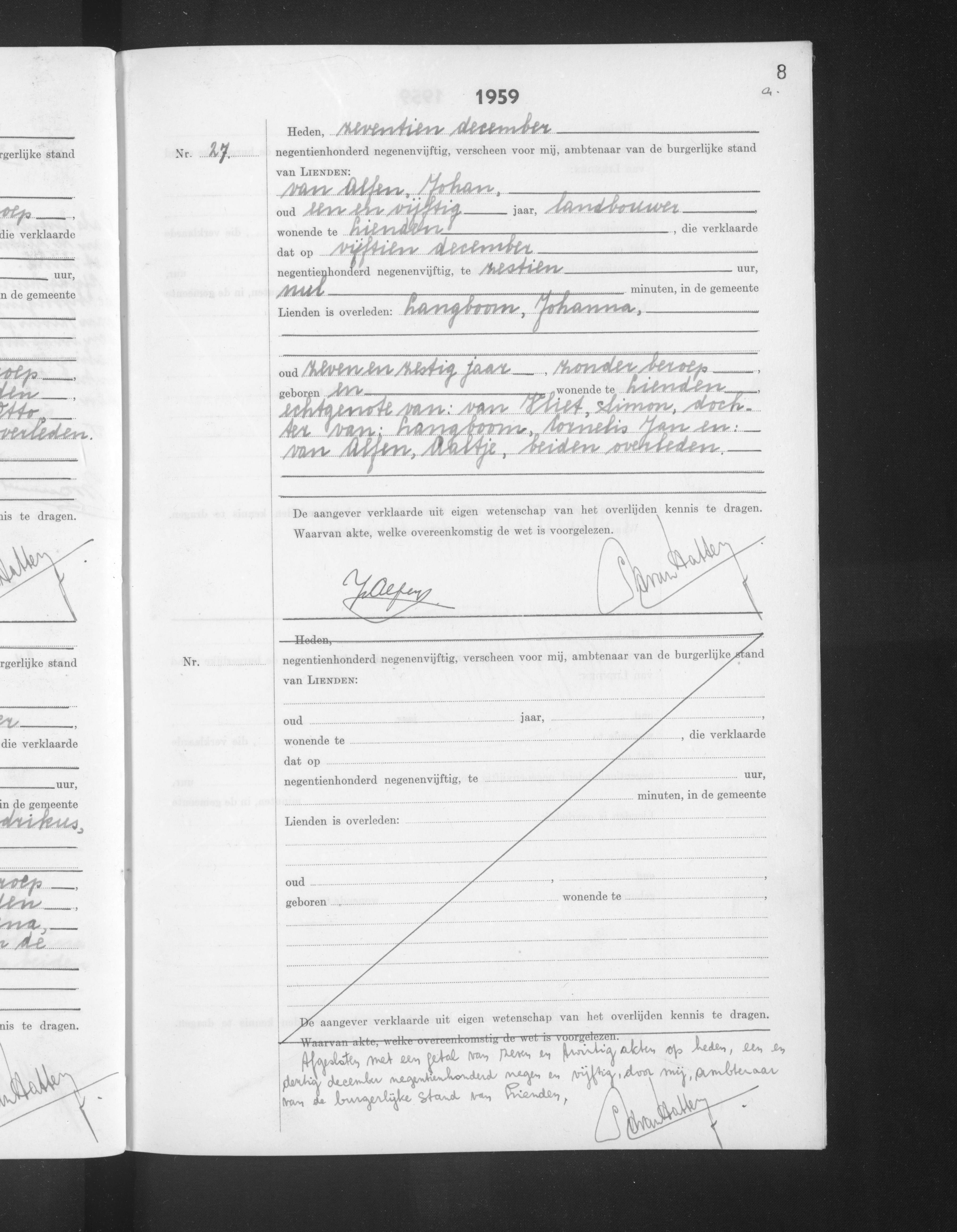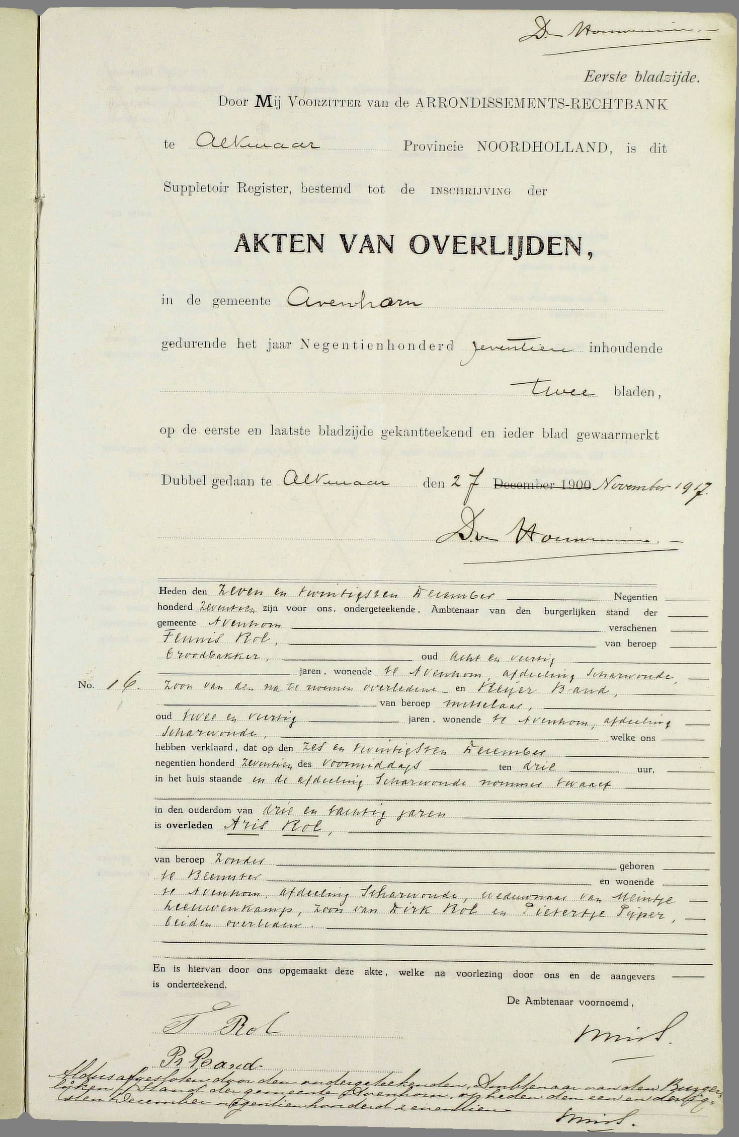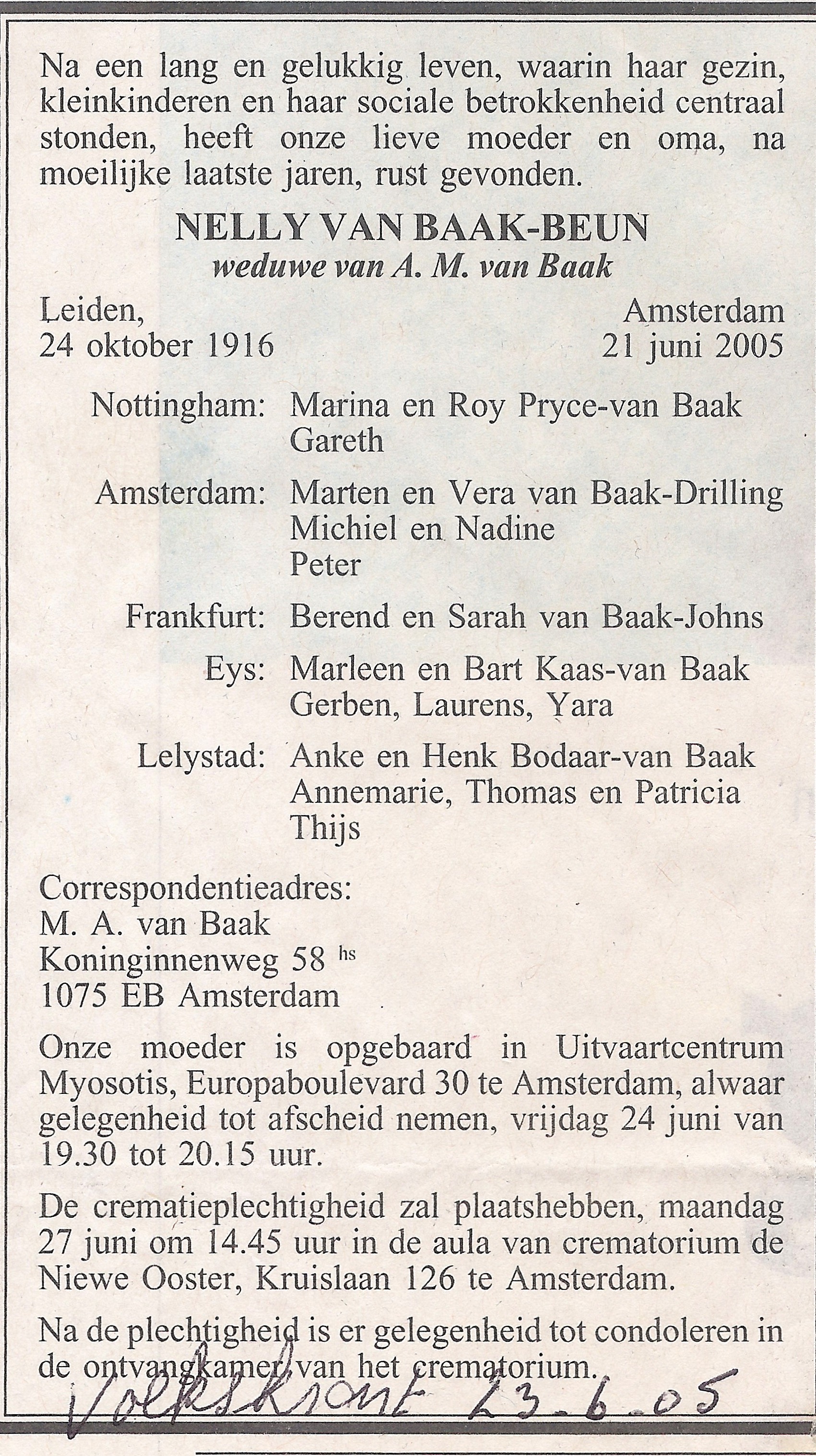 8. “uittreksel BS overlijden MJ Nierop,” 2-5-1989, ’s-Gravenhage, 2AA0790, origineel uittreksel BS, familie archief van Baak.