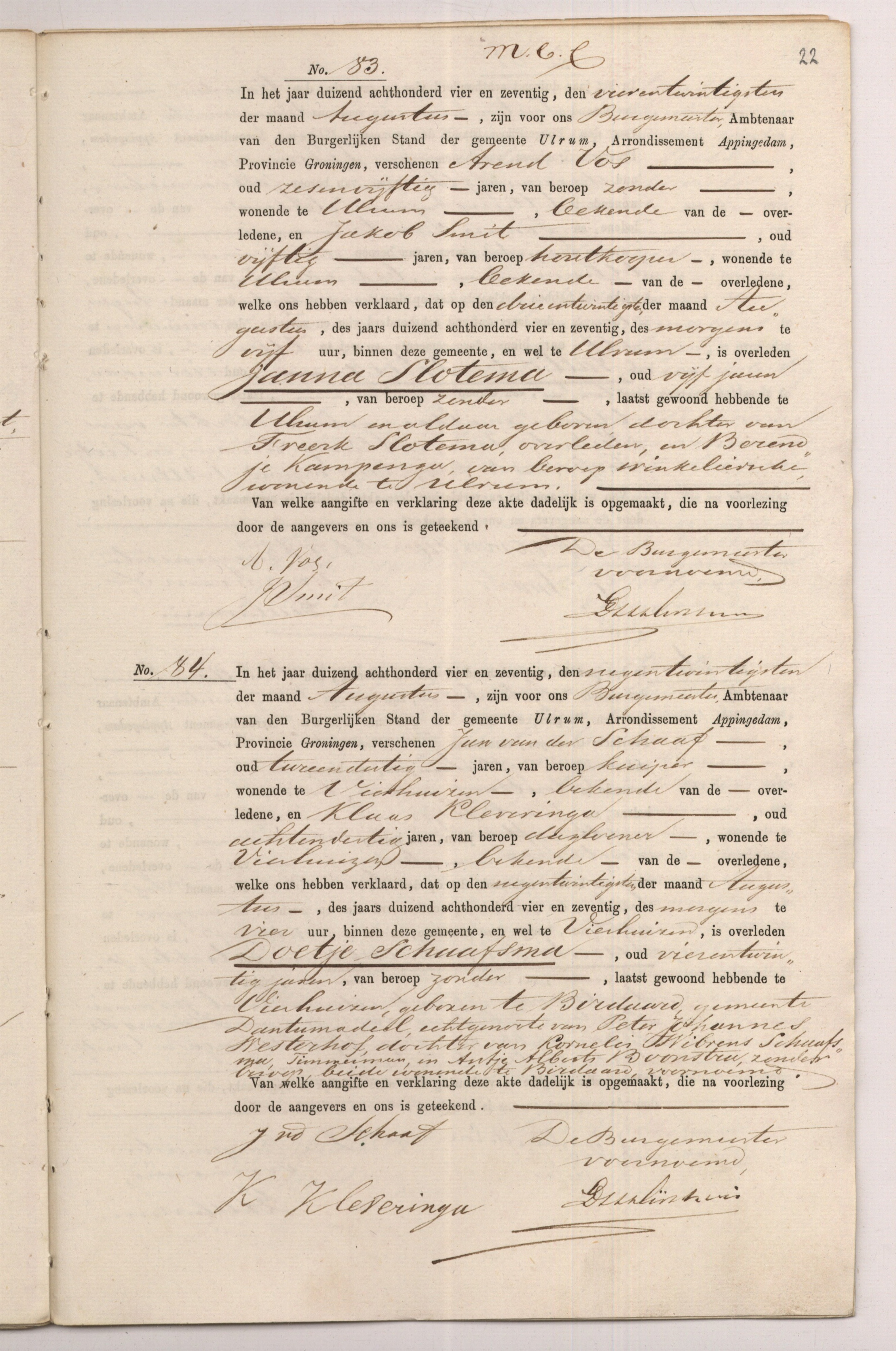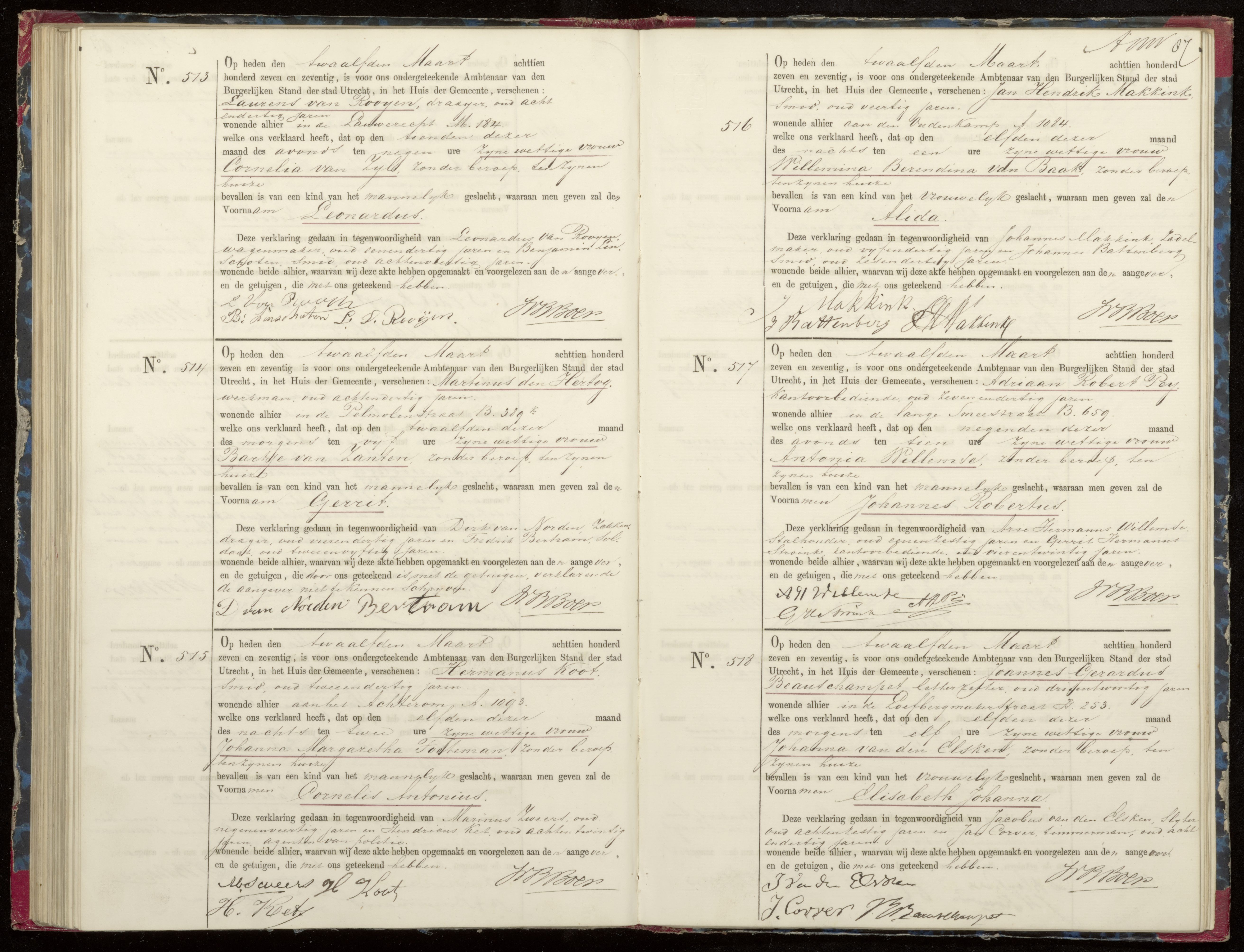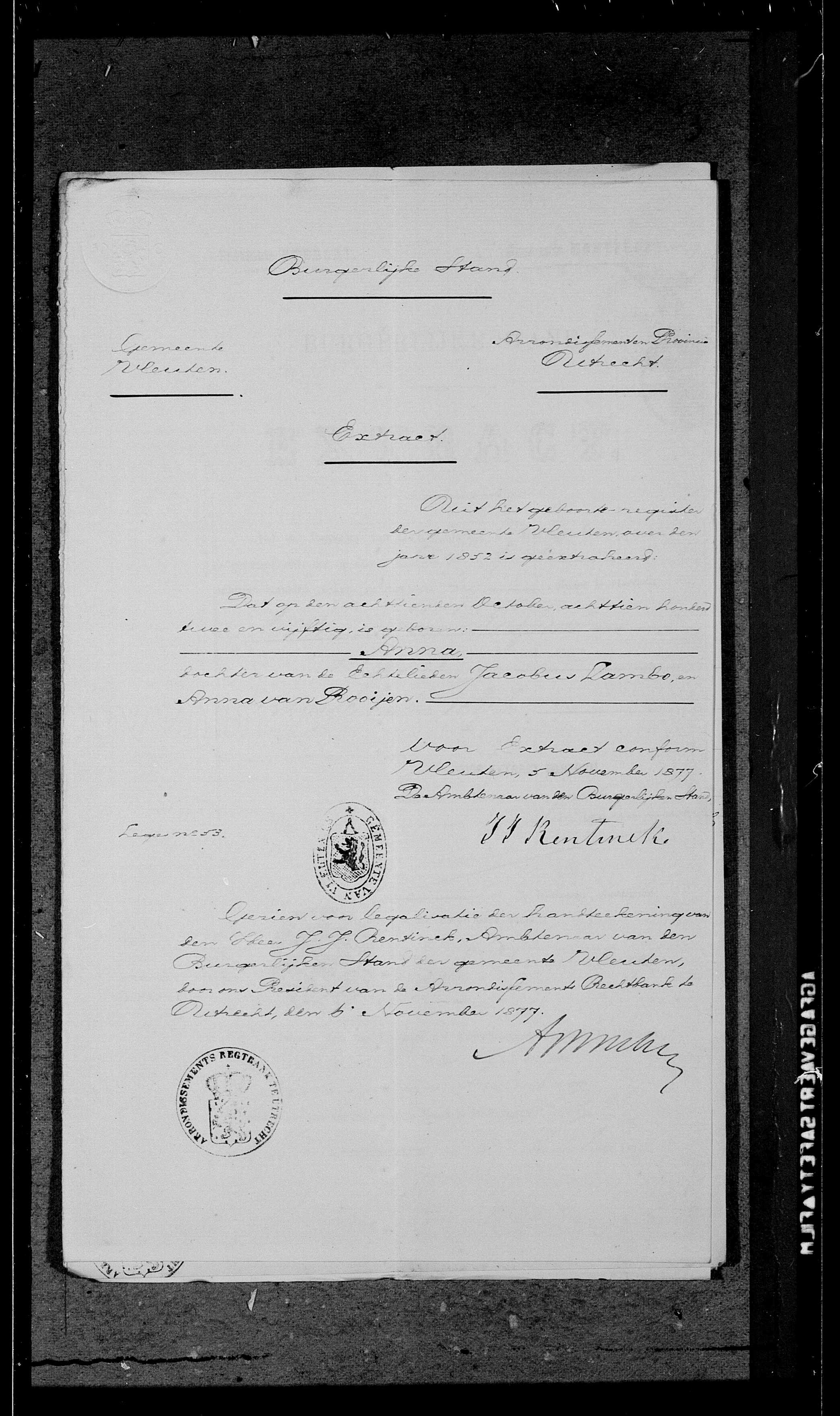 8151. “uittreksel BS huwelijk Lamboo - van Wijk,” 20-11-1873, Rietveld, 1269-27, 2, scan, Utrechts Archief.