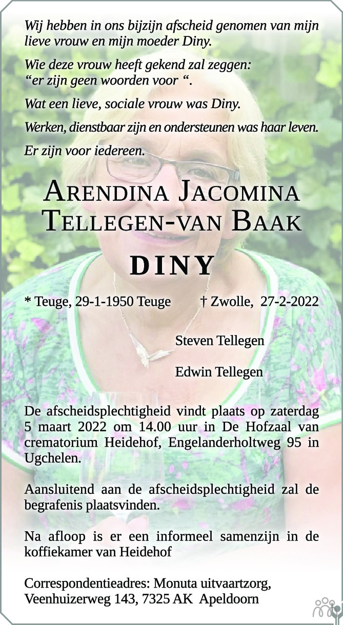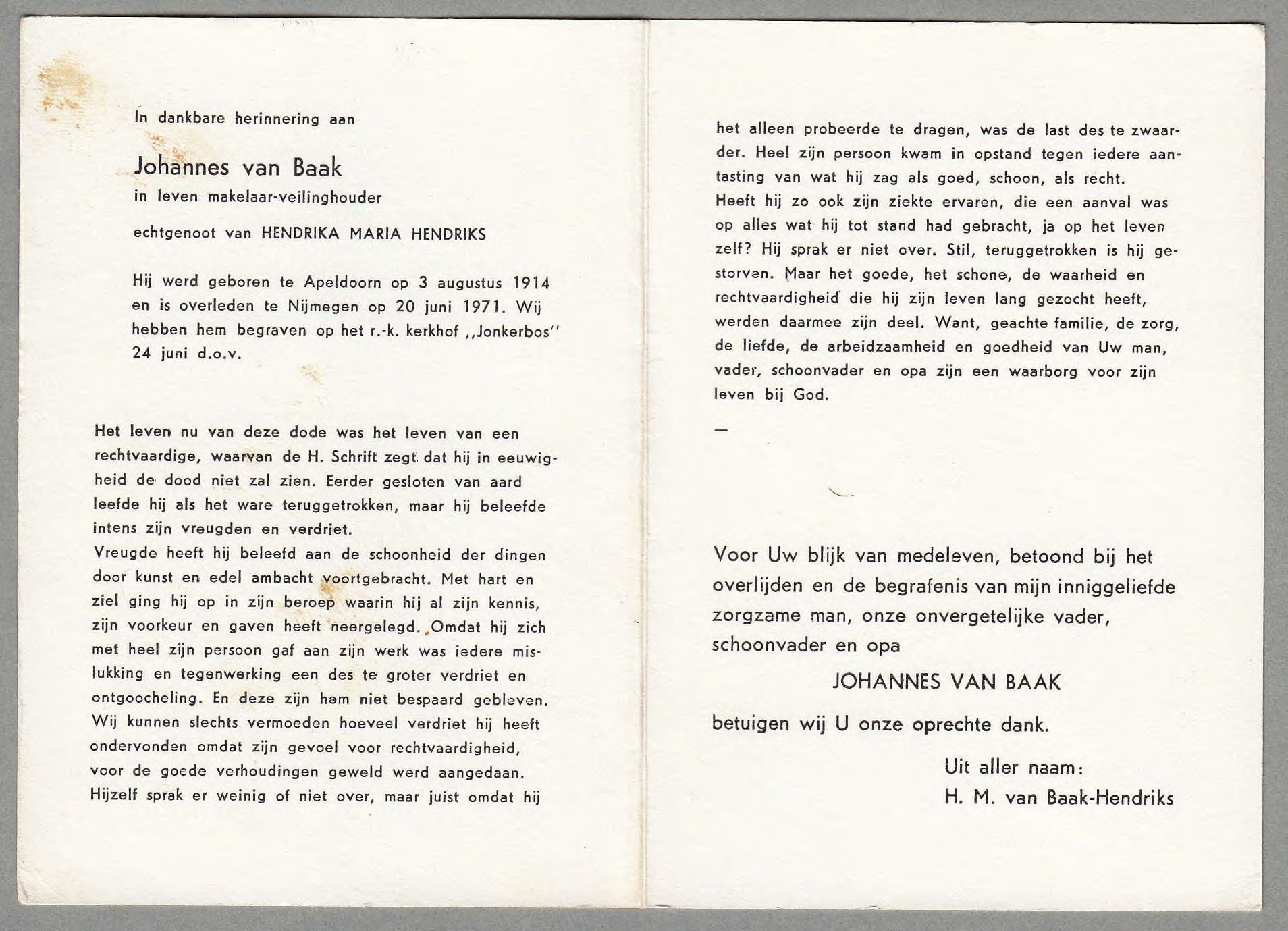 24. “rouwkaart Jannie van Baak,” 9-1-1982, ’s Gravenhage.