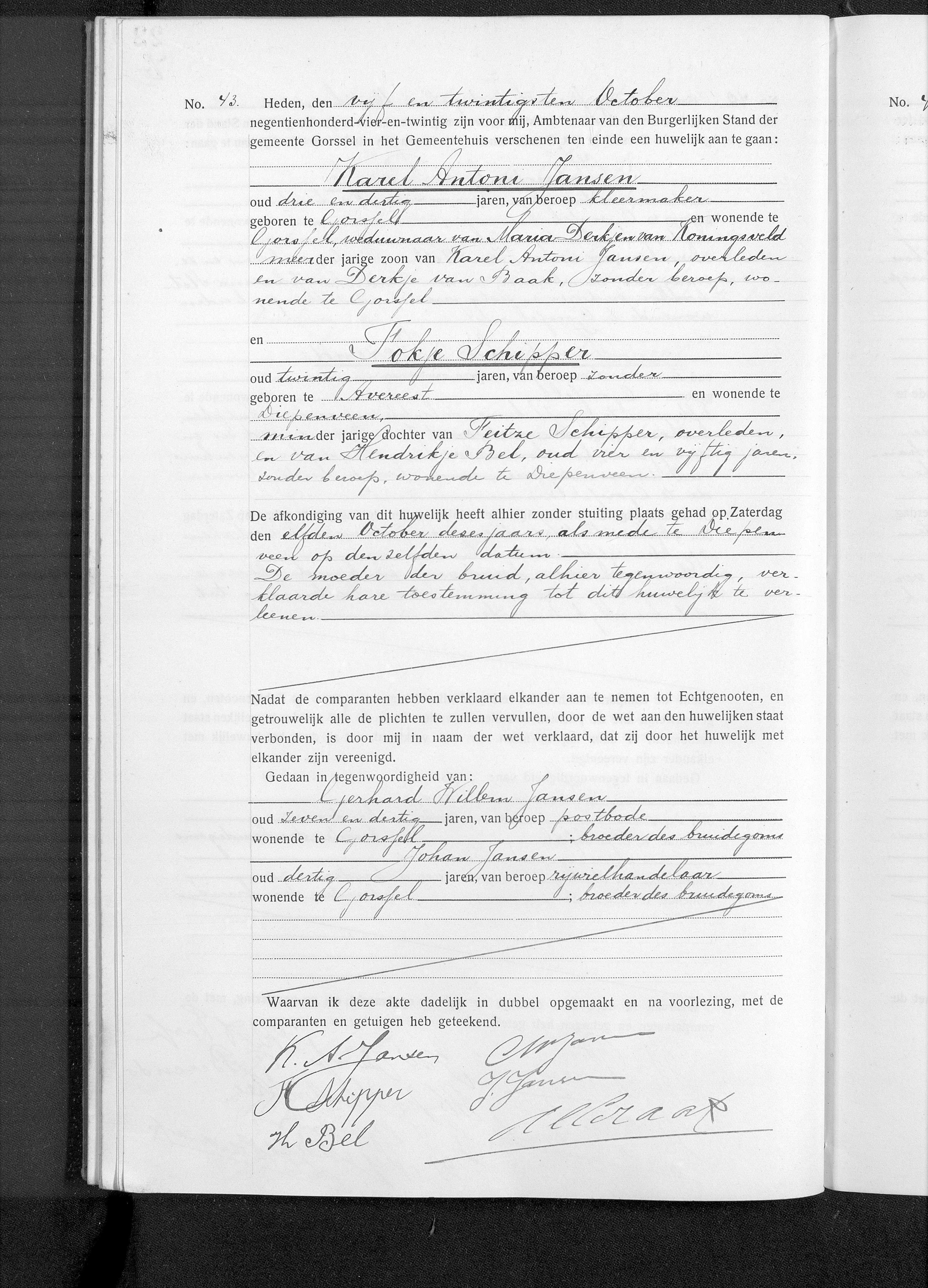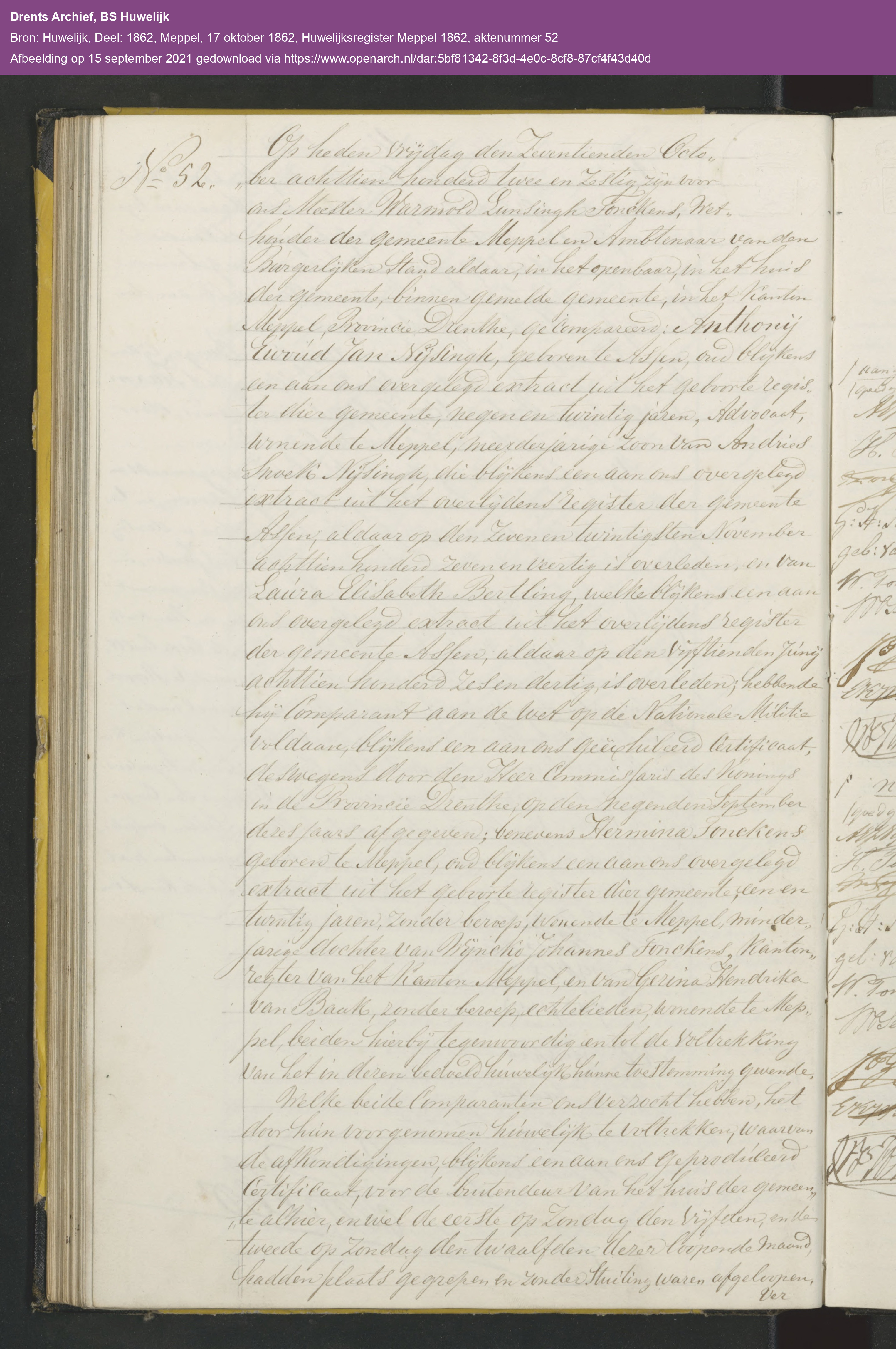48. “uittreksel BS huwelijk Snel - van Nieuwenburg,” 23-10-1887, Mijdrecht, 903-19, 24, scan, Het Utrechts Archief.