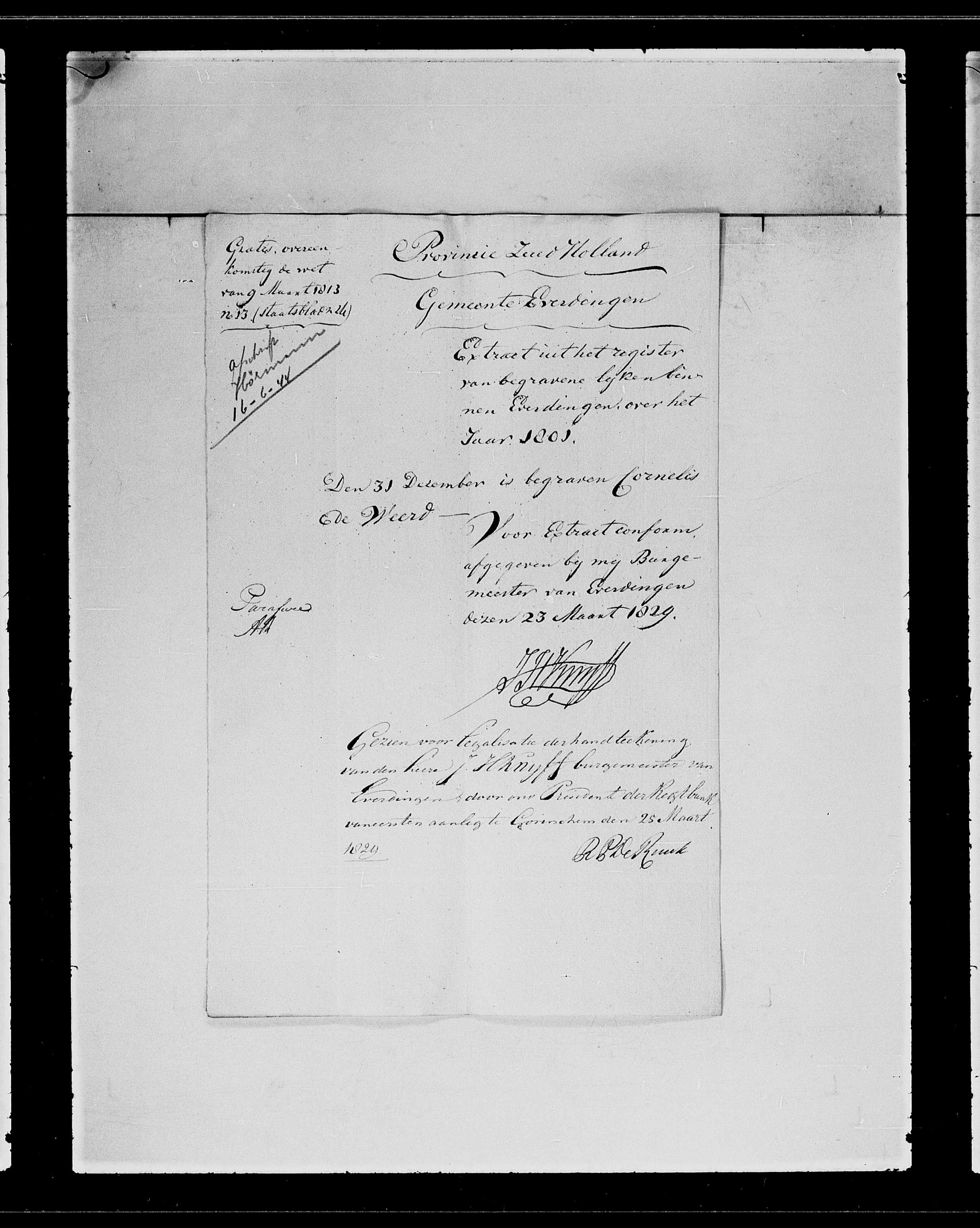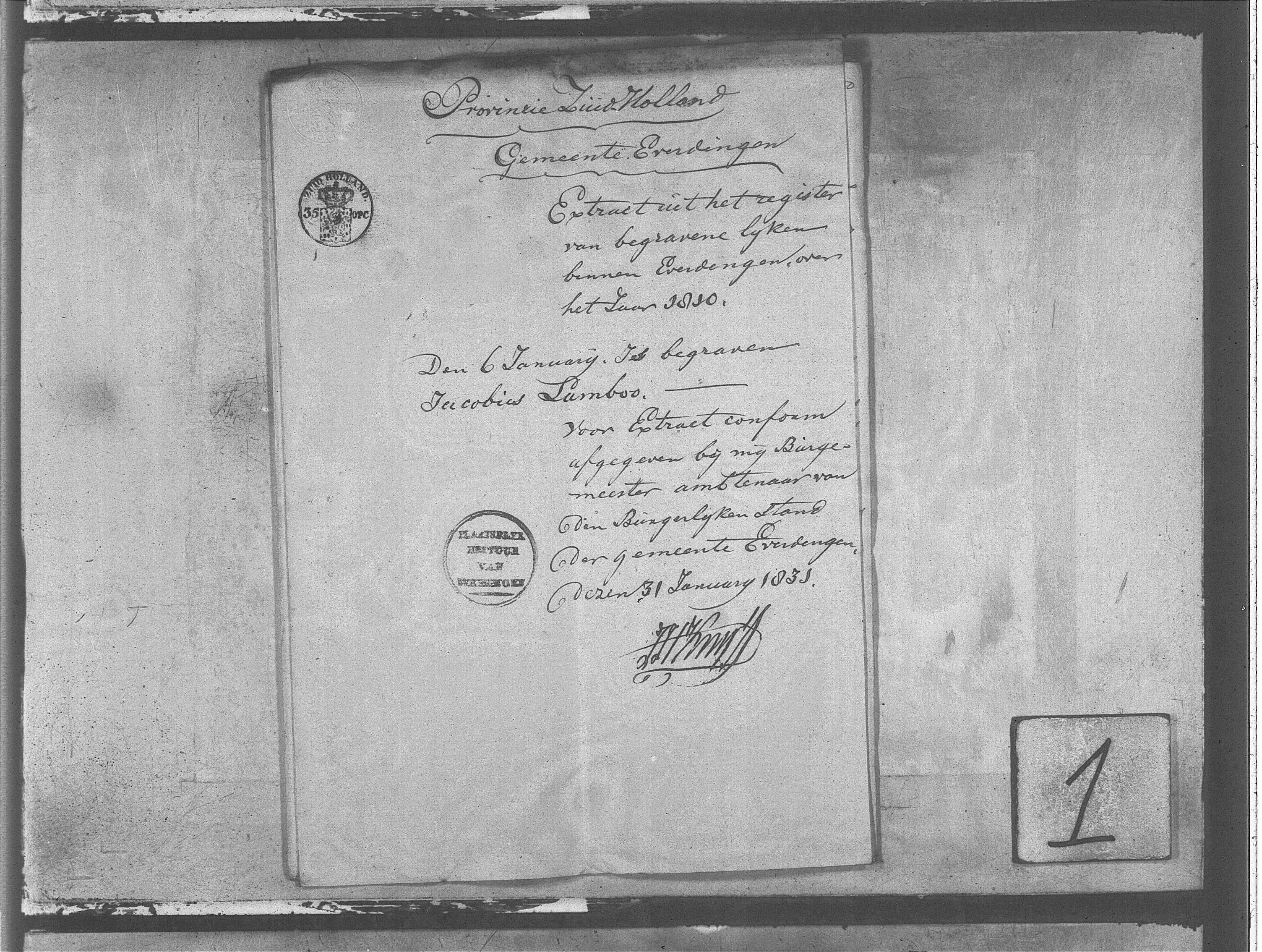 8179. “uittreksel BS overlijden Nicolaas Lamboo,” 8-9-1831, Warmond, 742, 18, scan, Erfgoed Leiden e.o.