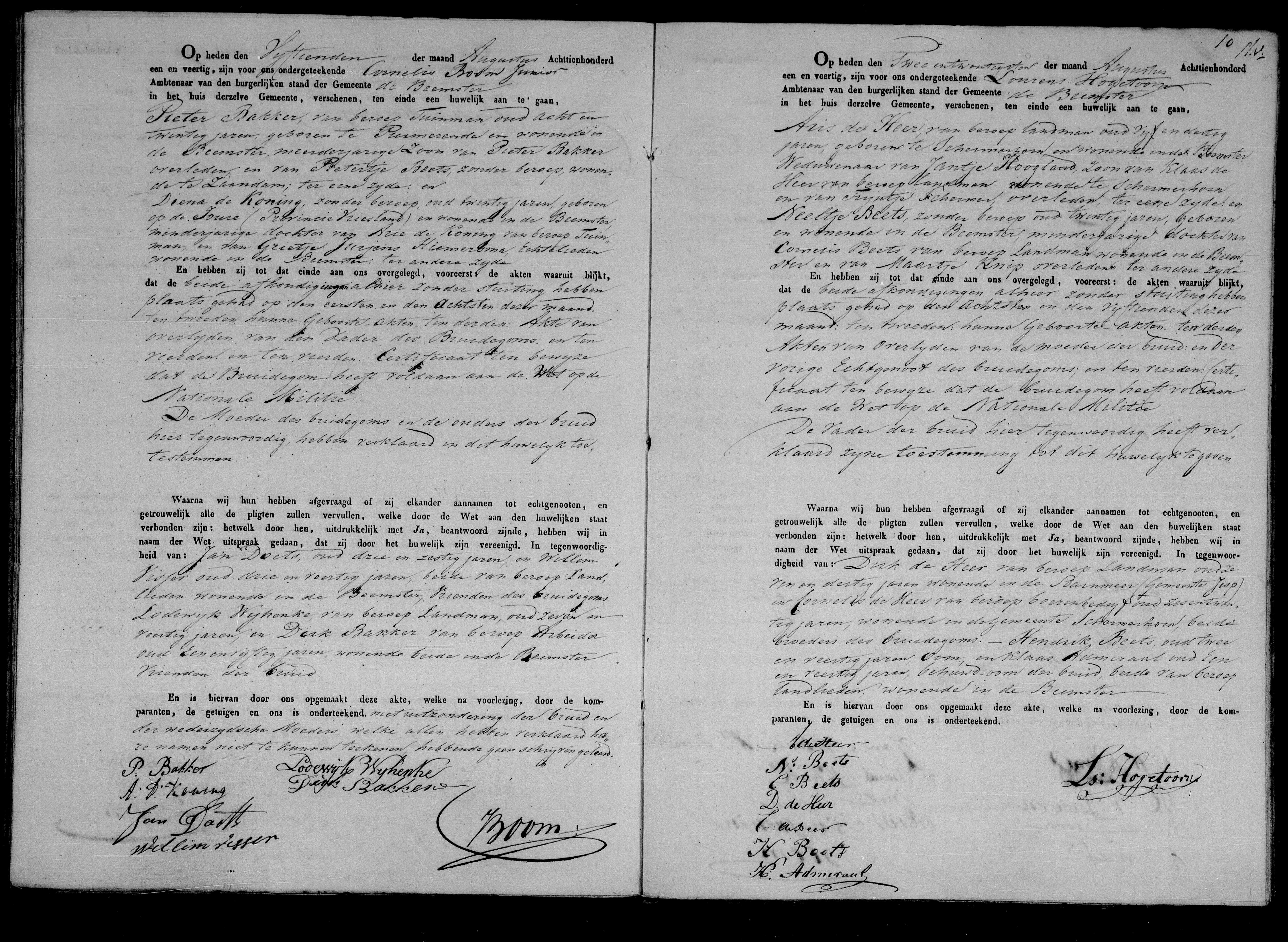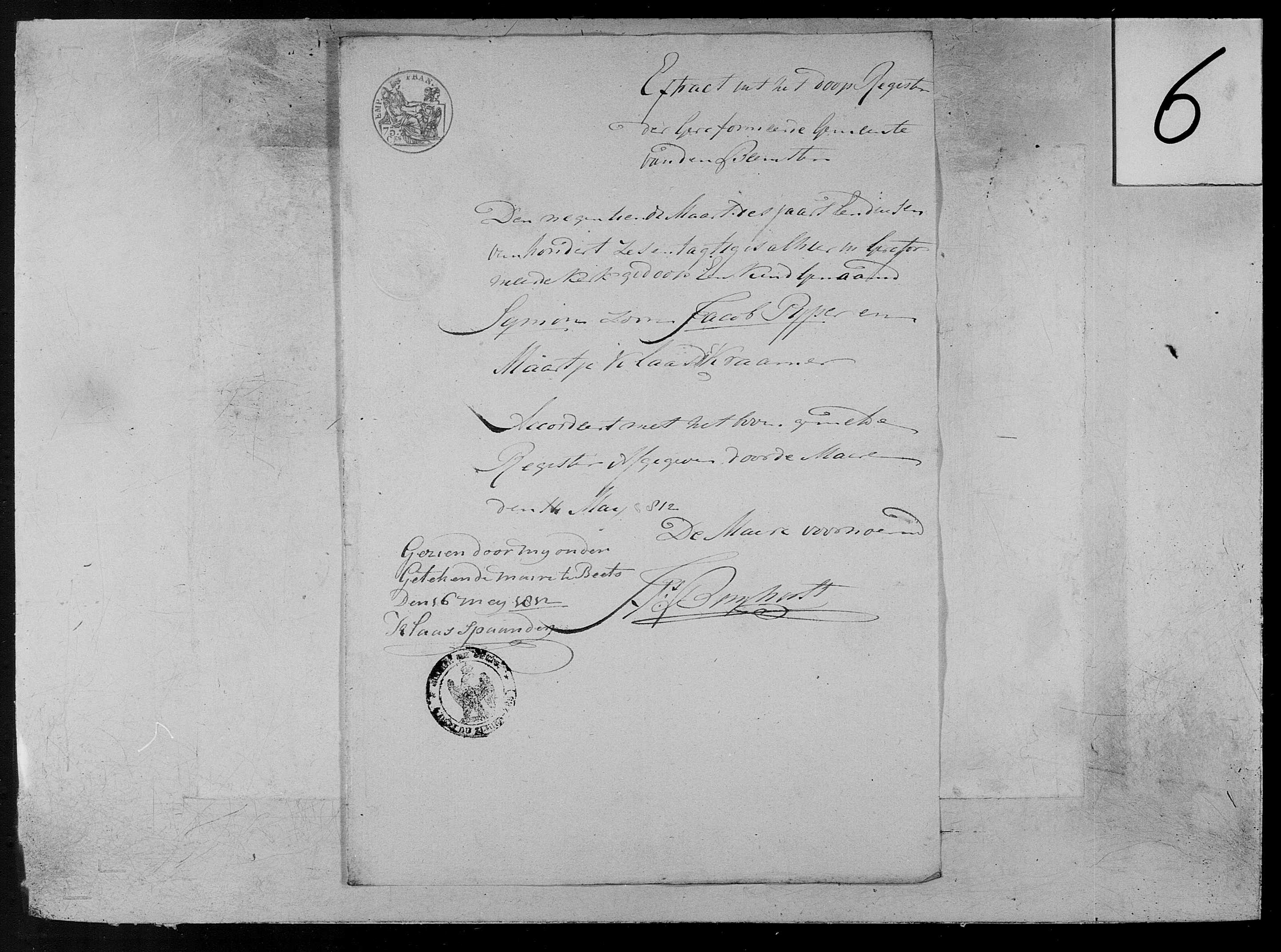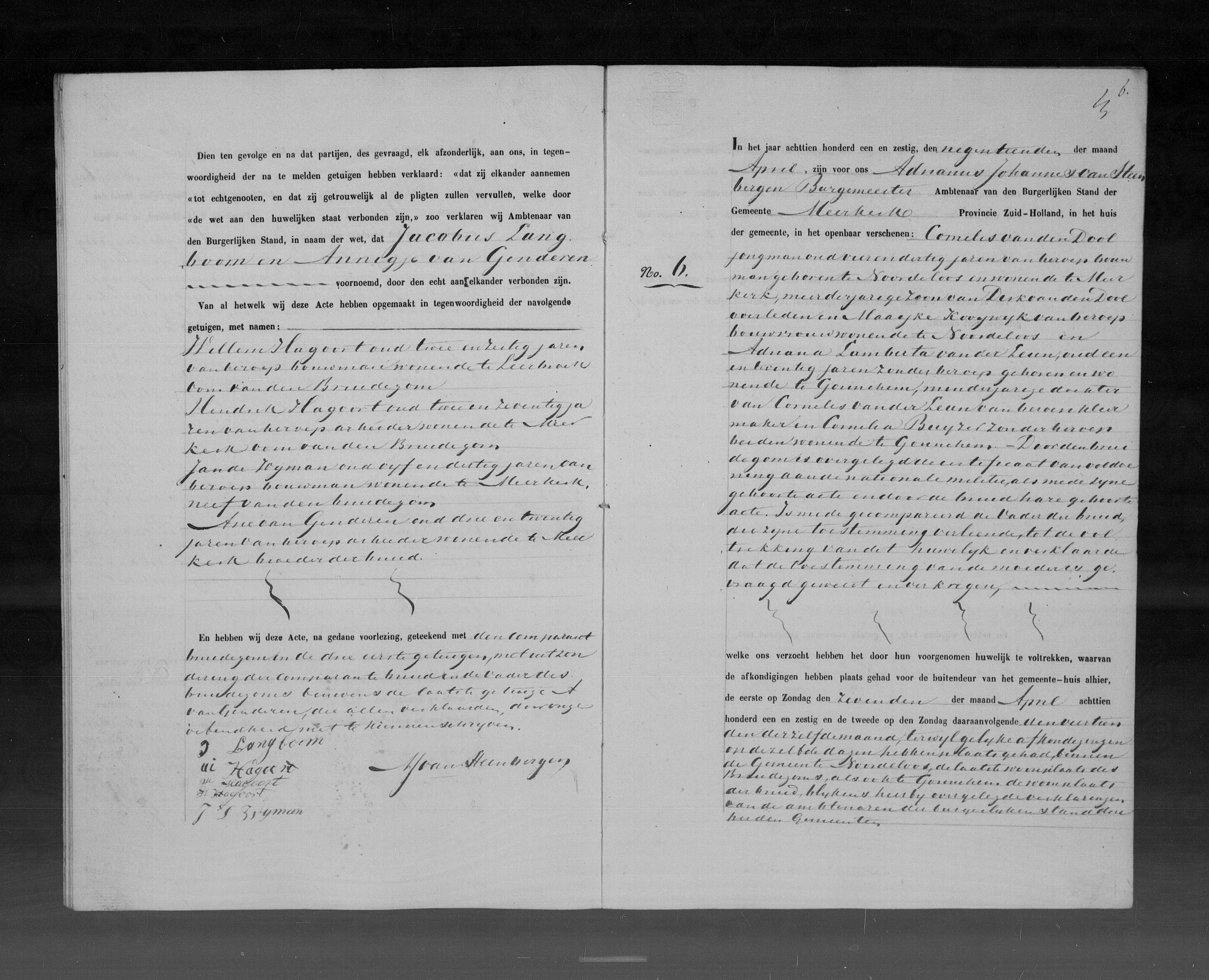 8174. “uittreksel BS huwelijk Lamboo - Nuttenbogaard,” 5-10-1816, Voorschoten, 6, scan, Rijksarchief Zuid-Holland.