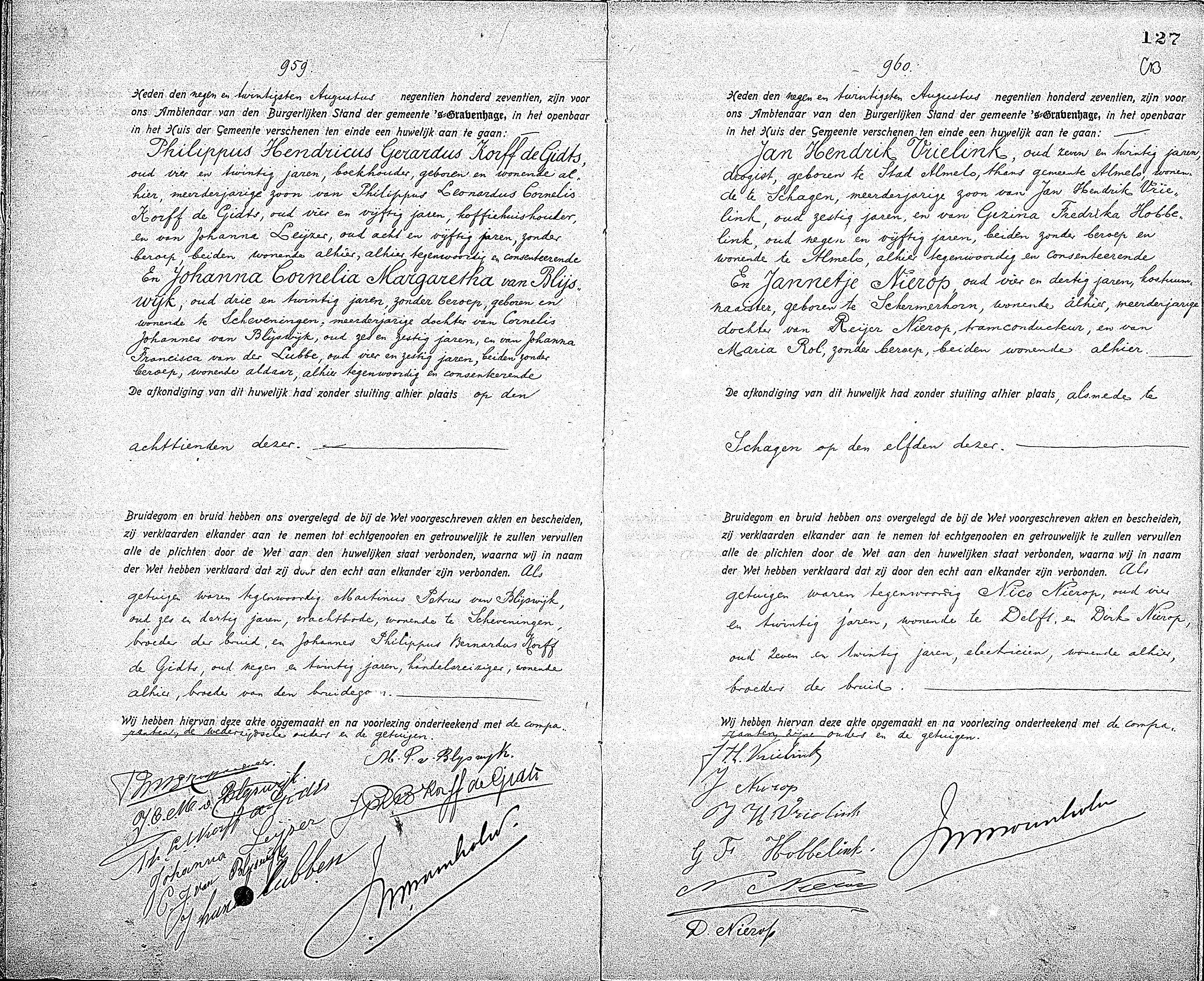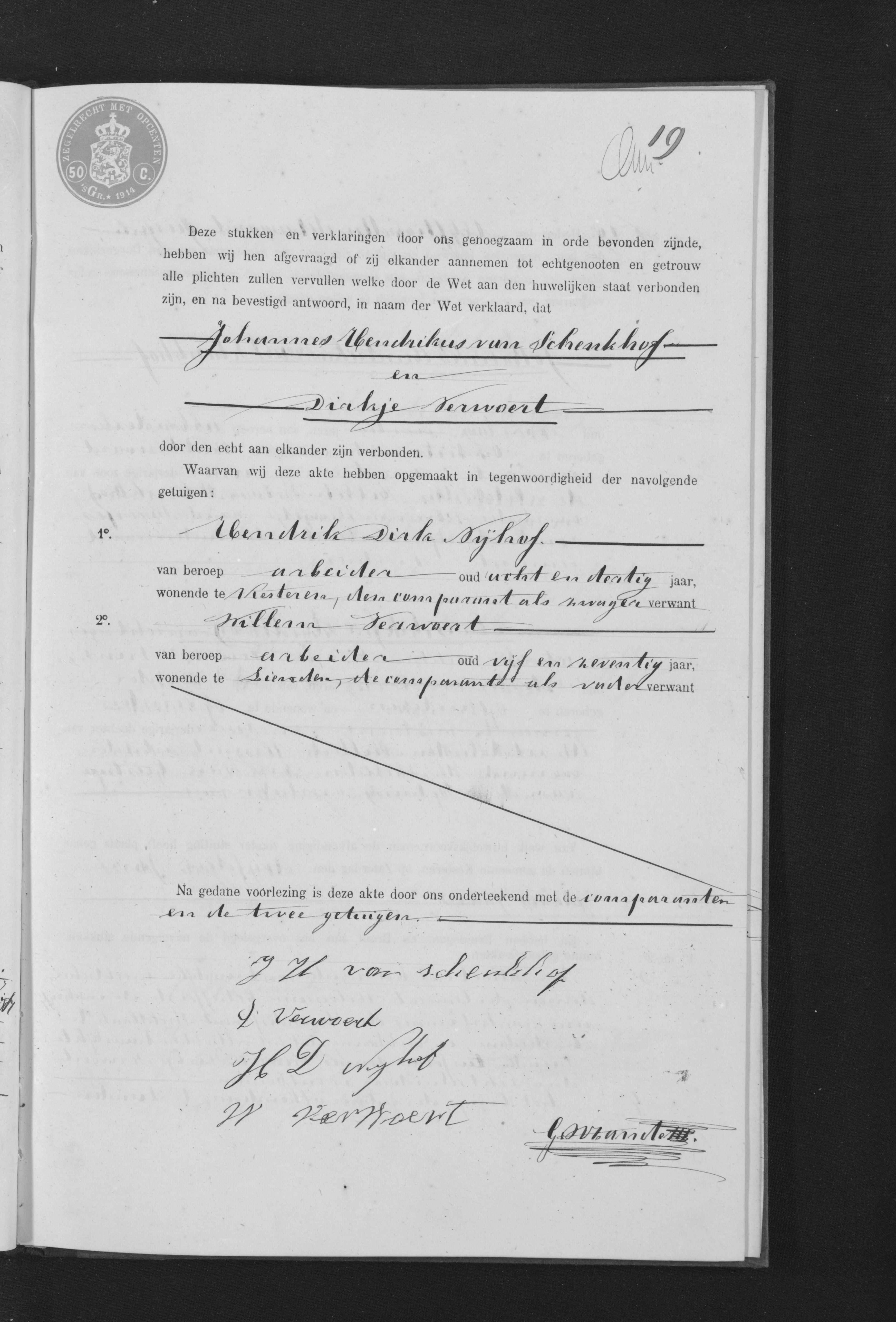 29. “trouwboekje Dirk en Nel,” 3-9-1889, Schermerhorn.