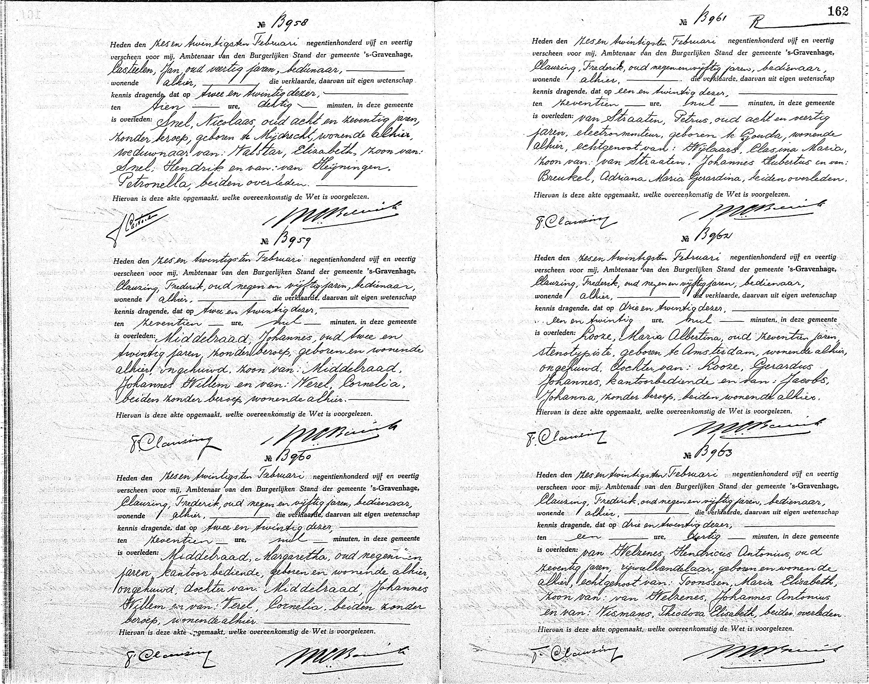 16. “uittreksel BS overlijden Frederika Langboom,” 9-2-1963, ’s-Gravenhage, 335-01, A389, scan, Haags Gemeentearchief.