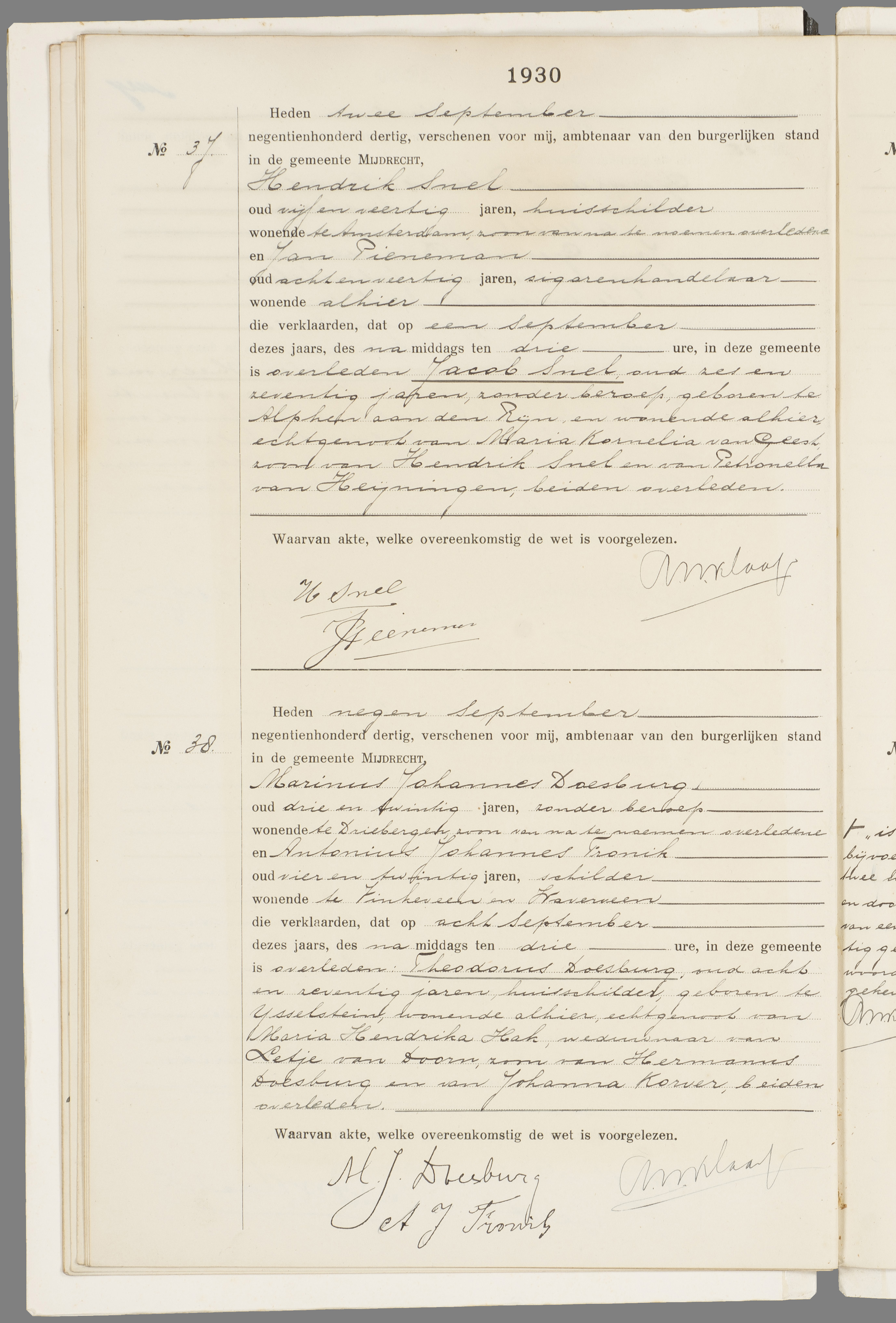 42. “uittreksel BS geboorte Cornelis Snel,” 4-2-1860, Mijdrecht, 649-14, 16, scan, Het Utrechts Archief.