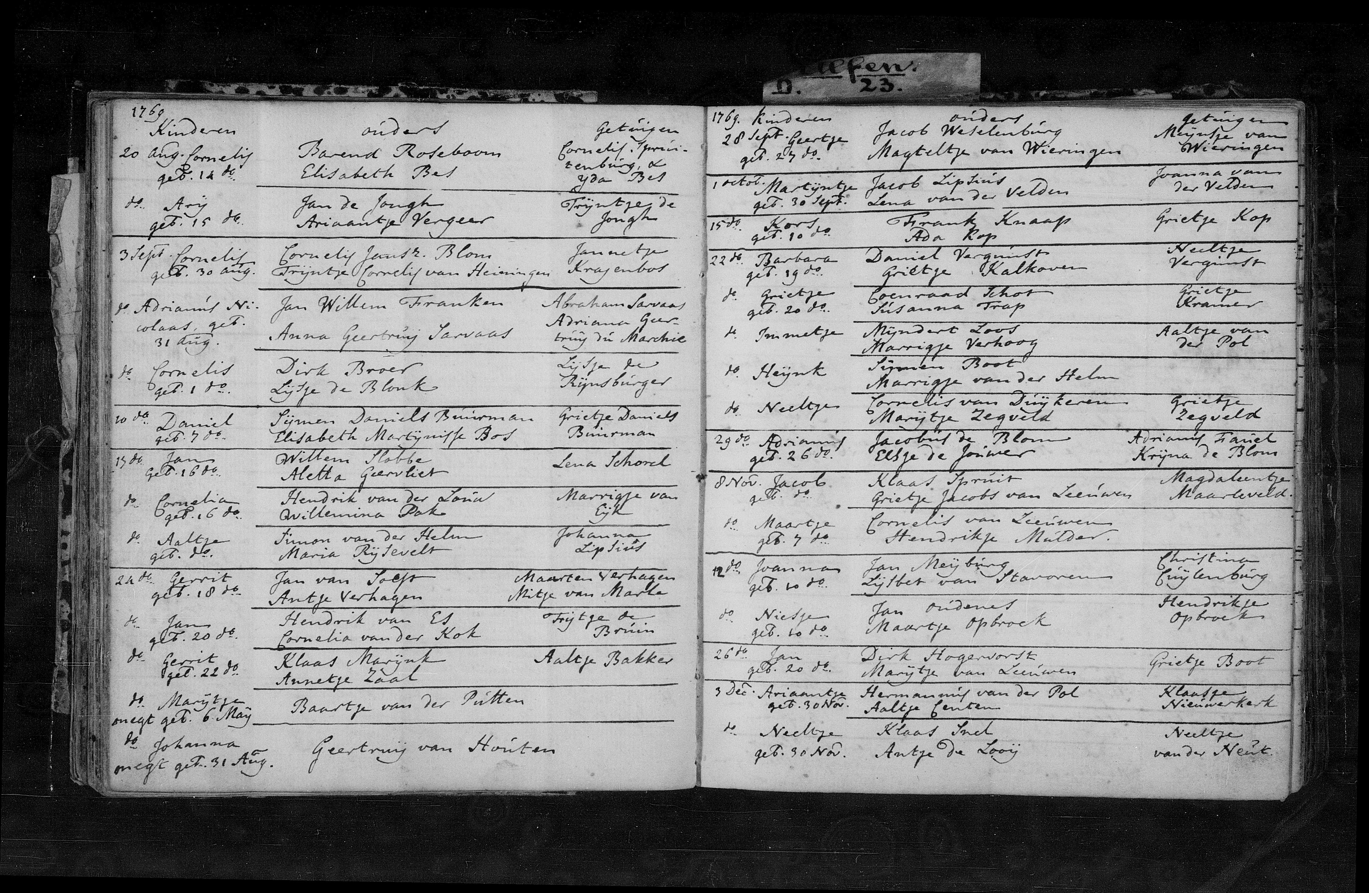 8181. “uittreksel DTB doop Geertrudis Lambo,” 23-12-1762, Oegstgeest, page 448, scan, FamilySearch.org.