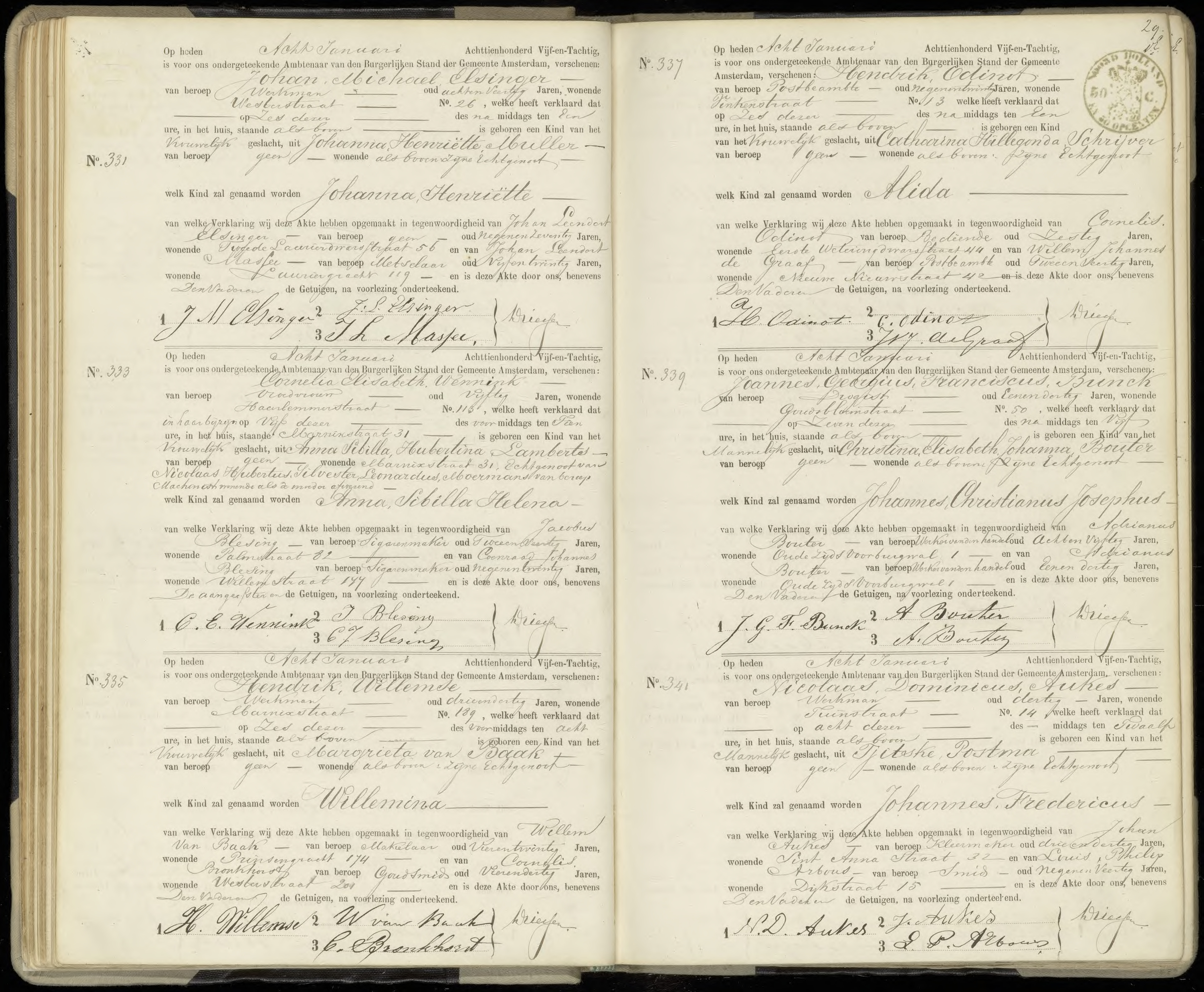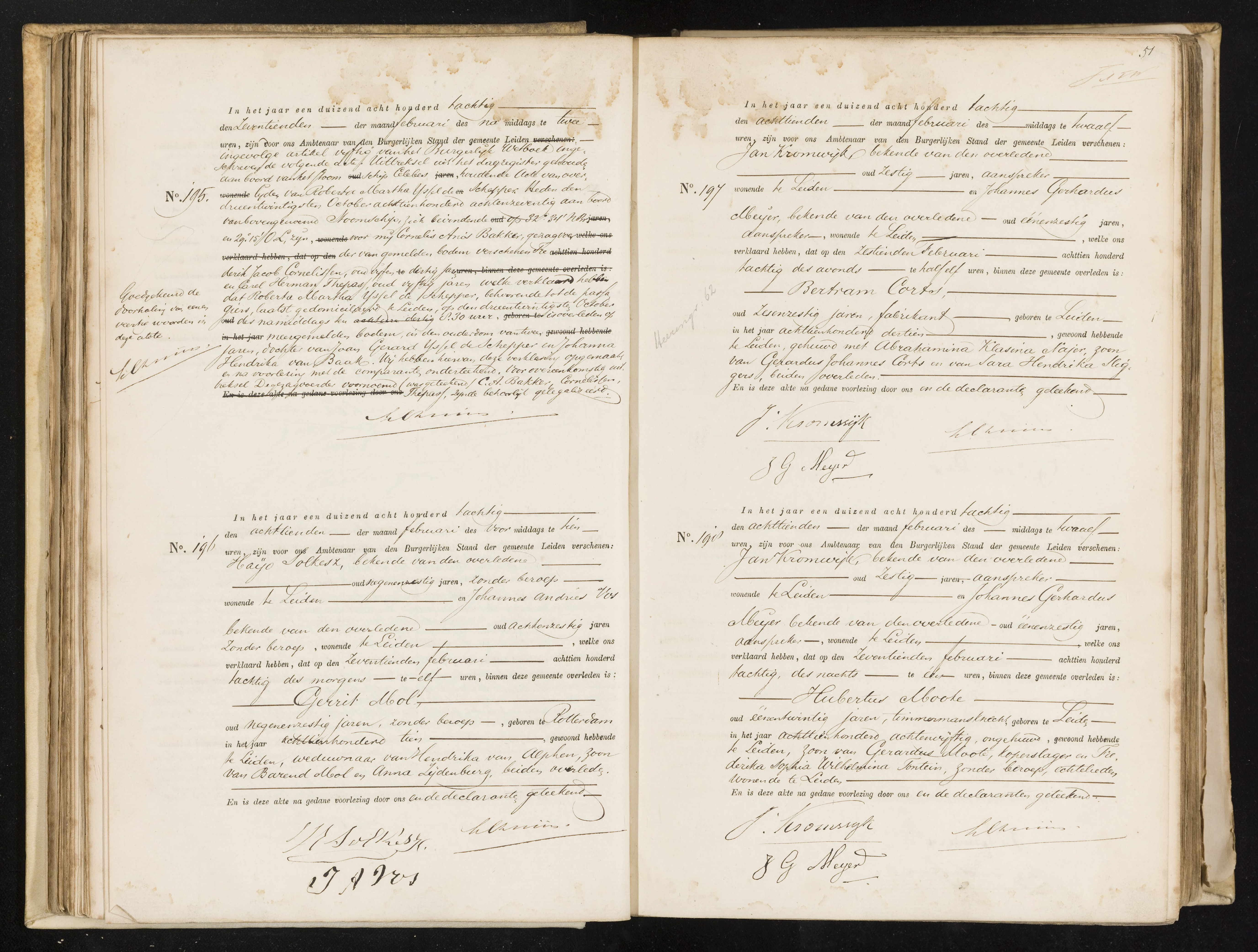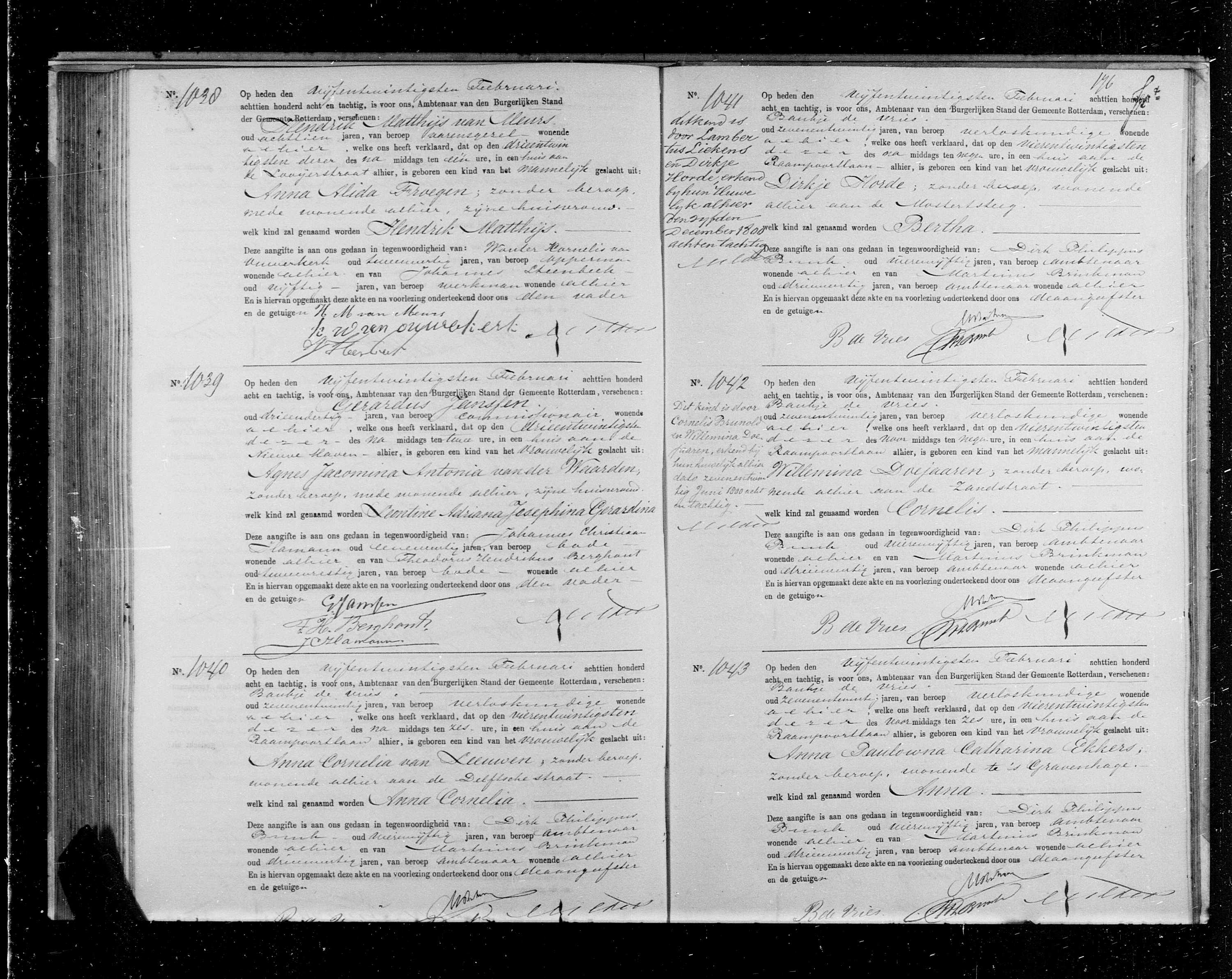 43. “uittreksel BS geboorte Johanna Hendrica Nieuwenburg,” 26-7-1858, Leiden, 756.