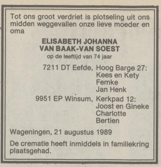 51. “overlijdenskaart Elisabeth Johanna Bogaard,” 17-3-1956, familiearchief van Baak.