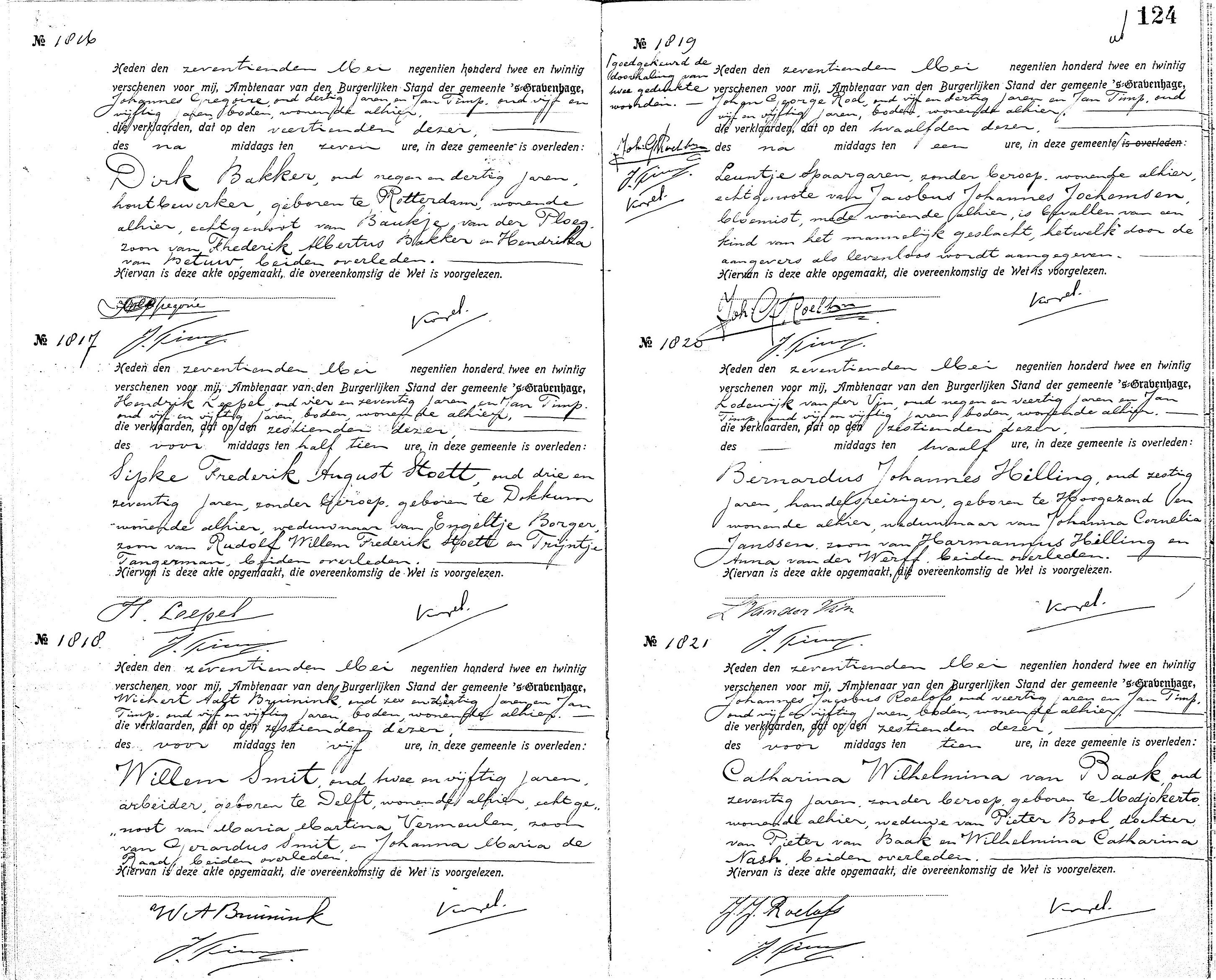 44. “uittreksel BS overlijden Johanna Hendrica van Nieuwenburg,” 1-6-1926, “s-Gravenhage, 1703, scan, Haags Gemeentearchief.