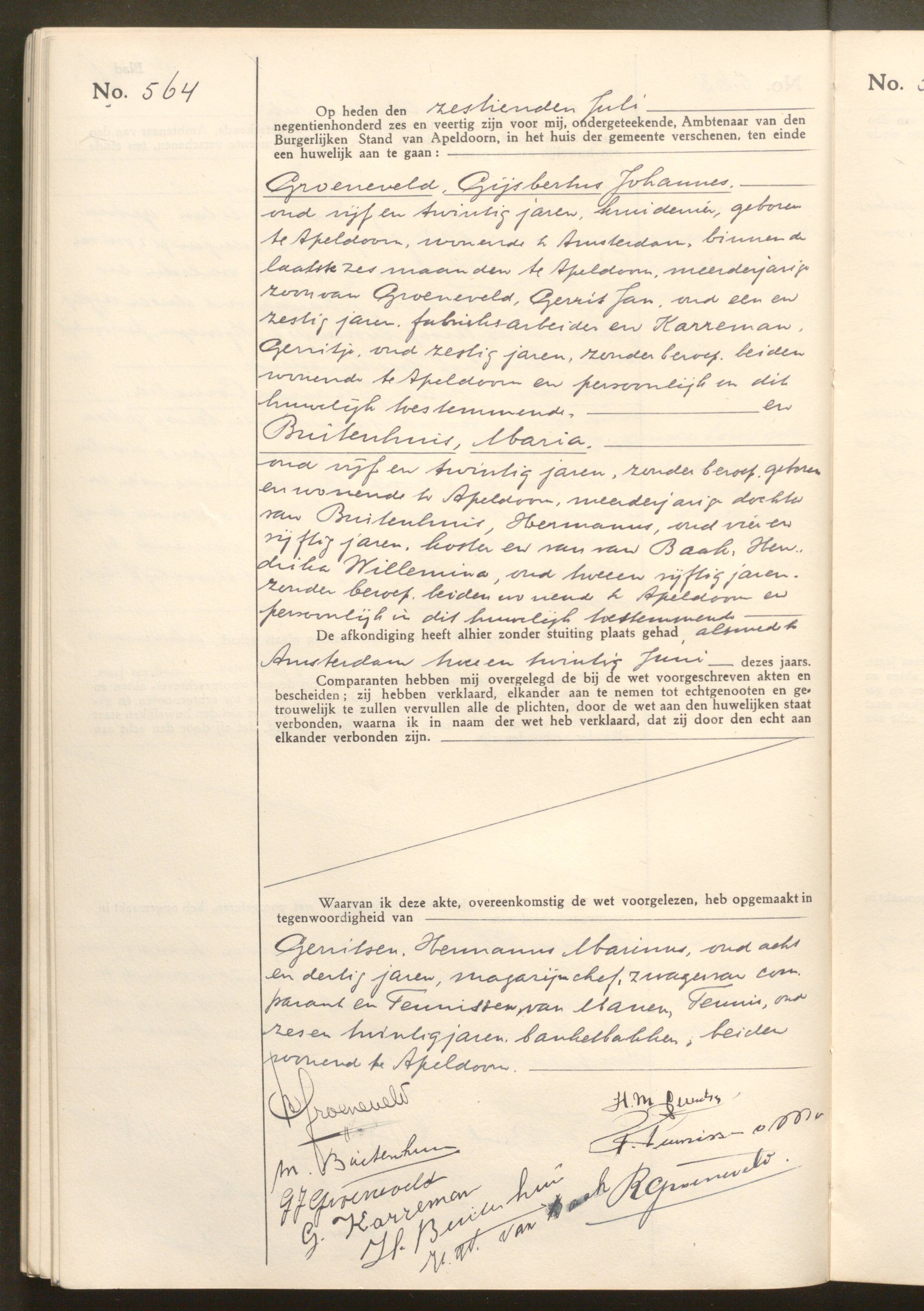 19. “trouwboekje Marius en Frederika,” 3-5-1916, Lienden, 8.