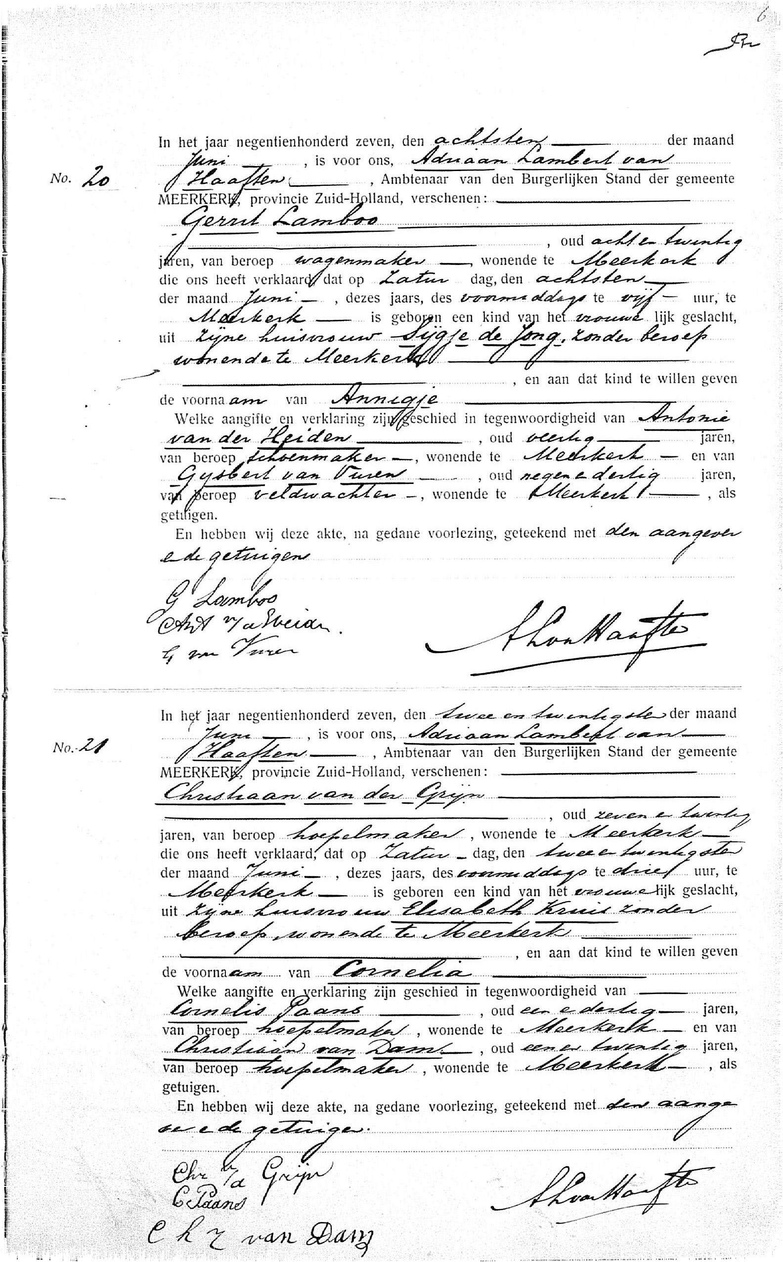 8143. “uittreksel BS geboorte Cornelia Lambo,” 30-8-1869, Ruwiel, 673-13, 13, scan, Utrechts Archief.