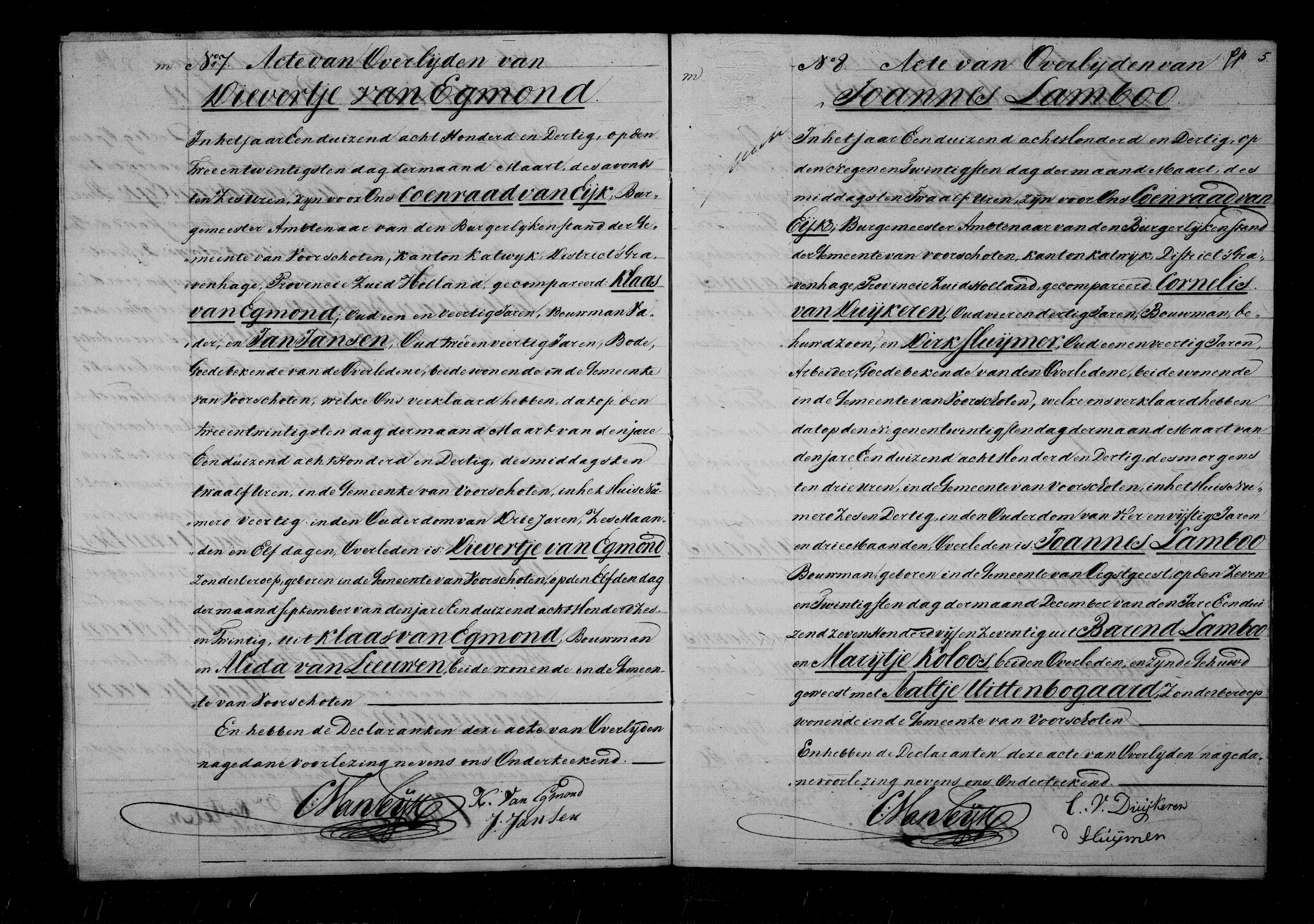 8173. “uittreksel BS overlijden Joannes Lamboo,” 29-3-1830, Voorschoten, 22, 8, scan, Gemeentearchief Wassenaar.