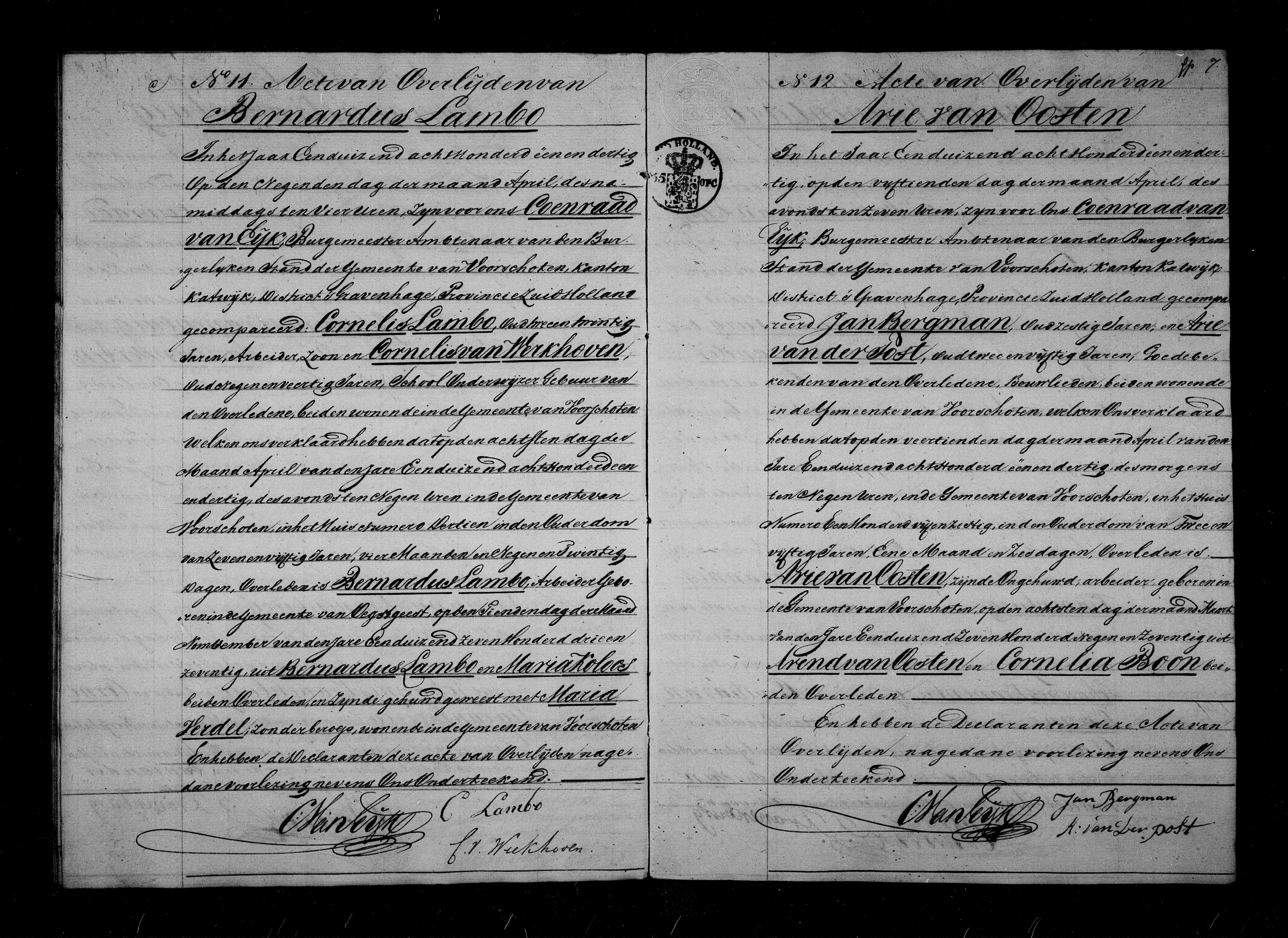 8176. “uittreksel BS overlijden Bernardus Lamboo,” 9-4-1831, Voorschoten, 22, 11, scan, Gemeentearchief Wassenaar.